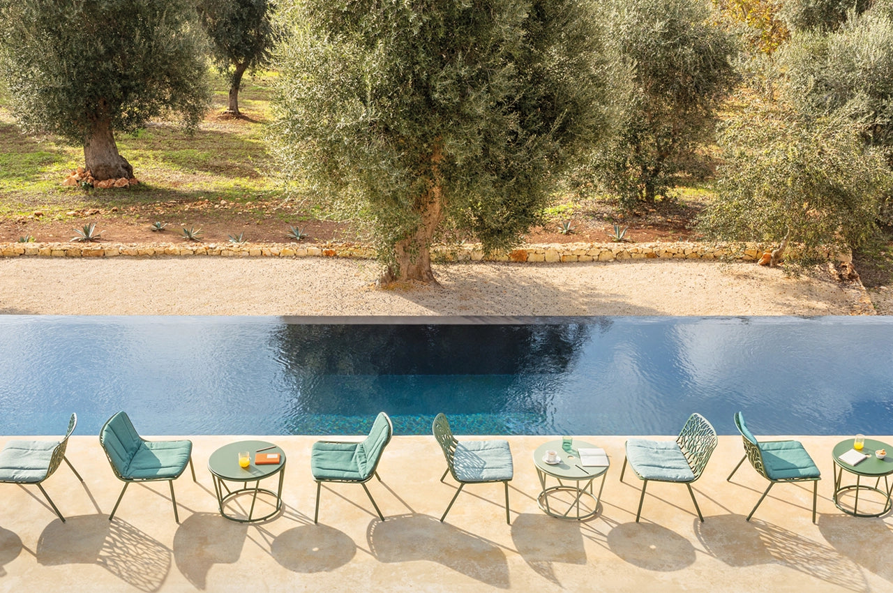This lightweight, malleable, versatile, weatherproof, maintenance-free and endlessly recyclable material is Fast’s trademark. The brand plays with shapes to give the material movement, and with colours to give it warmth, before combining it with other noble materials, such as wood, stone and fabric, to bring out its softer side. A true work of craftsmanship, as seen in the Niwa, Rion, Forest and Zebra collections.