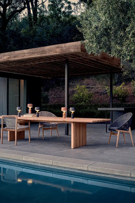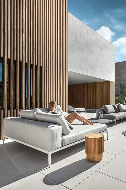 For more than 700 years, its beauty and weather resistance have made teak the wood of choice in outdoor furniture design. By choosing only trees that are naturally grown and at least 35 years old, Gloster ensures the higher density and higher natural oil content that are synonymous with exceptional quality.