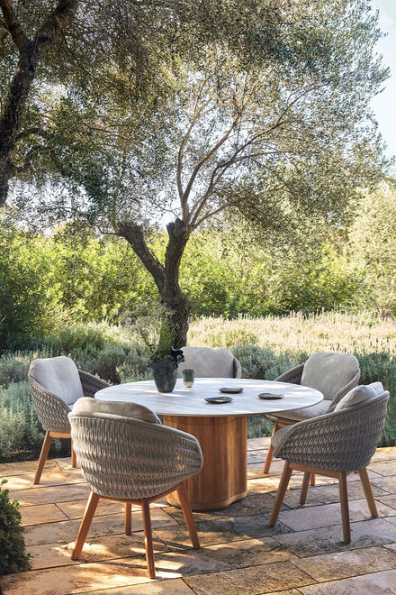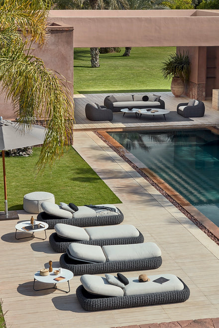 This high-end manufacturer mixes cutting-edge technology with traditional know-how to brilliant effect. Each piece is hand-worked to showcase the unique characteristics of the materials used, whether it be teak, rope, ceramic or imitation leather. Whether playing with weaves, tone-on-tone stitching or the contrast between matte and shiny surfaces, this tireless attention to detail is the key to Manutti’s trademark elegance.