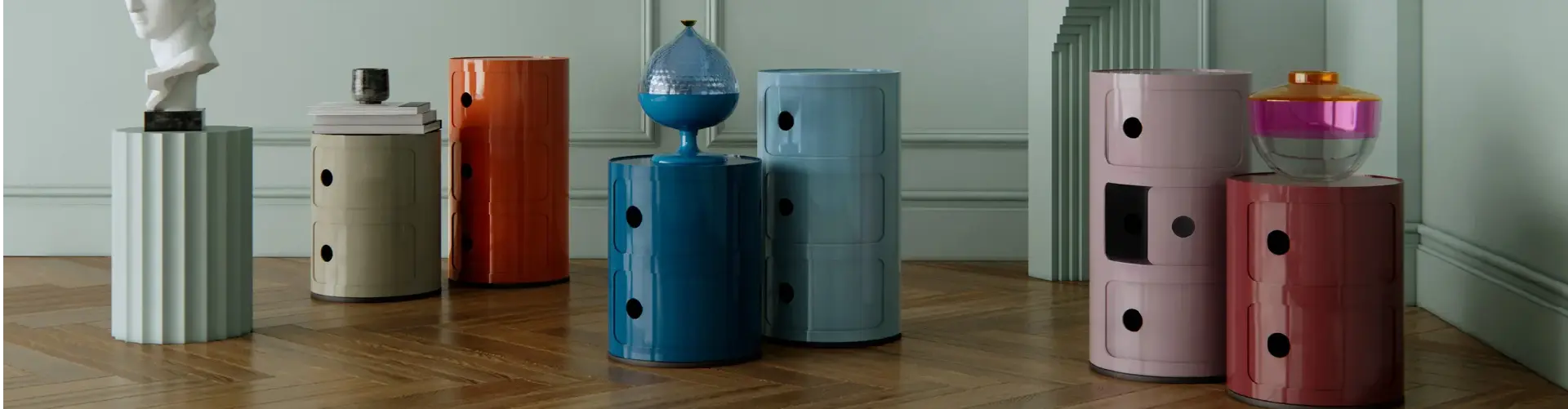 An icon of Italian design, Kartell is known for its bold and innovative use of materials and collaborate with renowned designers to create cult favourites, including the famous lace-like Kabuki lamp, the transparent Louis Ghost chair and the distinctively Componibili modular table.