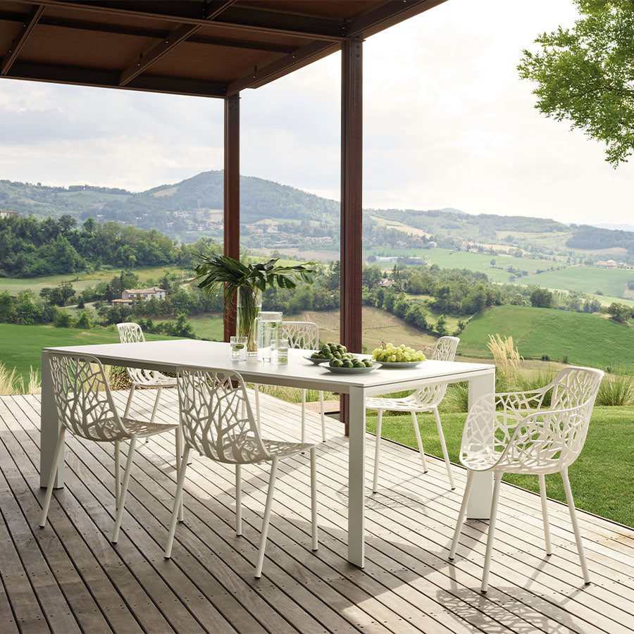 Moderne et graphique, élégante et poétique, Fast a forgé sa réputation de créateur de mobilier de jardin haut de gamme sur un savant alliage, celui de la nature et de l’aluminium haute couture. Installée dans la Valle Sabbia en Lombardie, une région d’Italie connue pour sa ferronnerie d’art, l’entreprise perpétue ce savoir-faire avec talent et audace.