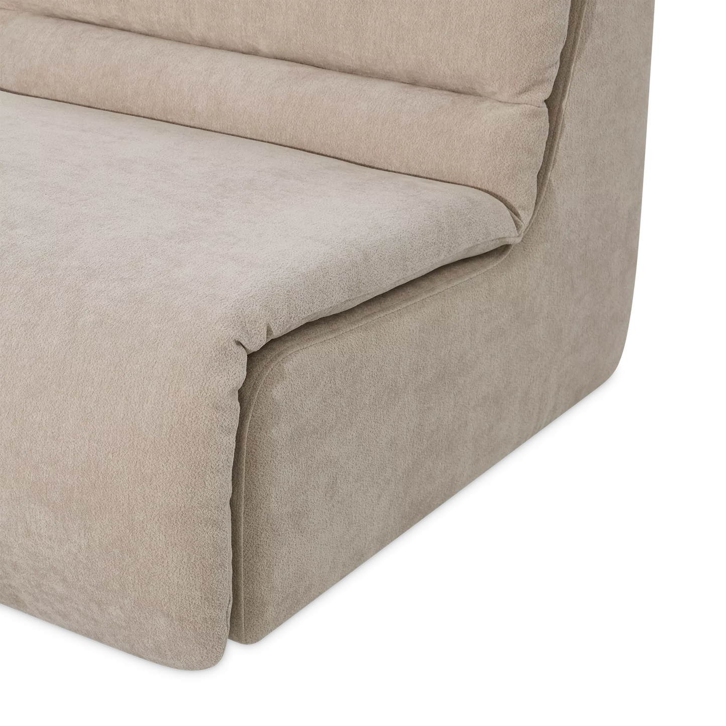 Avec sa silhouette tout en courbes entièrement rembourrée et son piètement discret, le fauteuil modulable Agadir offre confort et style. Son tissu beige et son design moderne apportent chaleur et originalité à votre intérieur. Associez-le aux autres modules de la collection pour créer un canapé personnalisé.