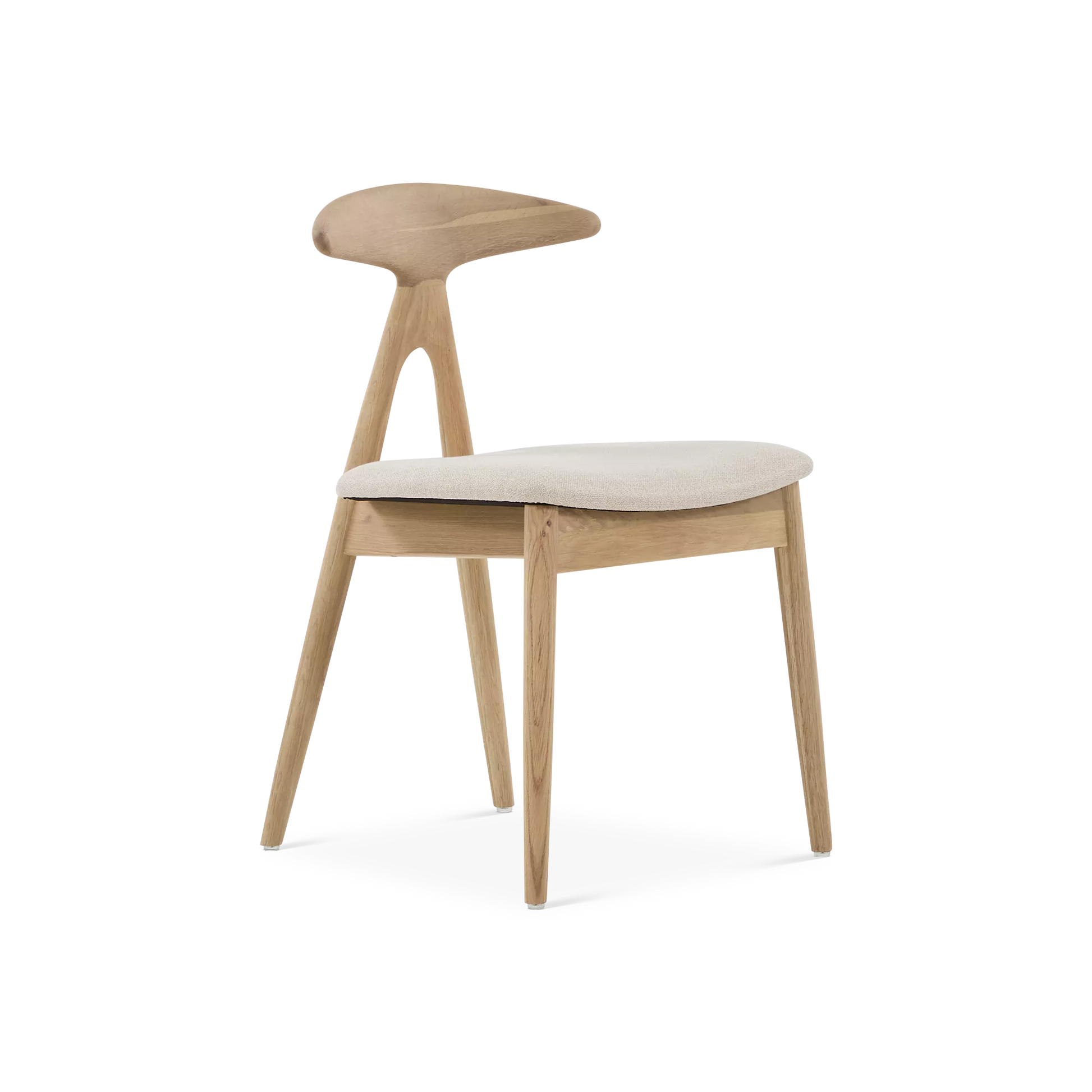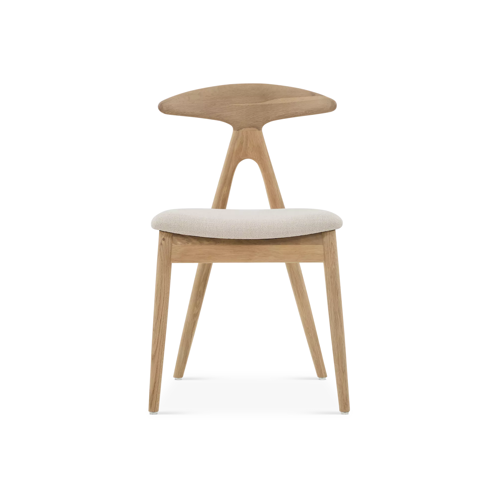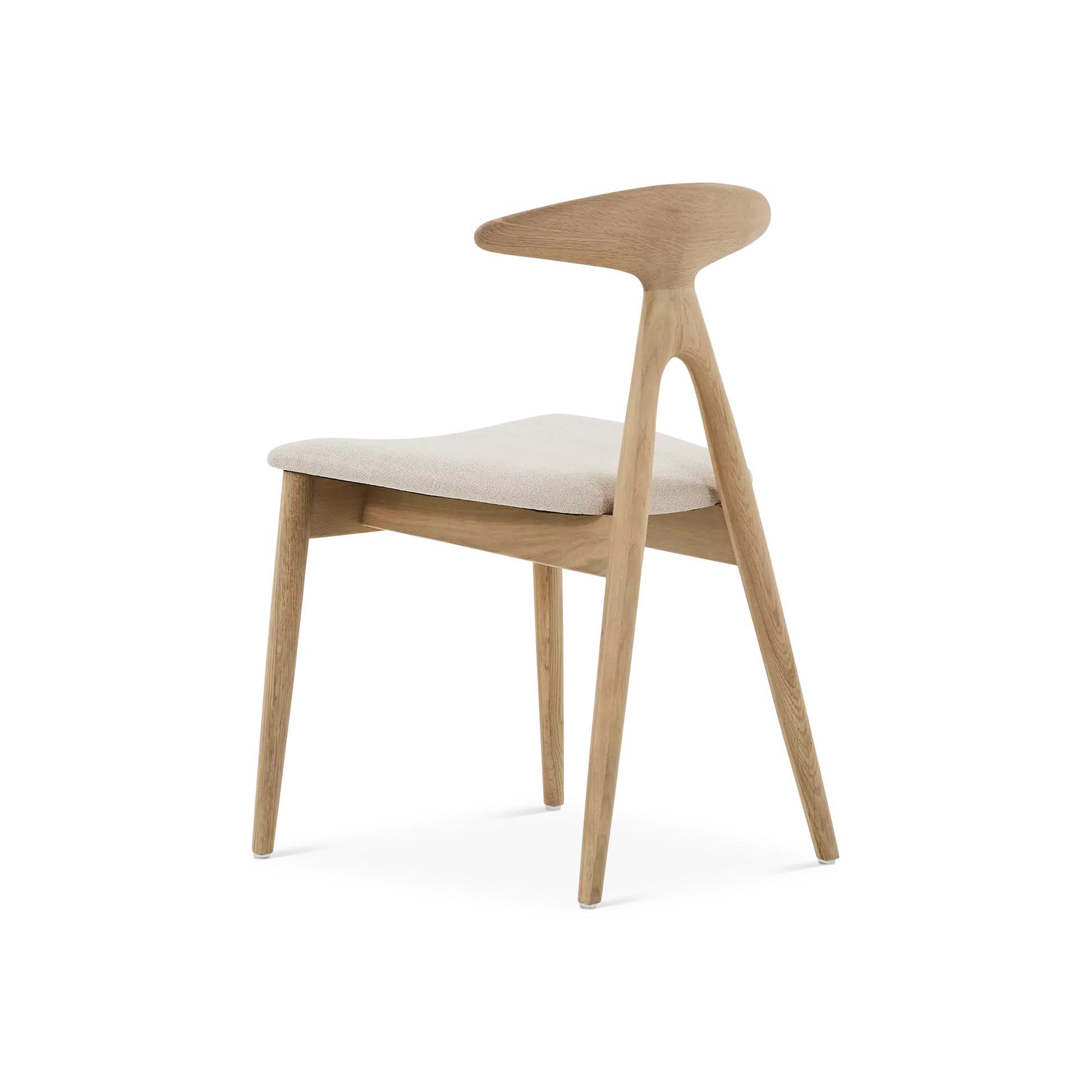 Une silhouette atypique, un design venu d’ailleurs. Dossier en chêne naturel, assise beige en tissu et lignes organiques : la chaise Alien sort du rang tout en élégance. Parfaite pour donner du caractère à une salle à manger contemporaine.