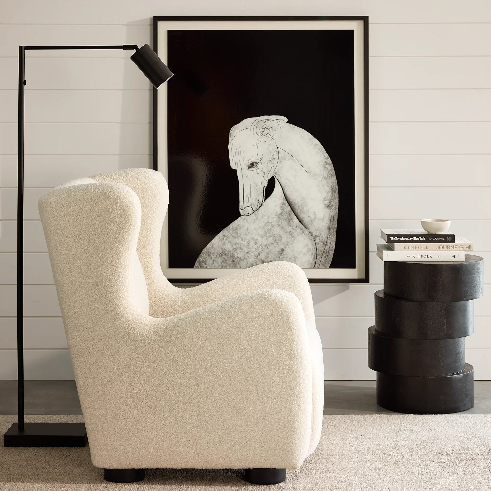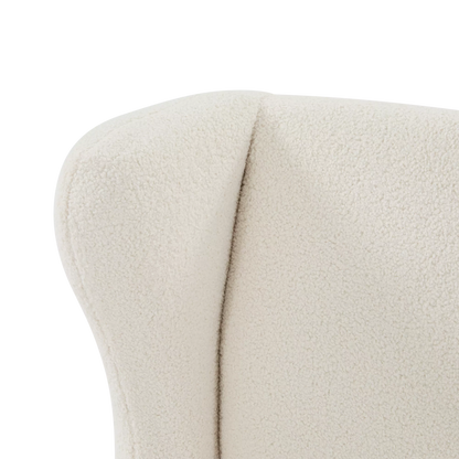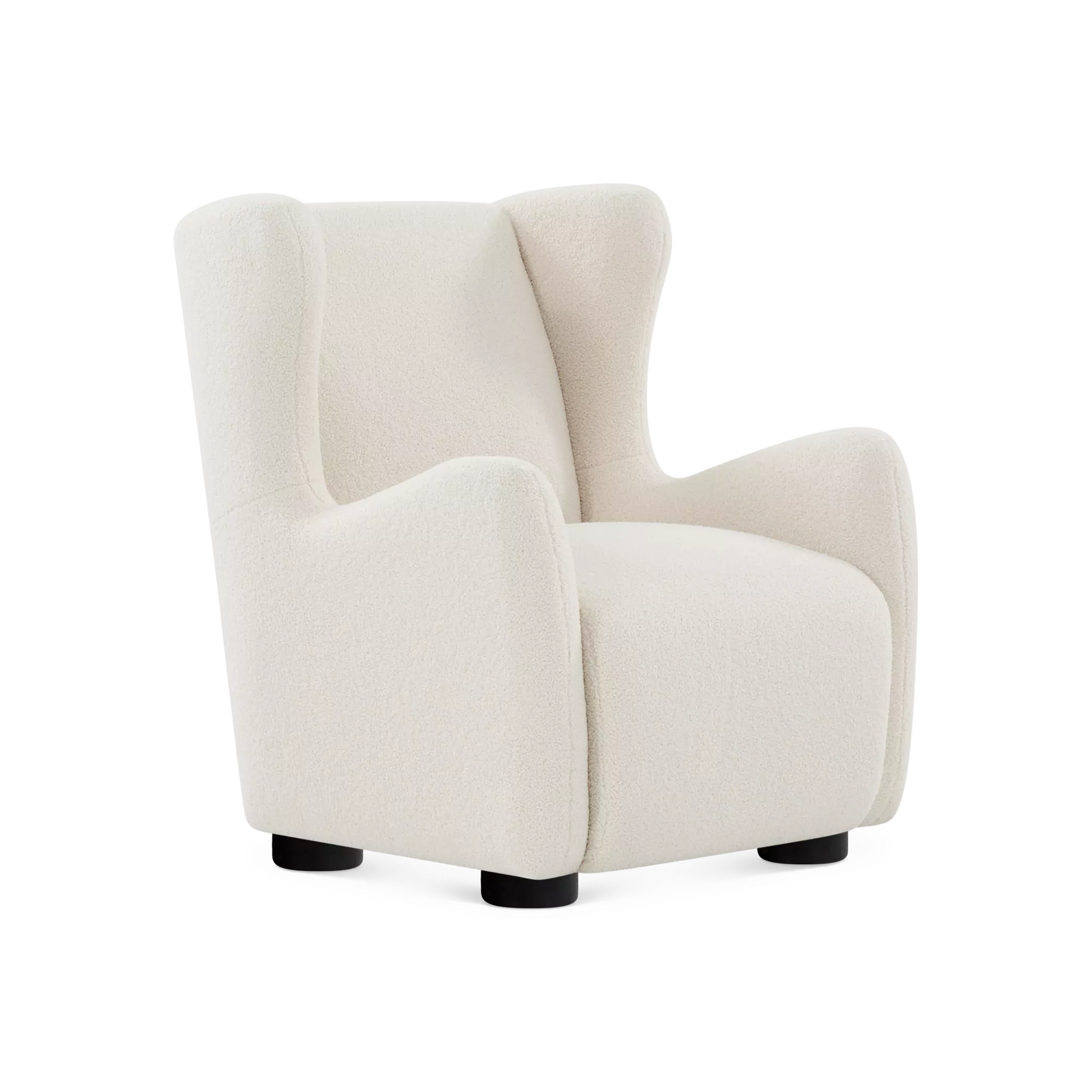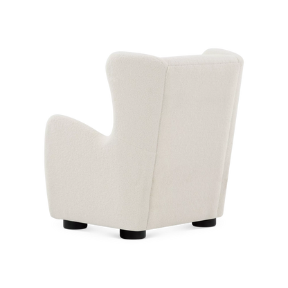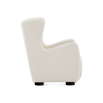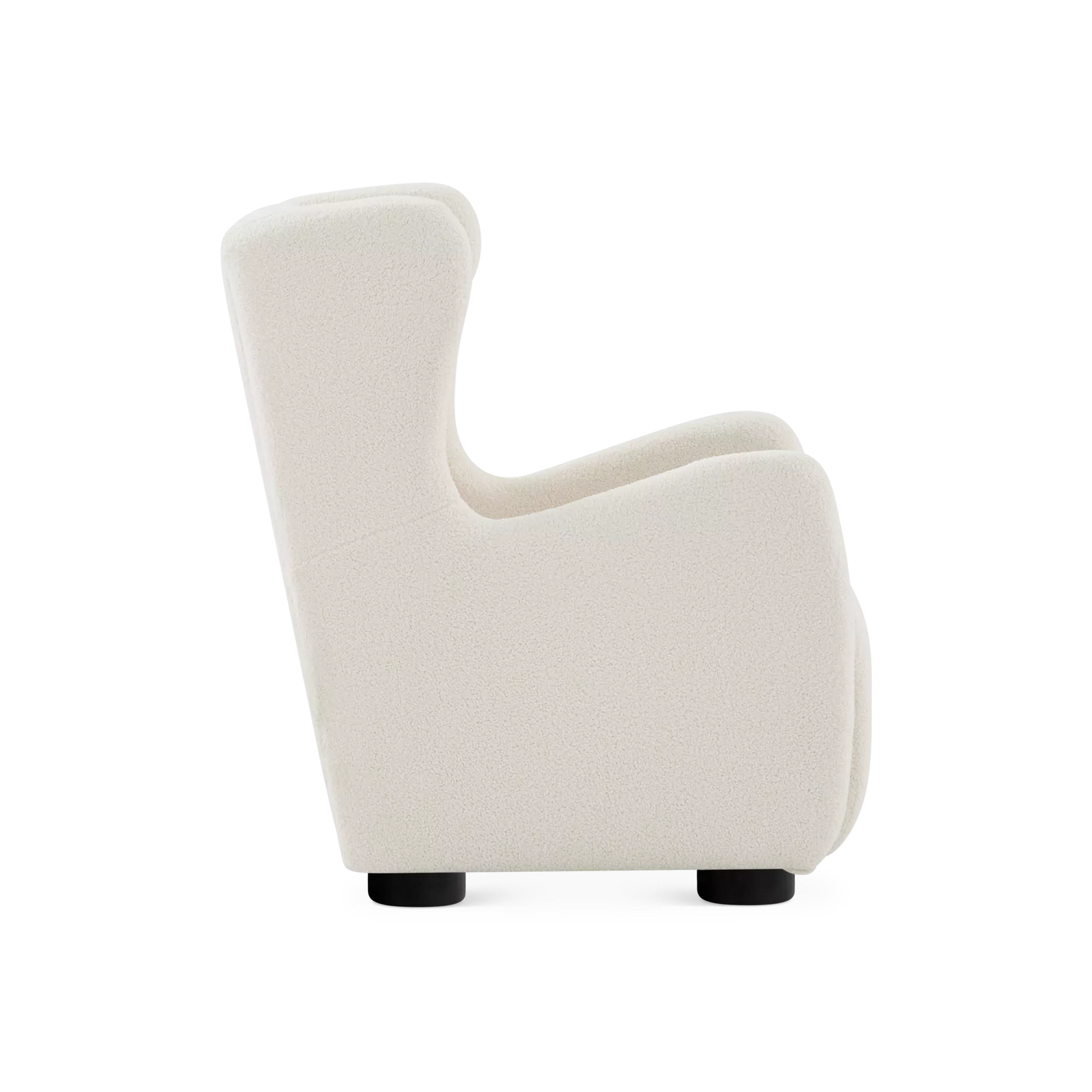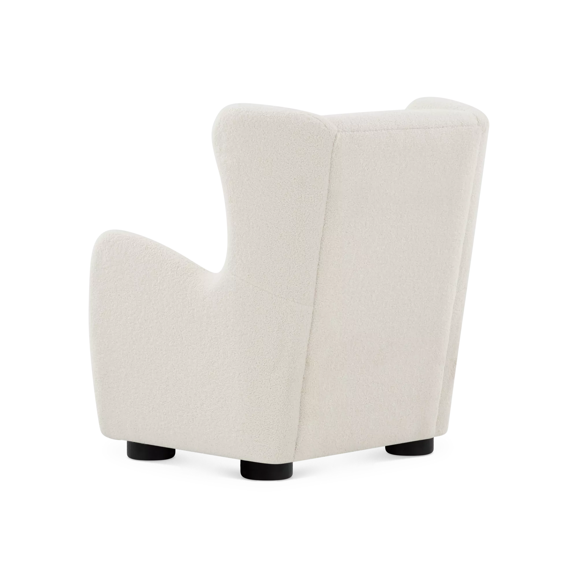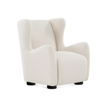 Le fauteuil Alpine revisite la bergère classique avec ses oreilles enveloppantes et son tissu bouclé blanc. Entièrement rembourré, il offre un confort soutenu, idéal pour la lecture ou les moments de détente. Sa douceur visuelle est idéale pour créer un coin apaisant dans une chambre ou un salon.