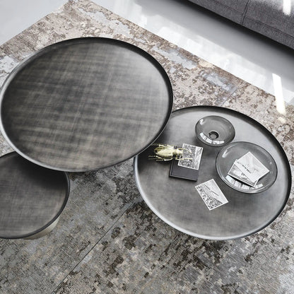 Conçue par Giorgio Cattelan, la table basse Amerigo se compose d’une large base conique et d'un plateau en acier embelli par une finition brossée à la main. Disponible sur commande en plusieurs grandeurs, ces tables sont à leur meilleur disposées côte à côte en un dénivelé de hauteur.