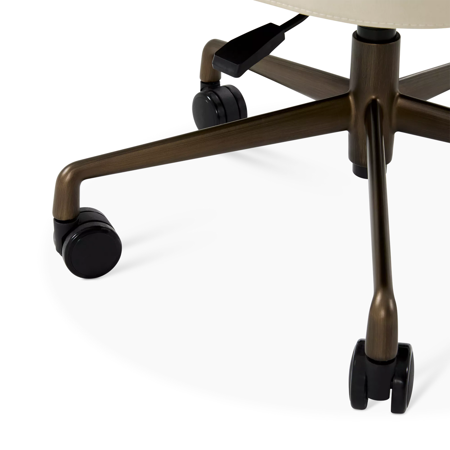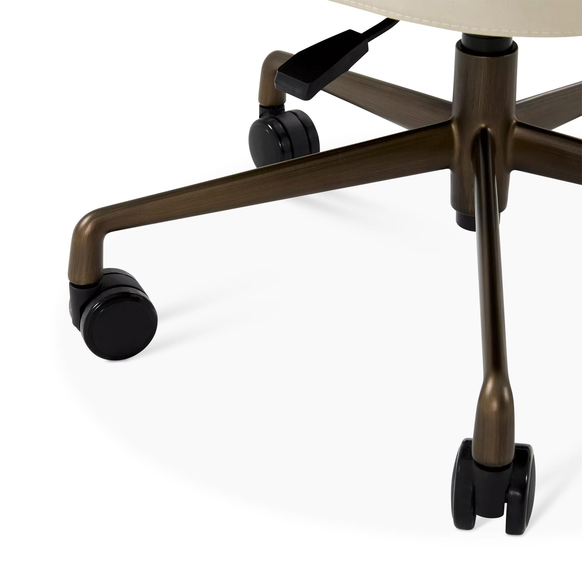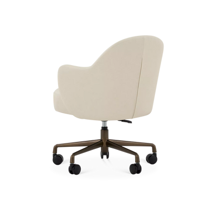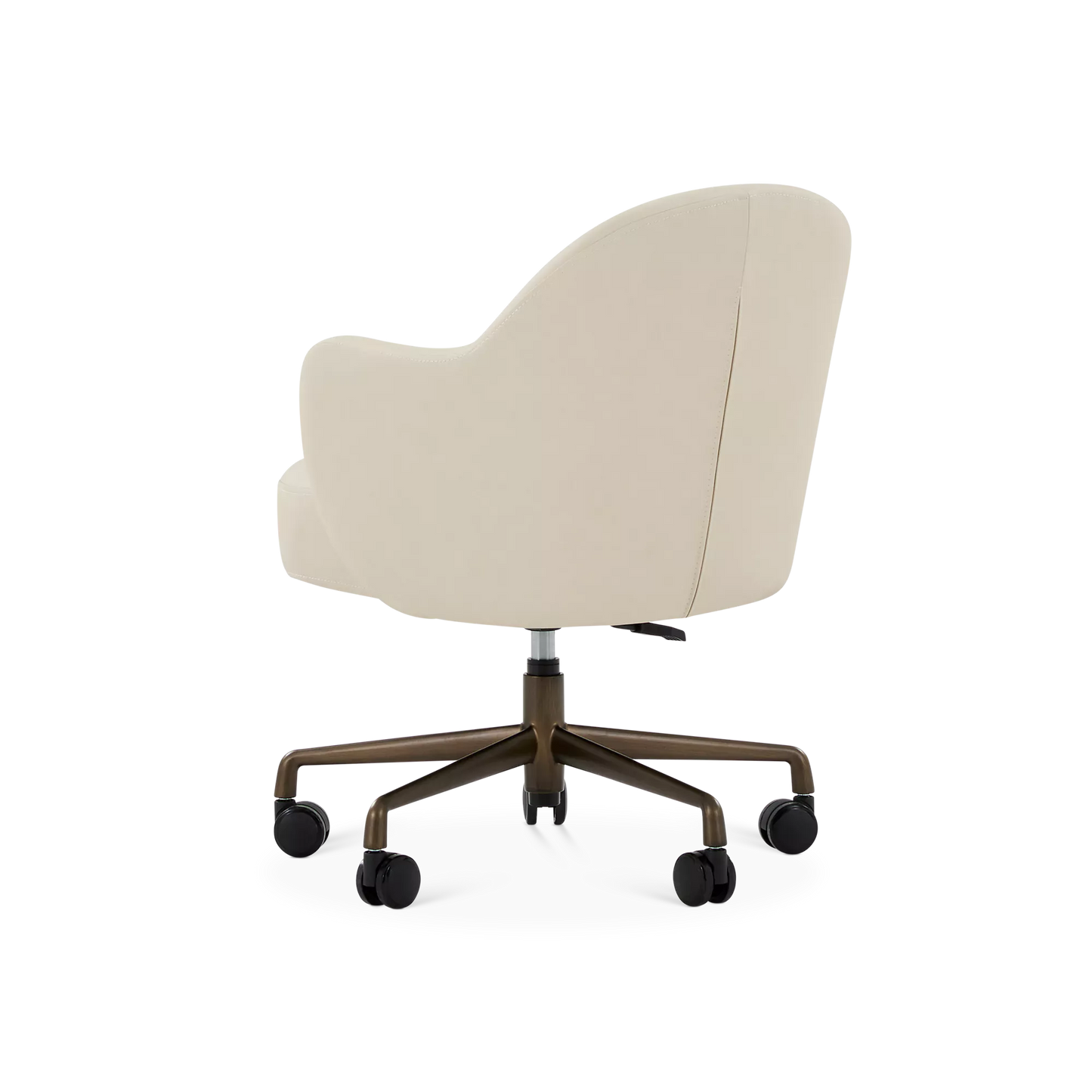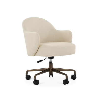 Dessinée par le designer danois Morten Georgsen, la chaise pivotante Bae allie douceur des formes et ergonomie bien pensée. Son assise généreuse avec ressorts intégrés, ses accoudoirs enveloppants et sa base à roulettes la rendent aussi confortable que raffinée, pensée pour s’intégrer dans les intérieurs contemporains.