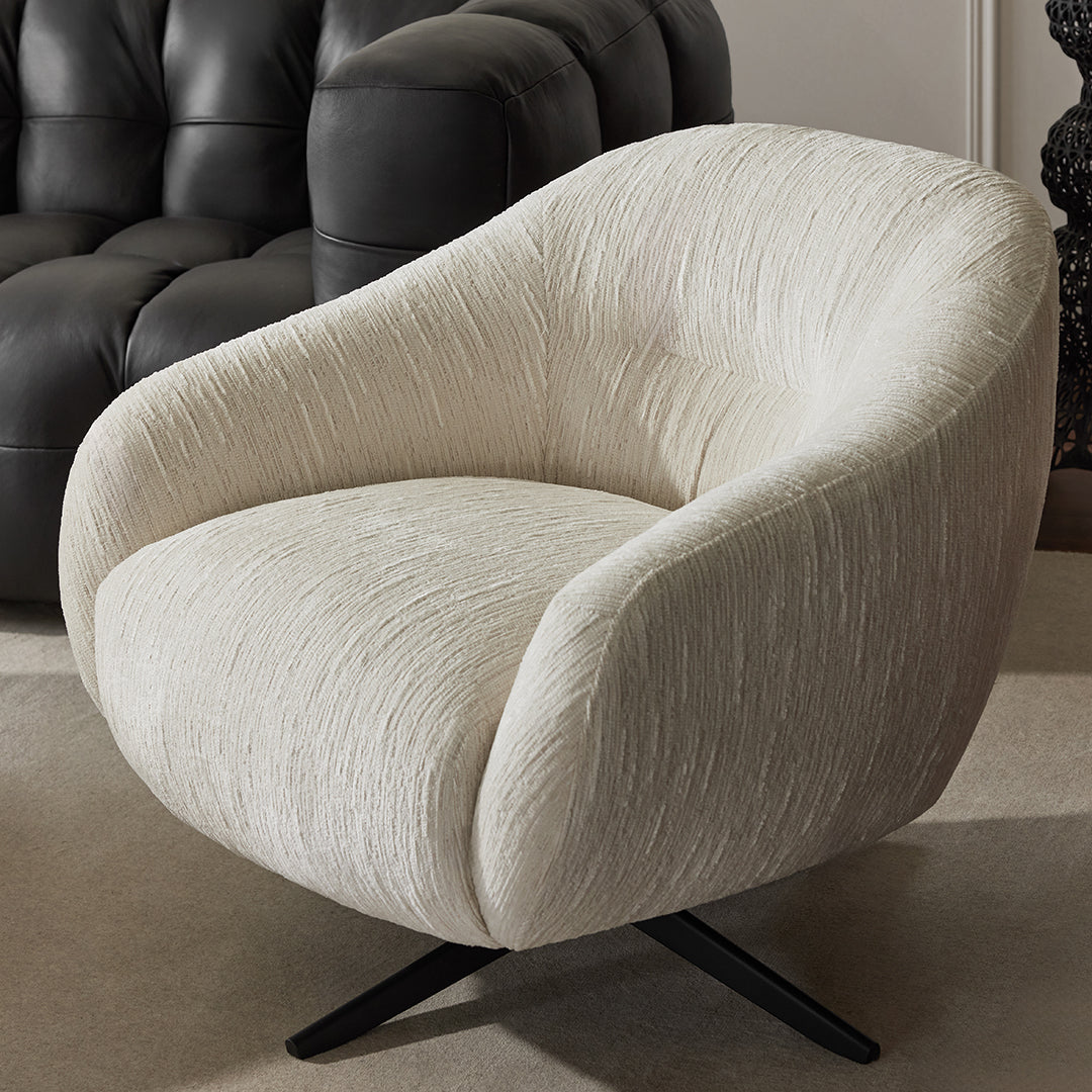 Le fauteuil Baki, avec son revêtement en velours côtelé, offre confort, réconfort et douceur. Les accoudoirs et le dossier se confondent pour offrir un maintien tendre, tandis que son assise vient parfaire cet enrobage de douceur. Sa forme rassurante, bien que d’allure imposante, s'adapte à de nombreux espaces et décors grâce à son pivot et à son choix de coloris. Cependant, c’est dans les espaces ouverts qu’il libère tout son potentiel.