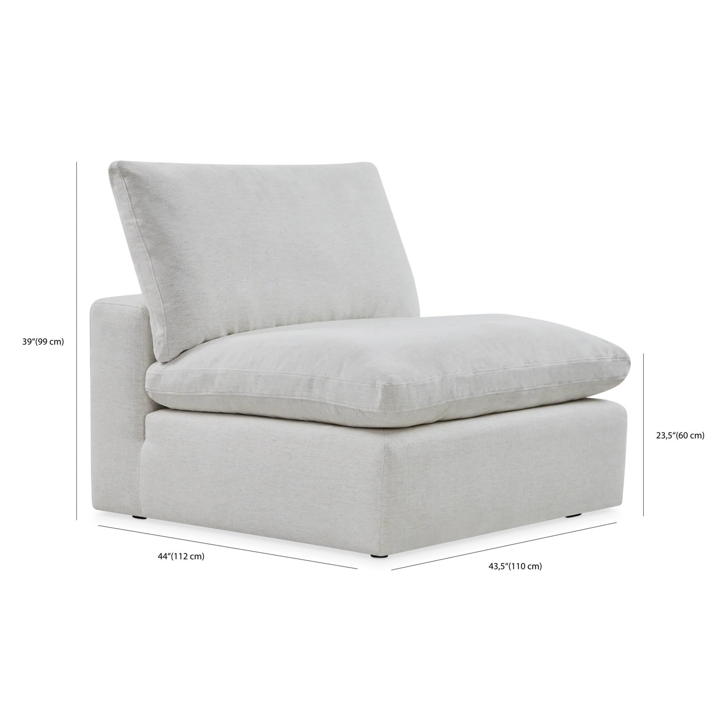 Le fauteuil sans accoudoirs Berlin est convivial et chaleureux. Grâce à sa structure modulable et son assise généreusement rembourrée de plumes, il constitue une option intéressante pour un espace familial où le confort est une priorité.