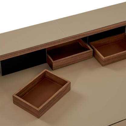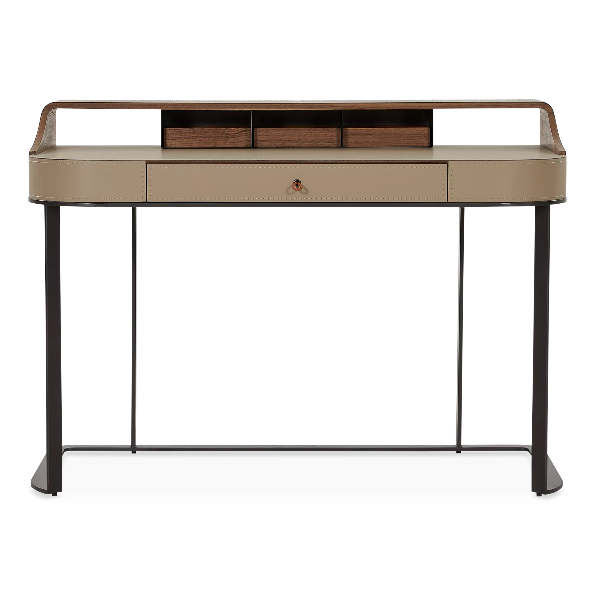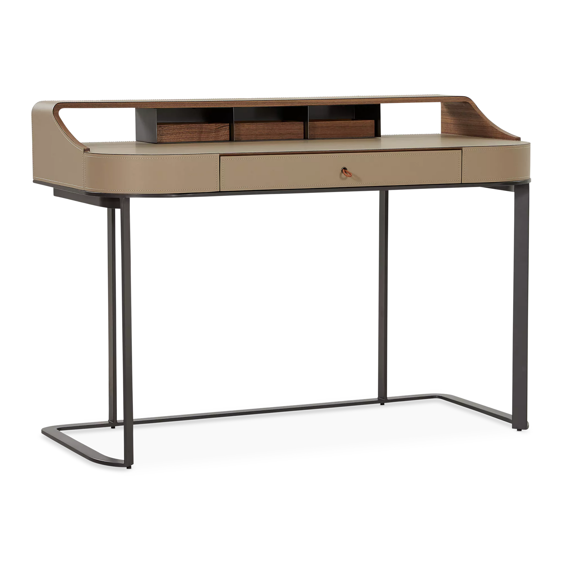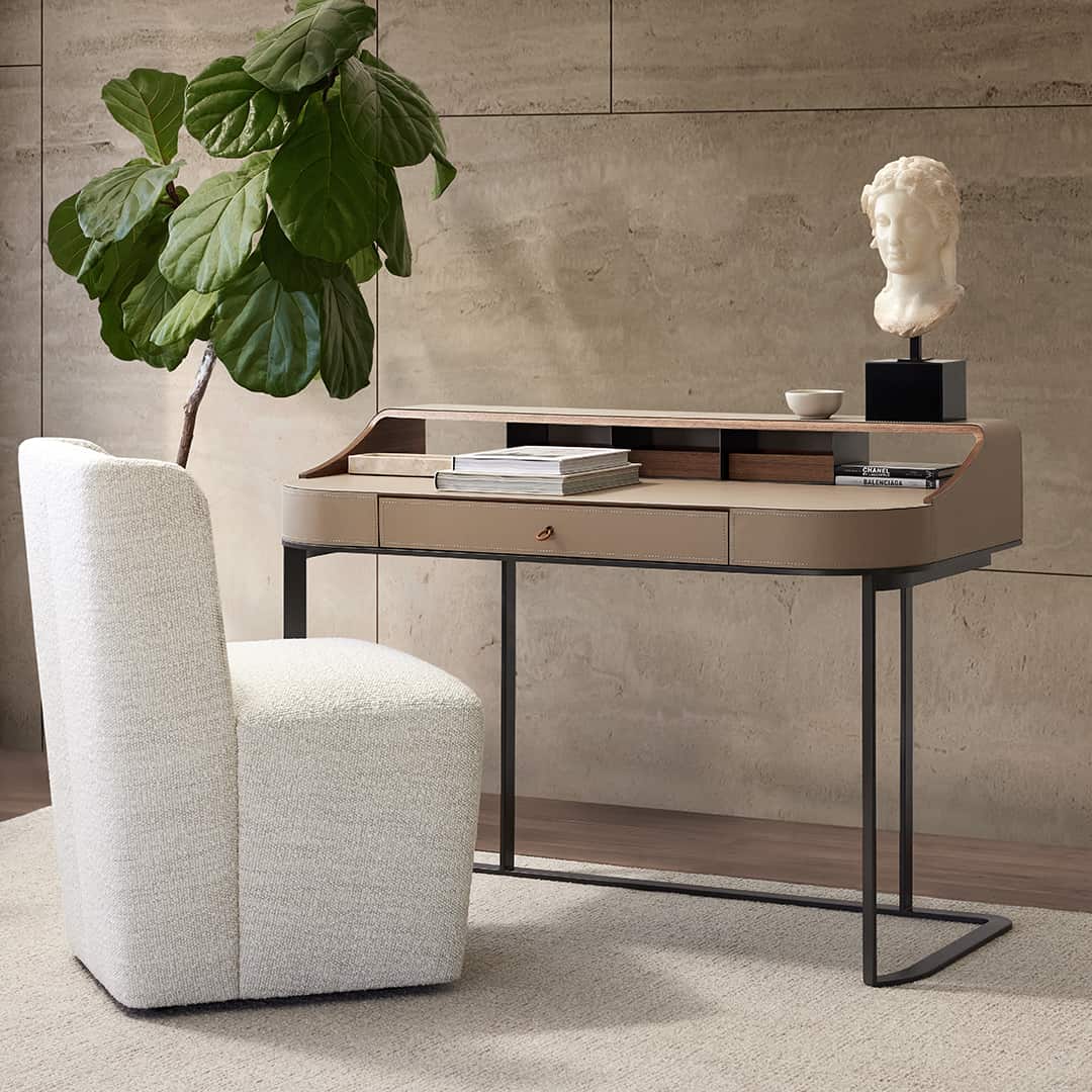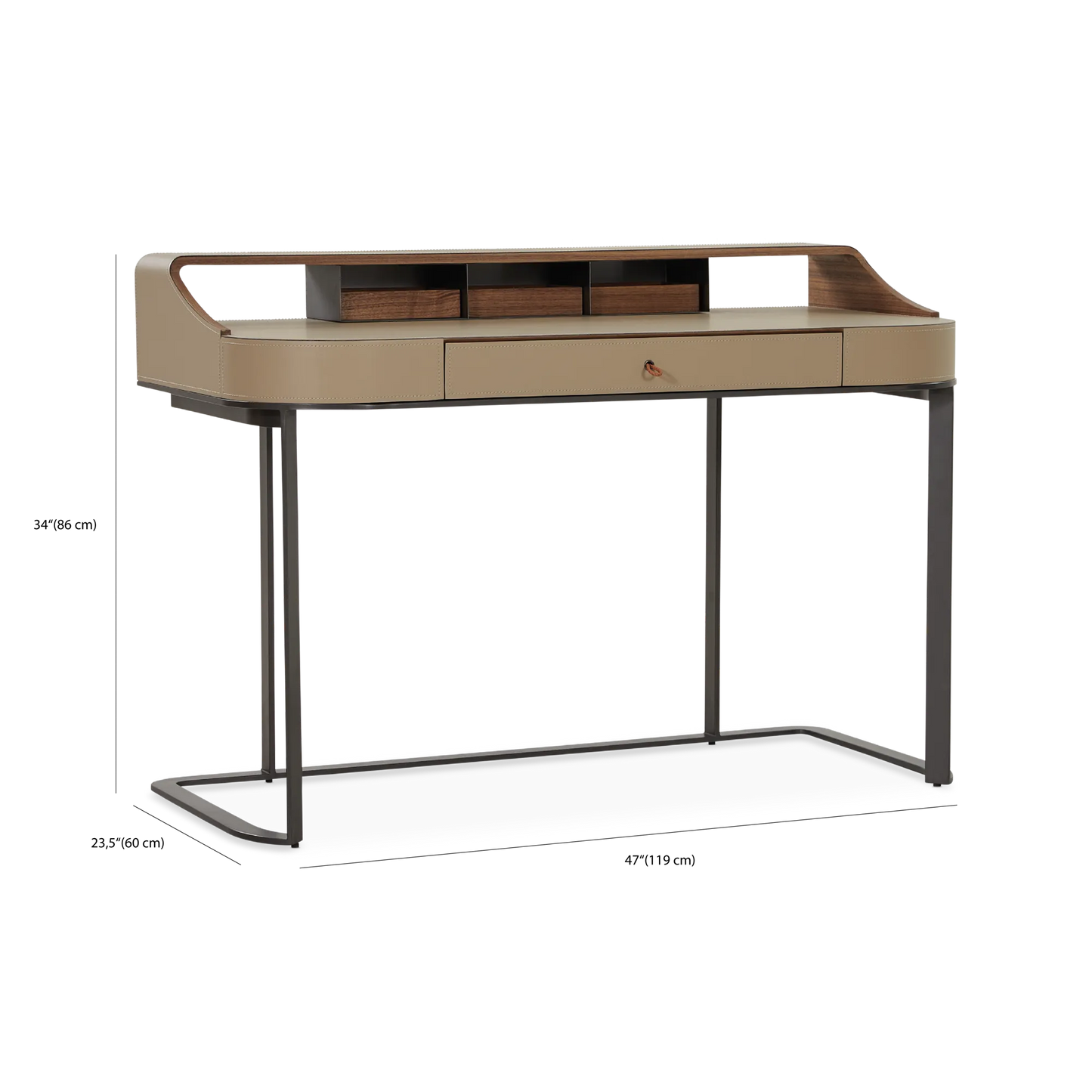 Le bureau Boaz s'impose par son équilibre judicieux qui allie fonctionnalité et esthétique. Fabriqué à partir d'un mélange surprenant de cuir, de métal et de bois, il invite à la créativité tout en offrant une multitude de compartiments de rangement pour les stylos, les notes adhésives et d'autres fournitures. Il s'intégrera avec praticité et élégance dans la chambre à coucher, le salon ou dans un bureau à domicile.