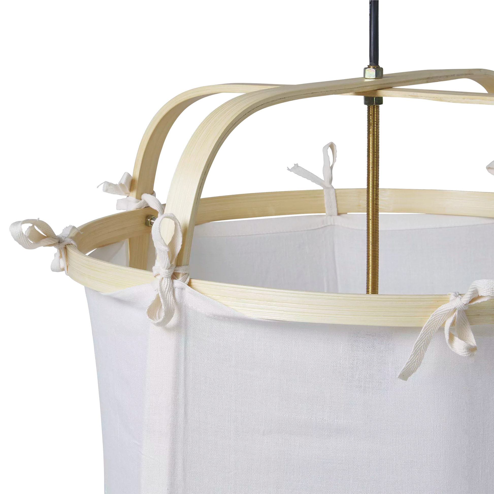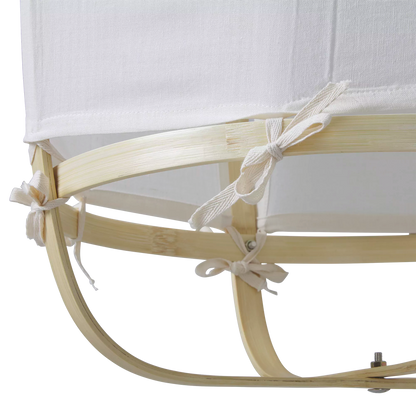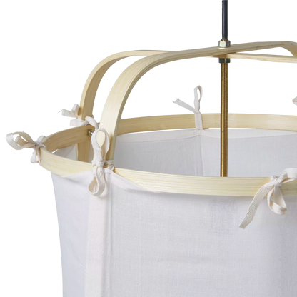 Sa silhouette style pagode donnera un air d’ailleurs à votre déco tout en y diffusant une lumière douce, très appréciée lors des longues soirées d’été. Entièrement réalisée à la main, cet abat-jour combine structure en bambou et tissu orné de jolis petits nœuds.