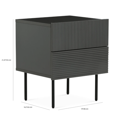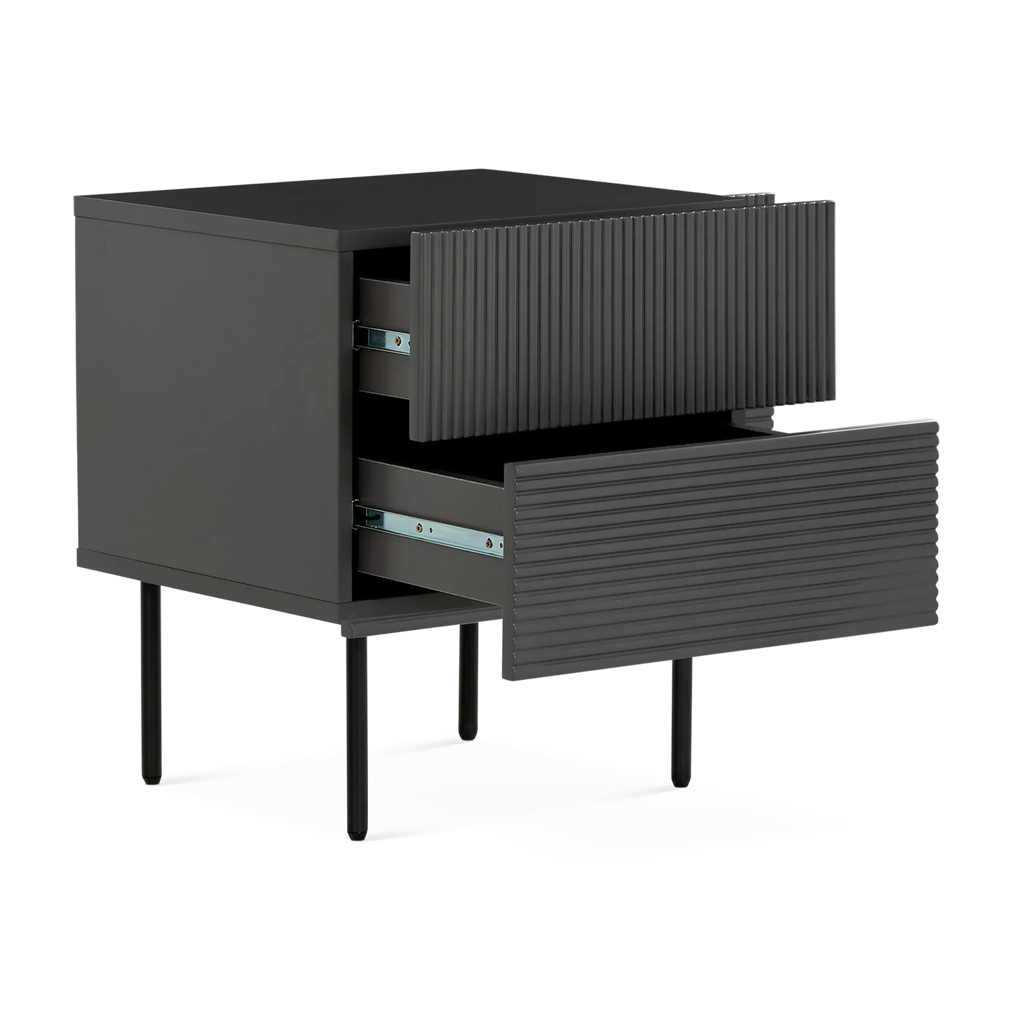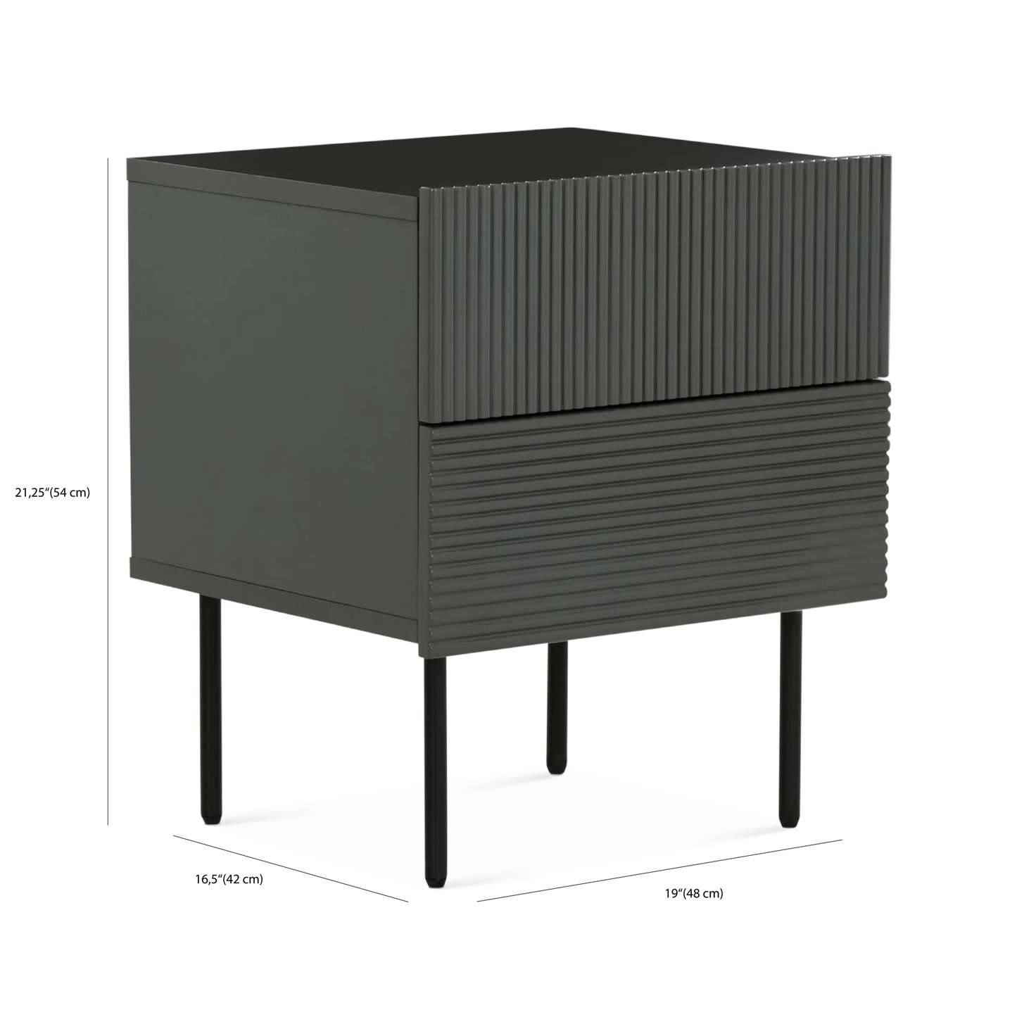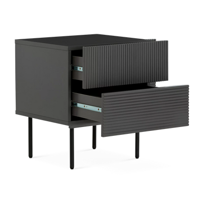 Cannelle - Table de chevet en bois avec 2 tiroirs