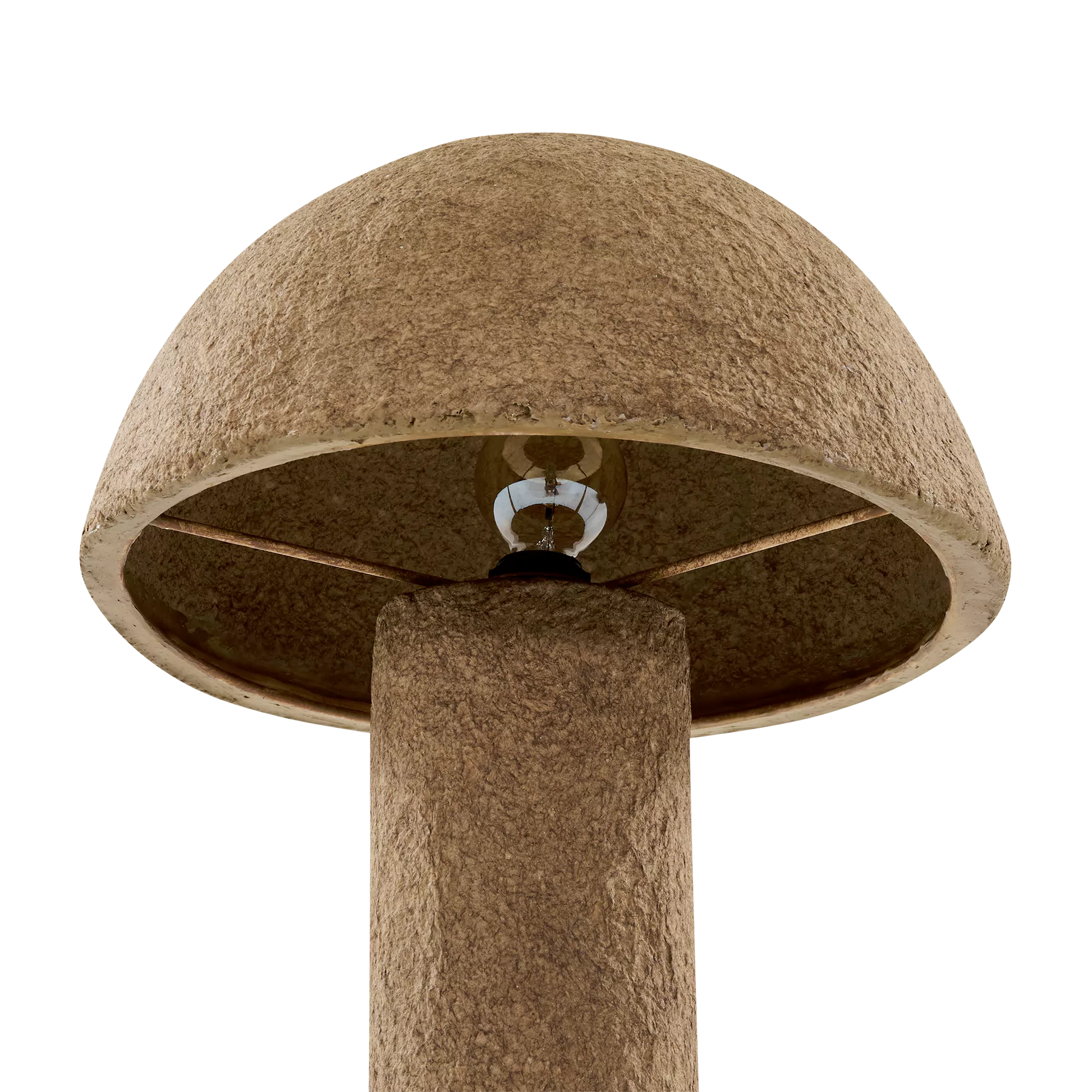 Cette lampe de table en pâte de papier adopte une silhouette en champignon qui lui donne un charme moderne et délicatement organique. Entièrement façonnée dans une texture mate au fini artisanal, elle forme une pièce sculpturale qui diffuse une lumière douce. Un bel accent décoratif pour créer une ambiance apaisante dans toute pièce.