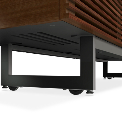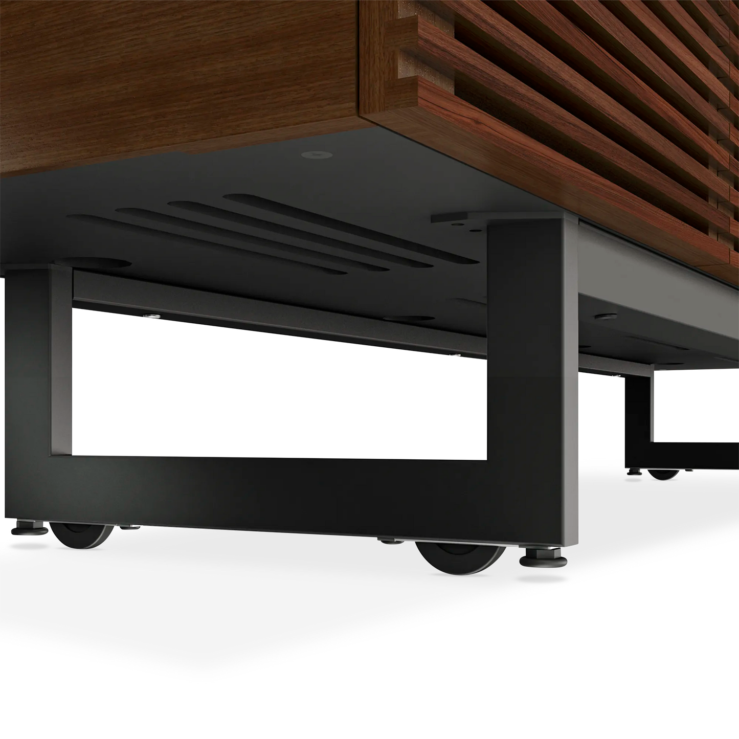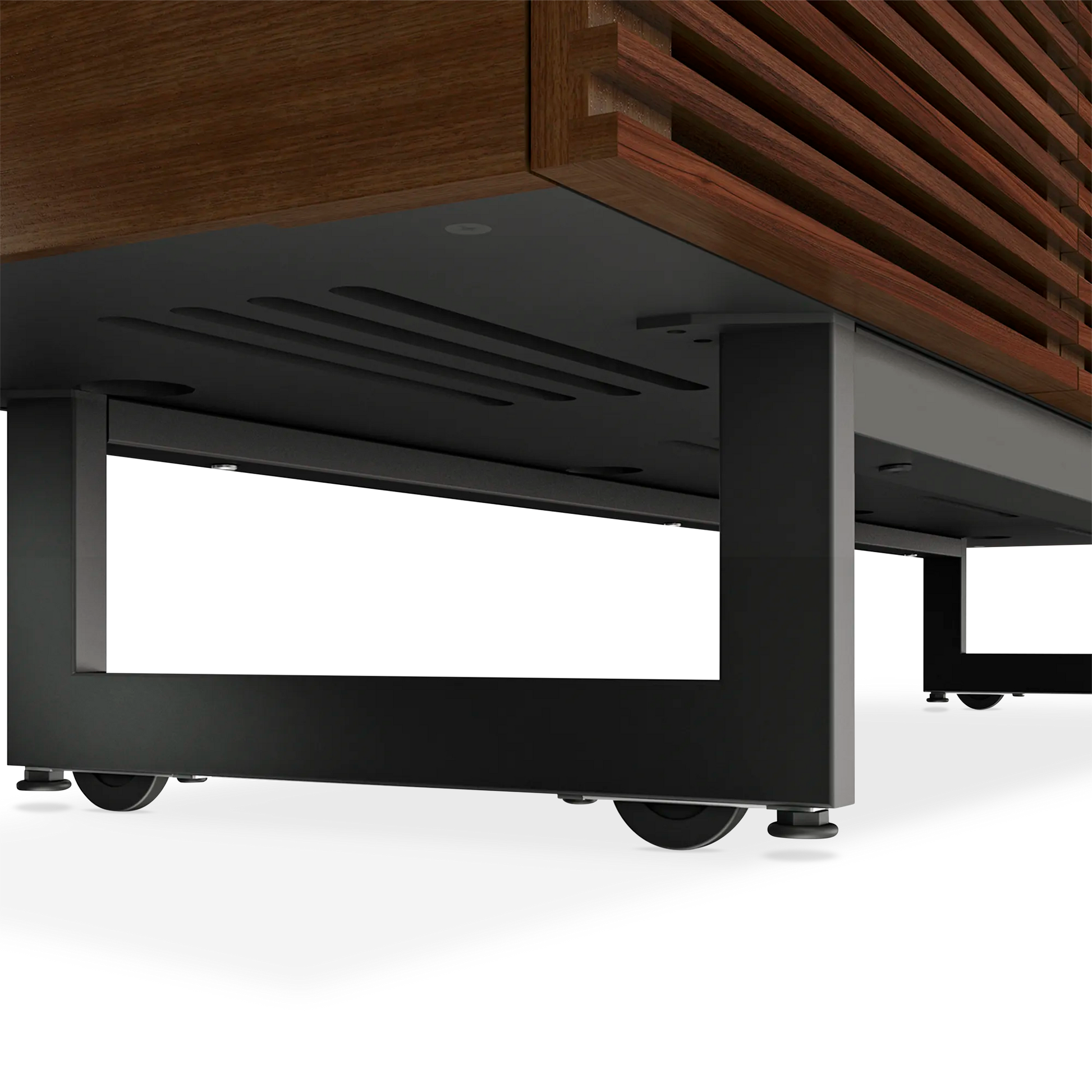 - Roues et niveleurs dissimulés pour faciliter les déplacements et l’accès aux câbles.