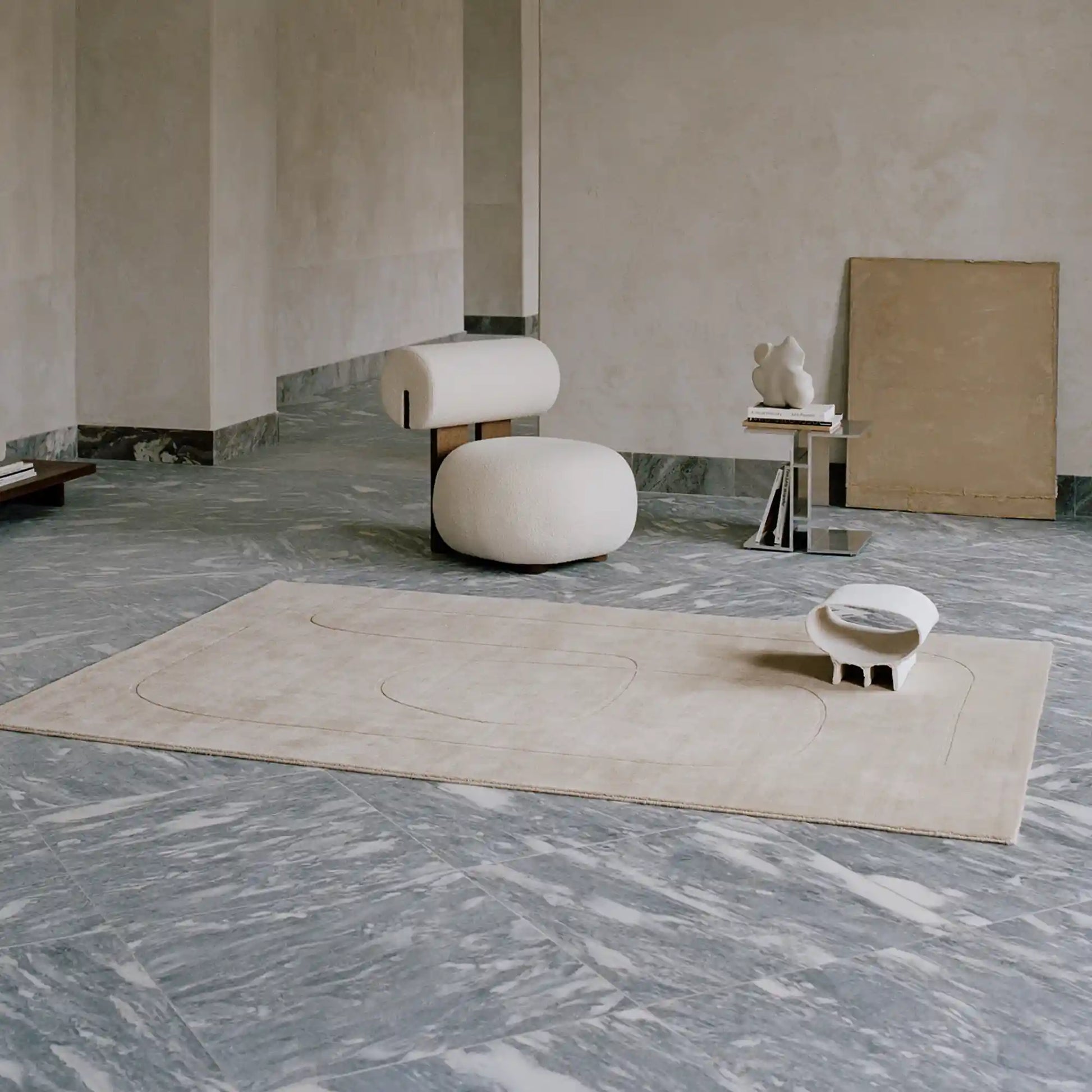 Sur une base neutre, une ligne sinueuse en relief esquisse un motif tout en subtilité. Tissé à la main en laine avec une trame en coton biologique, le tapis Cursive Expanse offre un rendu texturé et fluide, aussi apaisant au regard que durable dans le temps.