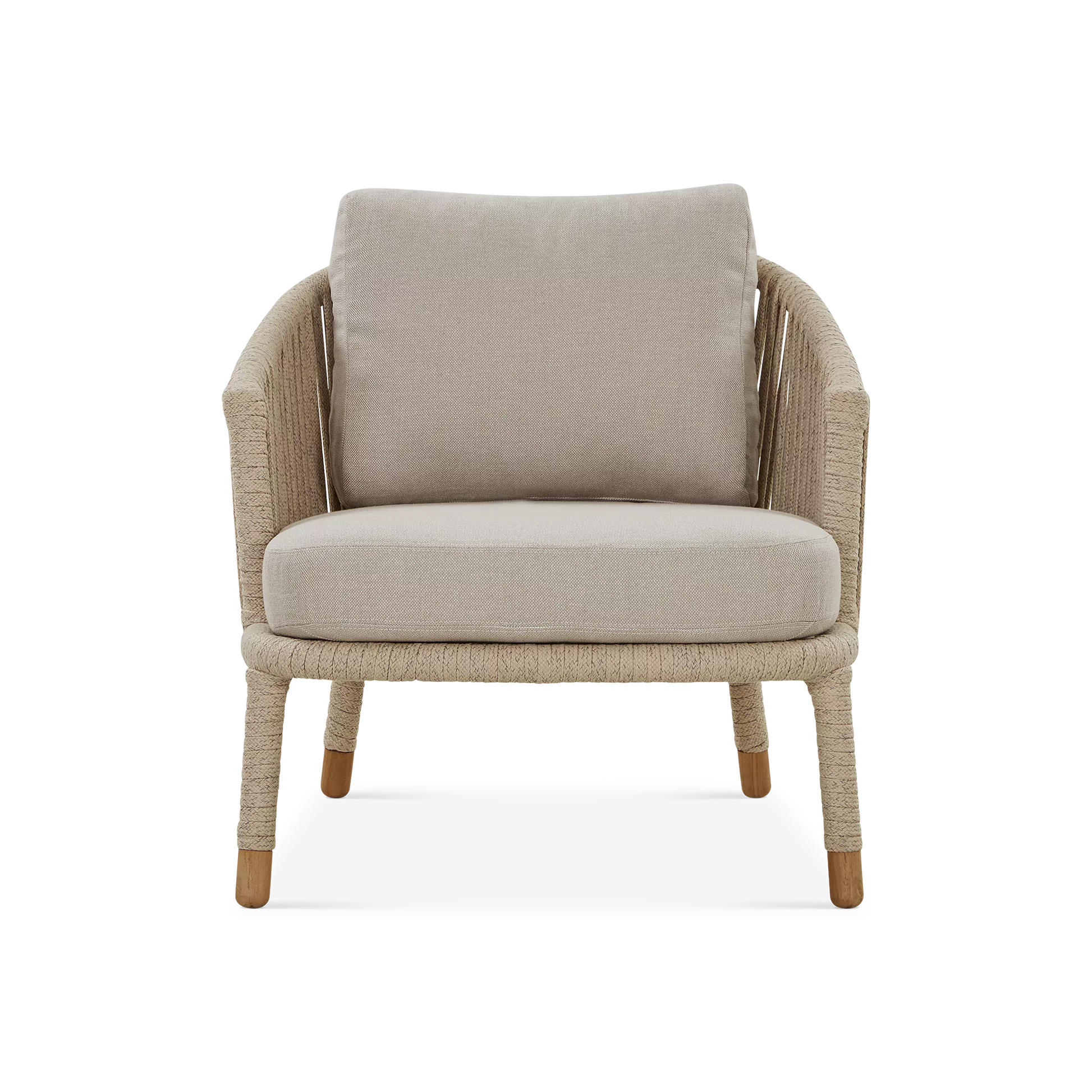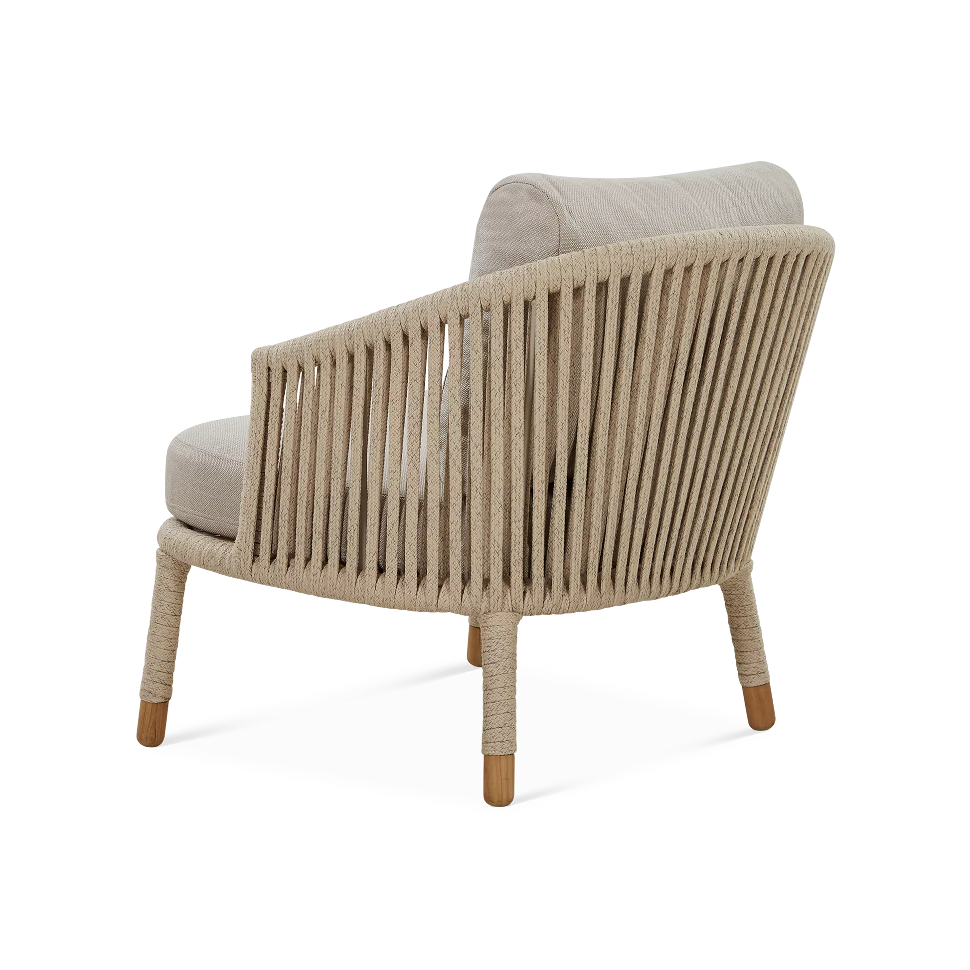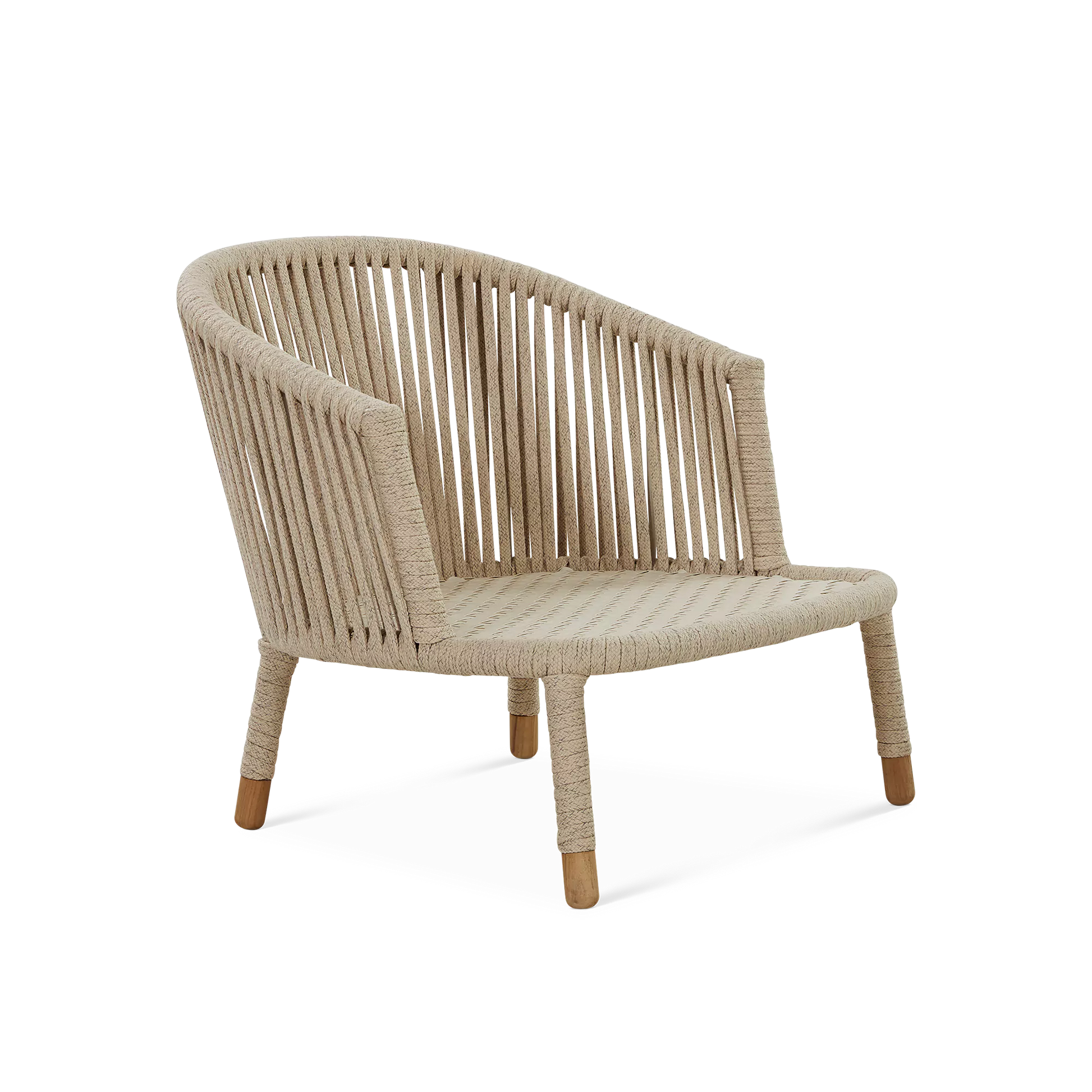 La tendance est aux jeux de tressage, plus ou moins tissés serrés. Le duo de designers danois, Johannes Foersom et Peter Hiort-Lorenzen, a choisi la corde pour habiller le fauteuil Moments. Ce tissage ajouré, qui laisse passer la lumière, lui donne finesse et légèreté. Les coussins, conçus pour un usage extérieur, tout comme la corde, bénéficient des technologies AirTouch et QuickDry de Cane-line : ultra-doux au toucher, ils sèchent en moins d’une heure après une averse.