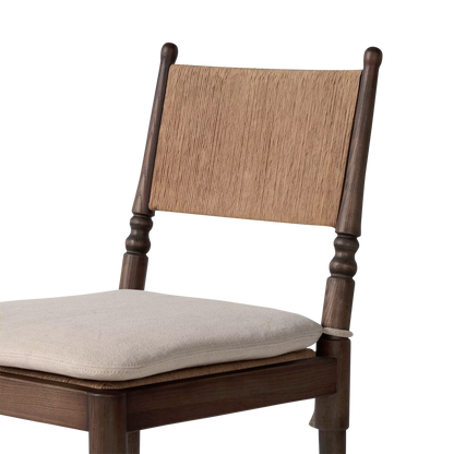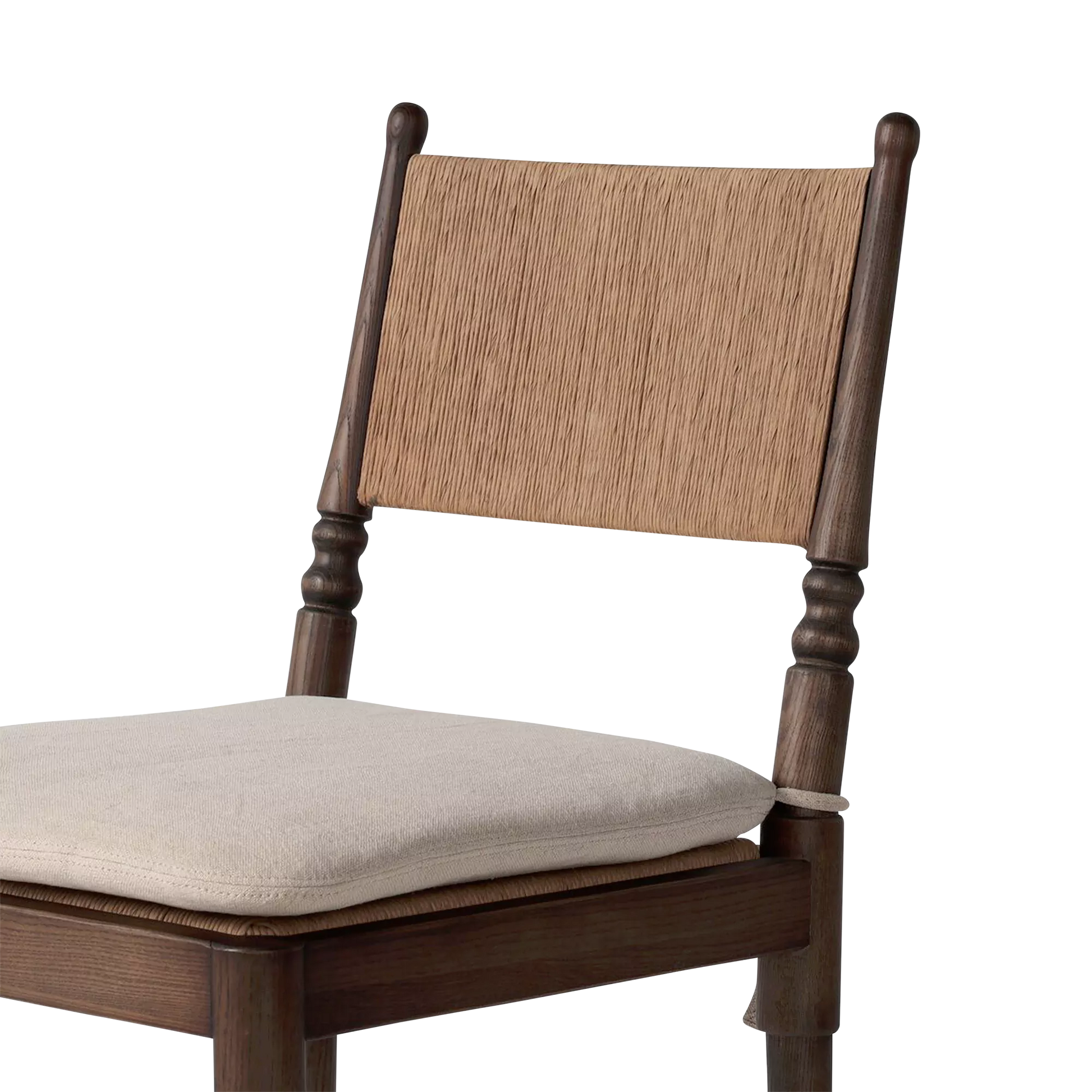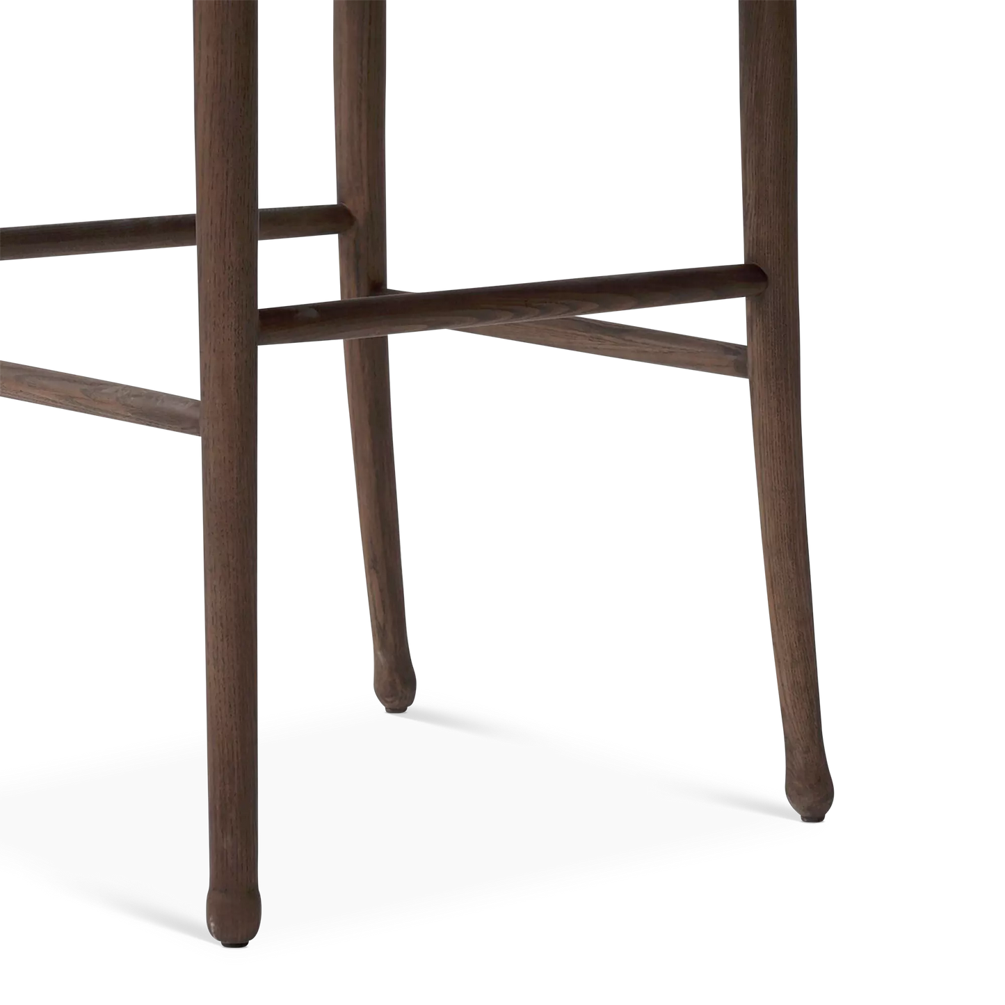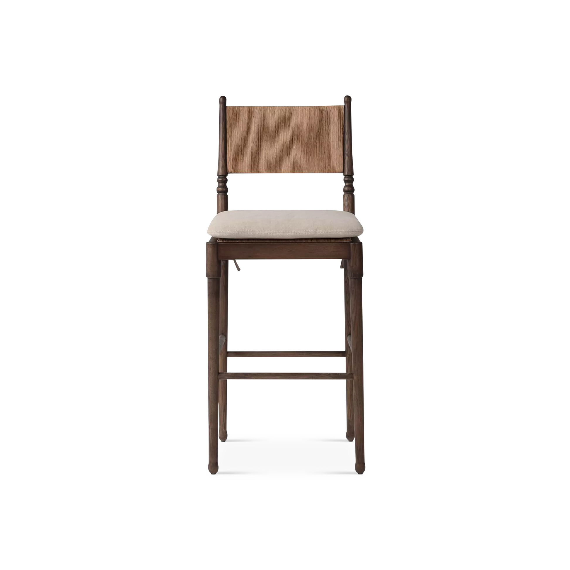 Le tabouret de comptoir Fayth réinvente une silhouette familière avec des détails raffinés. Il est fabriqué en frêne massif et présente une finition dans une teinte noyer chaleureuse, avec des formes arrondies et des pieds légèrement incurvés pour une élégance subtile. Son dossier en corde de papier texturée ajoute une touche artisanale, tandis que son coussin en lin neutre offre un soutien confortable et durable. Une collaboration entre Amber Lewis et Four Hands.