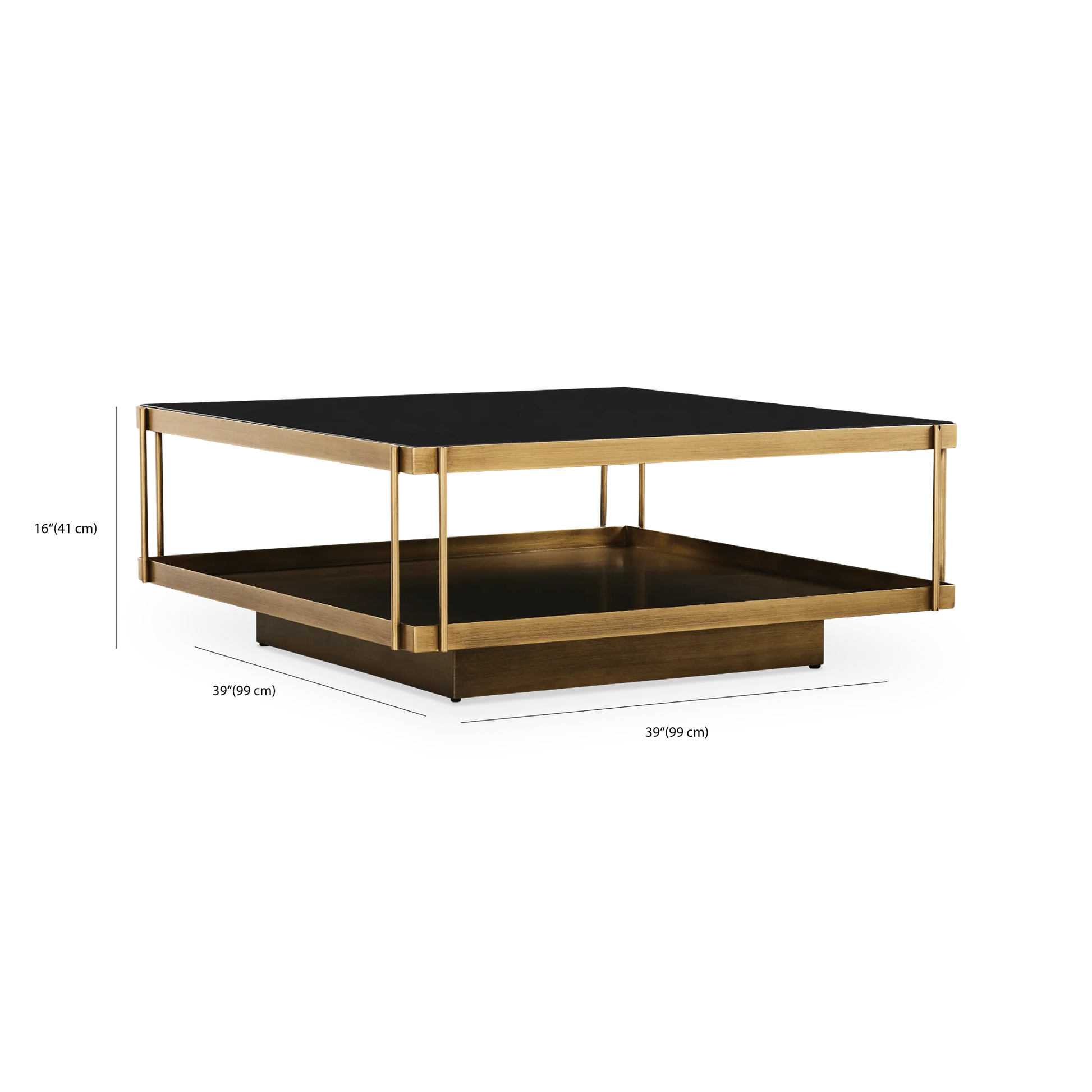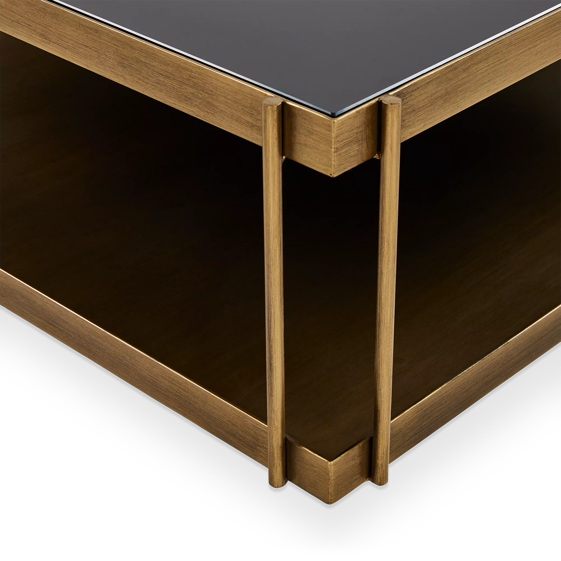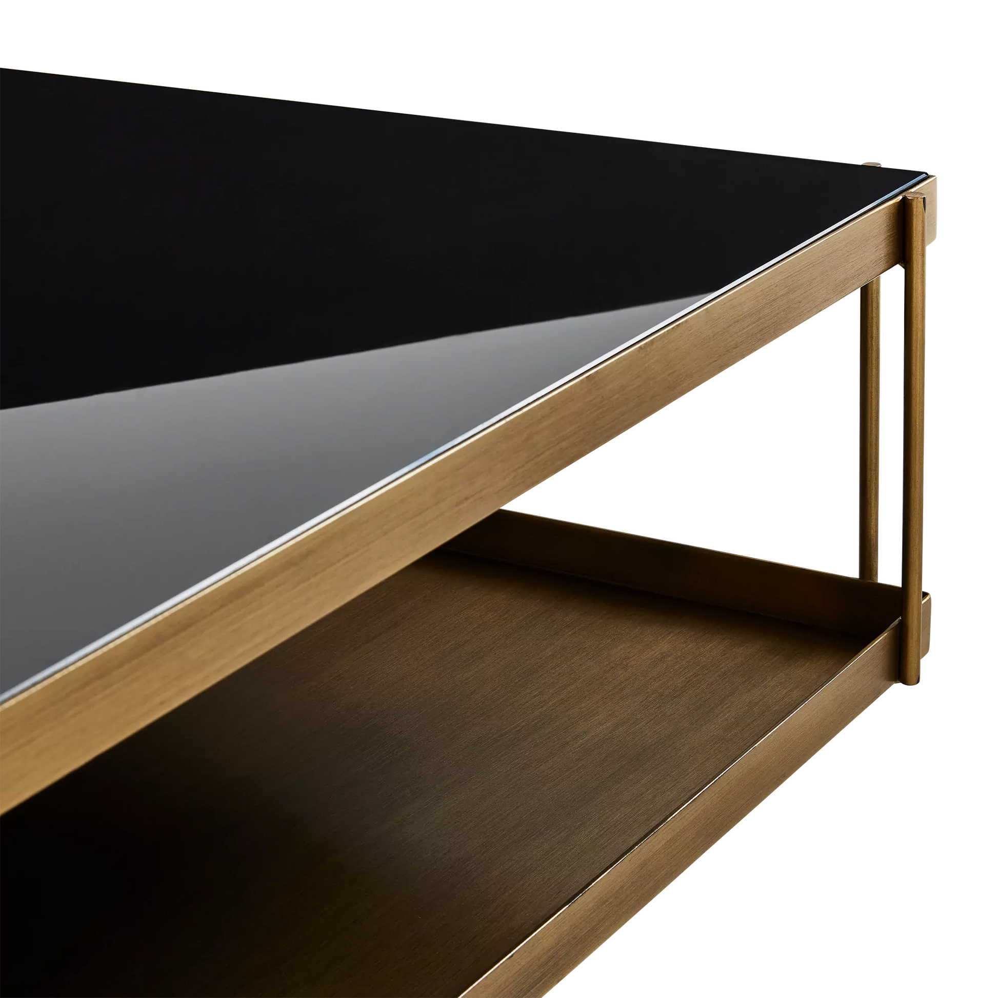 Cette table basse carrée, imaginée par Morten Georgsen, combine un étonnant plateau en verre noir et une étagère en laiton antique à aire ouverte. Conçue pour attirer l’attention, Finch mêle prestance et élégance.