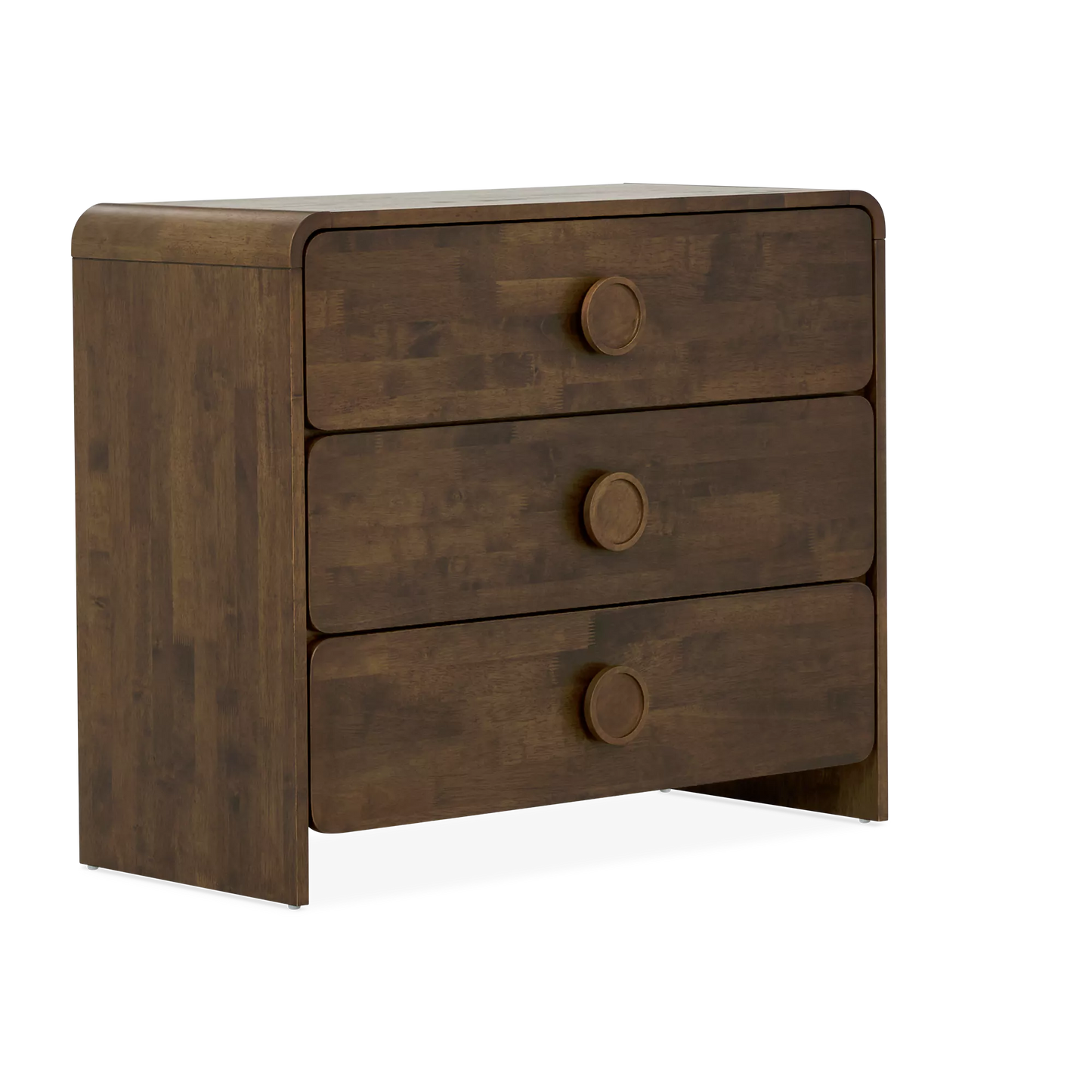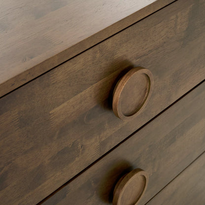 La commode François revisite le style des années 60 avec ses lignes courbées et ses poignées circulaires au design distinctif. Entièrement réalisée en placage de noyer, elle offre trois tiroirs spacieux et un équilibre parfait entre allure rétro et élégance contemporaine.