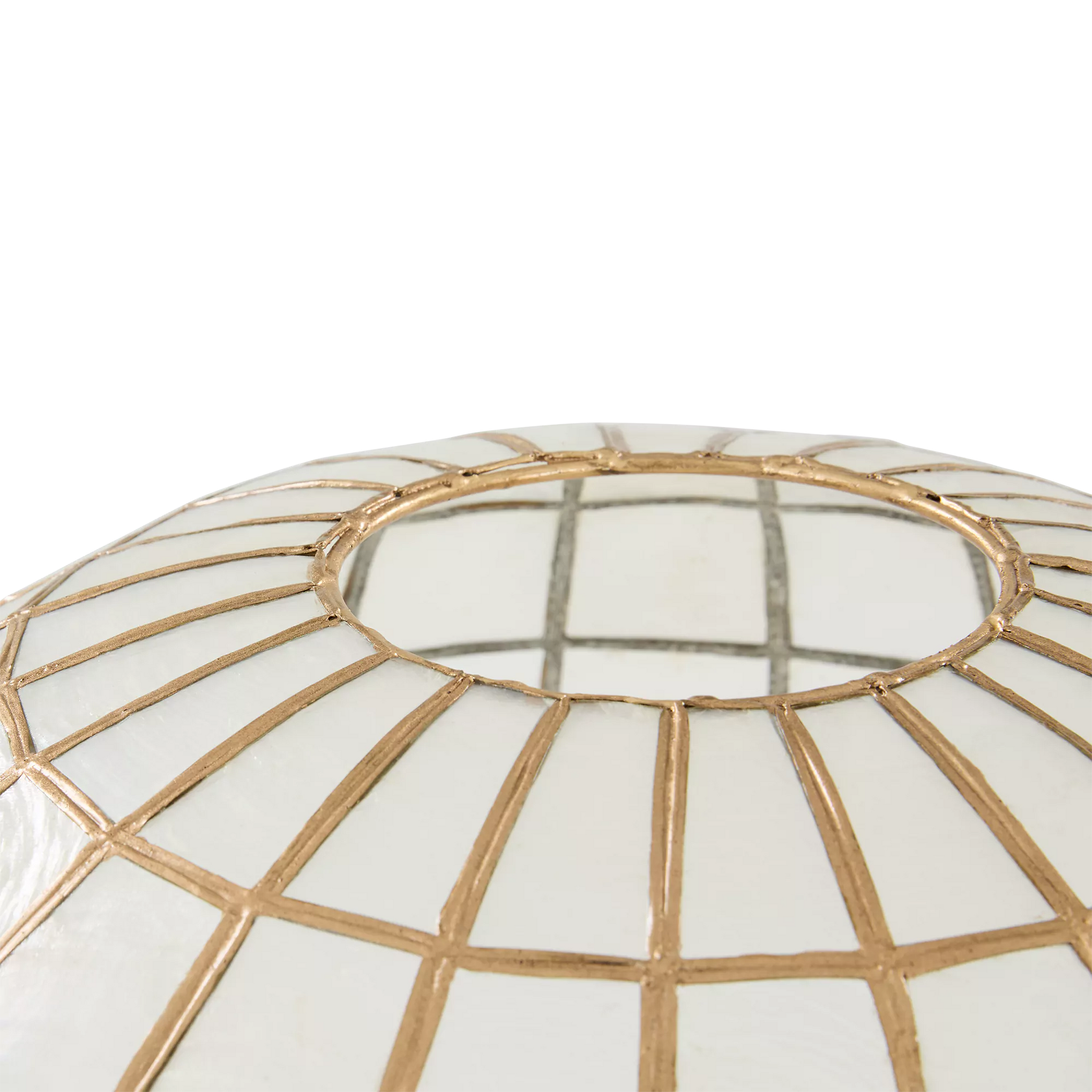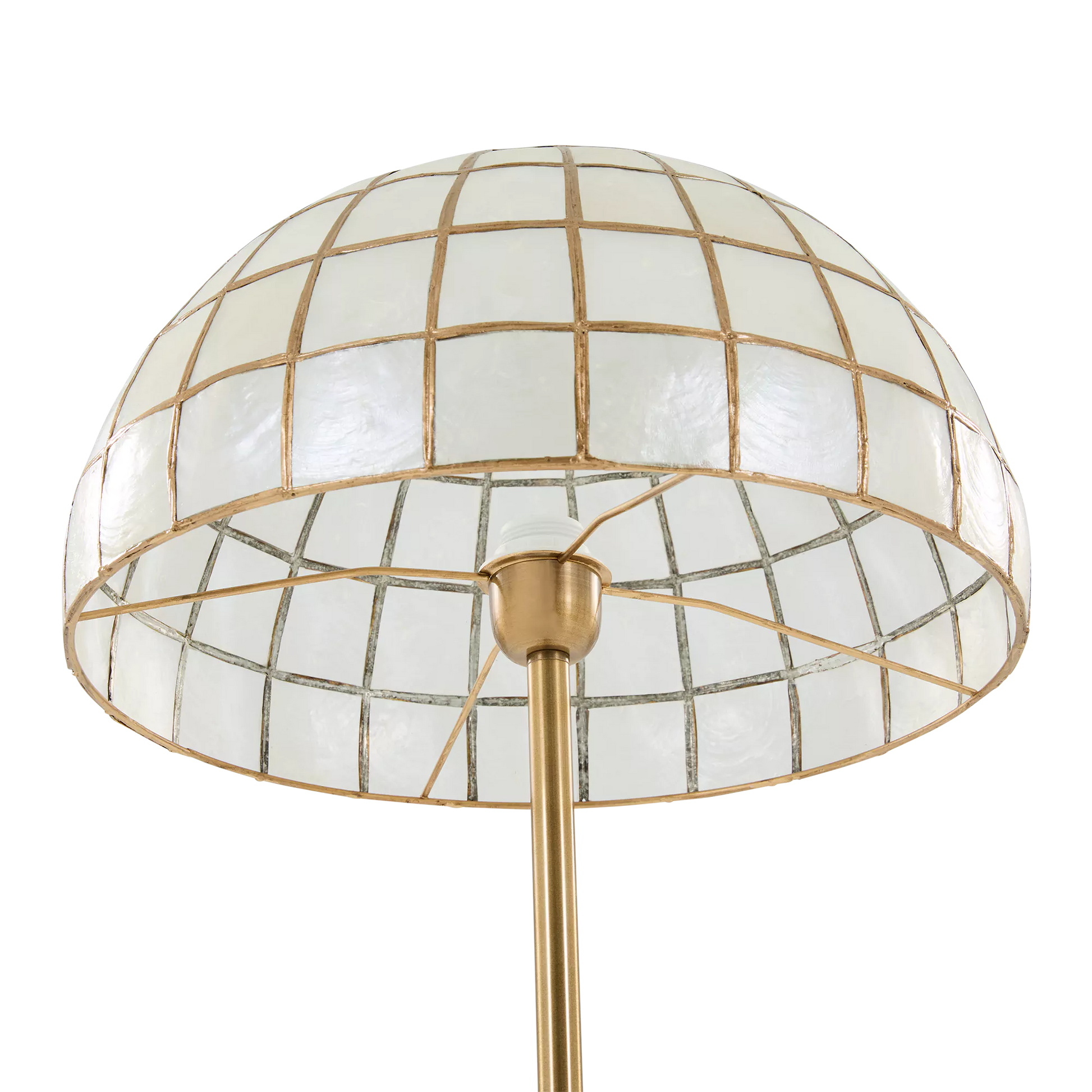 La lampe sur pied Freedom associe une base élancée en métal doré à un abat-jour en dôme composé de capiz naturels soulignés d’un liseré doré. Ses reflets délicats diffusent une lumière douce et légèrement scintillante. Une pièce raffinée qui apporte une touche lumineuse et élégante au salon, à la chambre ou à un coin lecture.