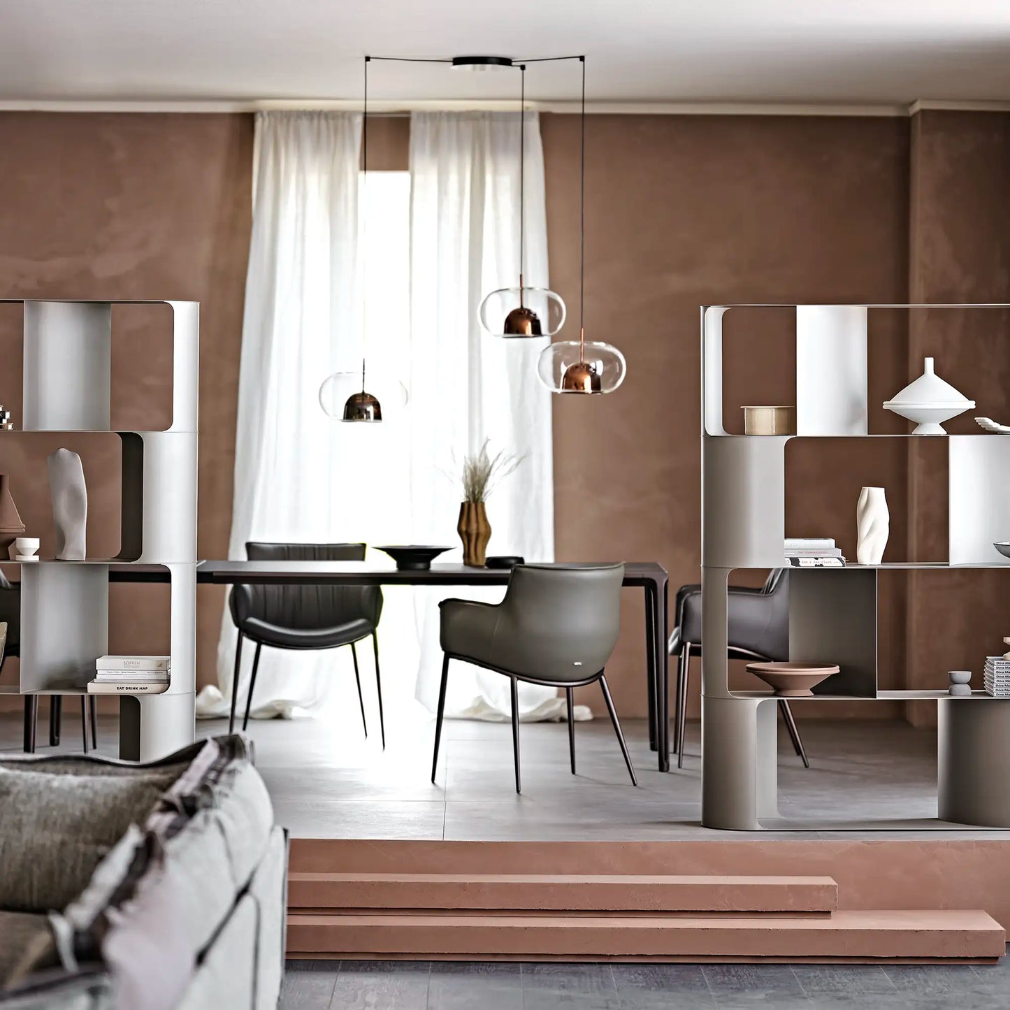 Conçue par Ono Design pour Cattelan Italia, la bibliothèque Fulham présente une esthétique moderne et des courbes fluides. En la disposant au centre de la pièce, seule ou superposée, elle agit comme une jolie cloison, parfaitement symétrique et équilibrée.