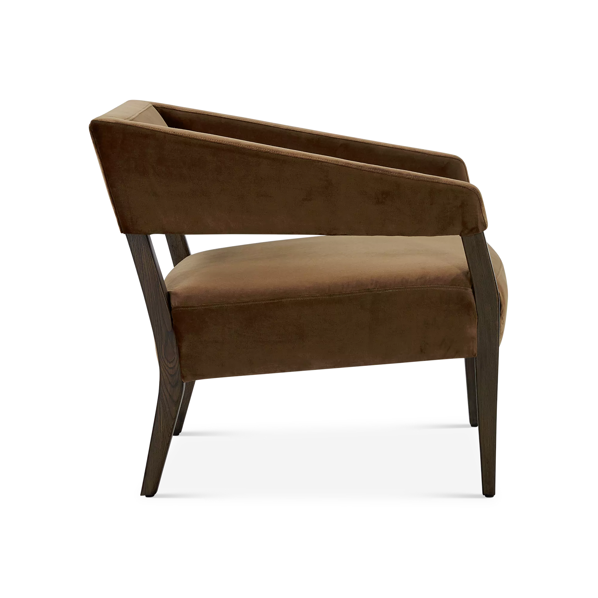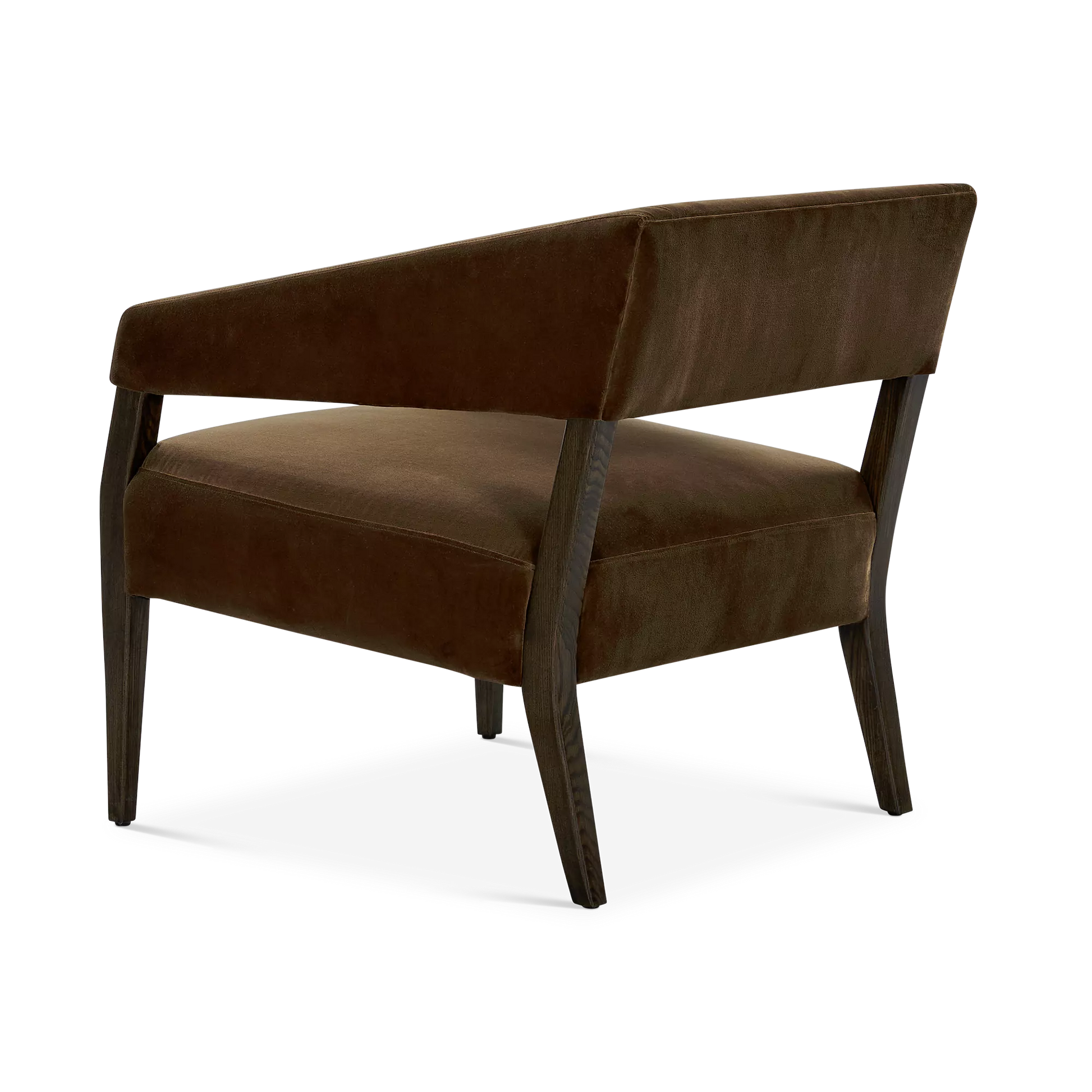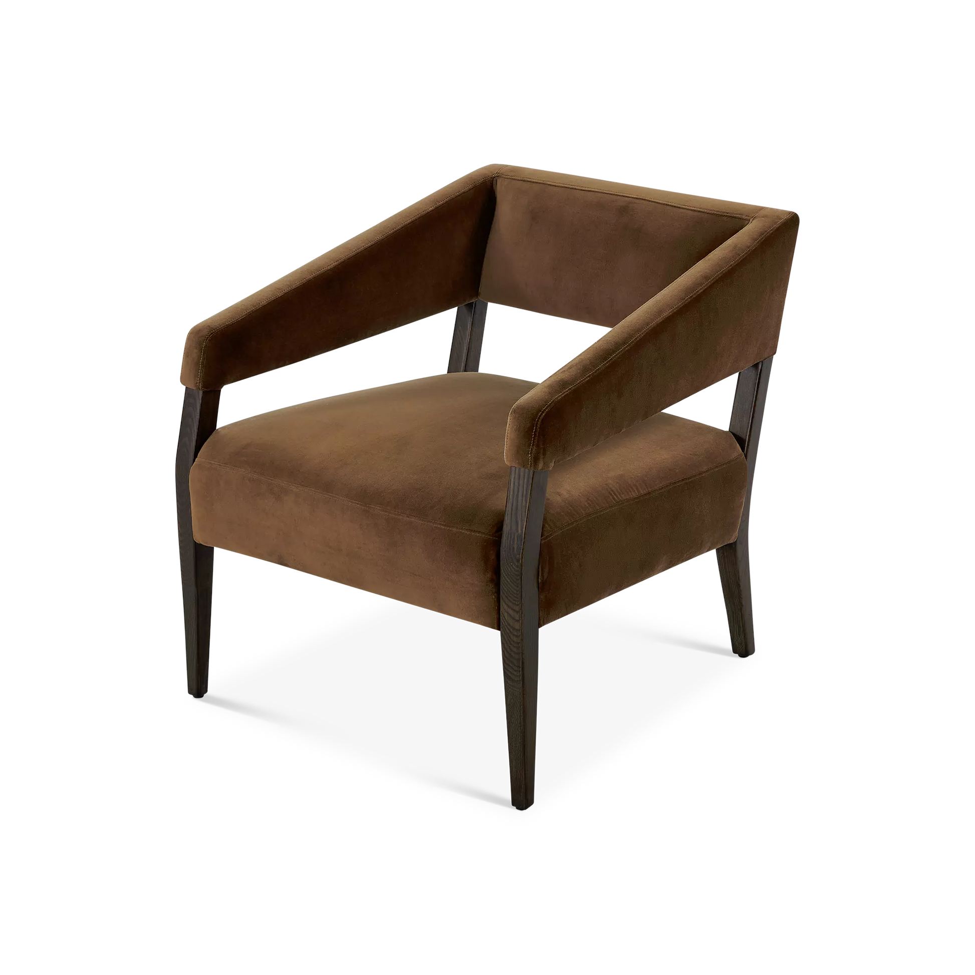 Aux lignes franches et aux angles marqués, le fauteuil Gary accorde une structure en chêne à un siège rembourré, revêtu de velours. Son dossier aéré, qui se prolonge pour former ses accoudoirs, crée une impression de légèreté.