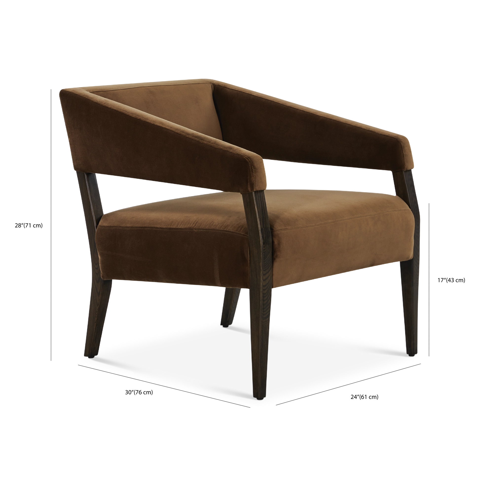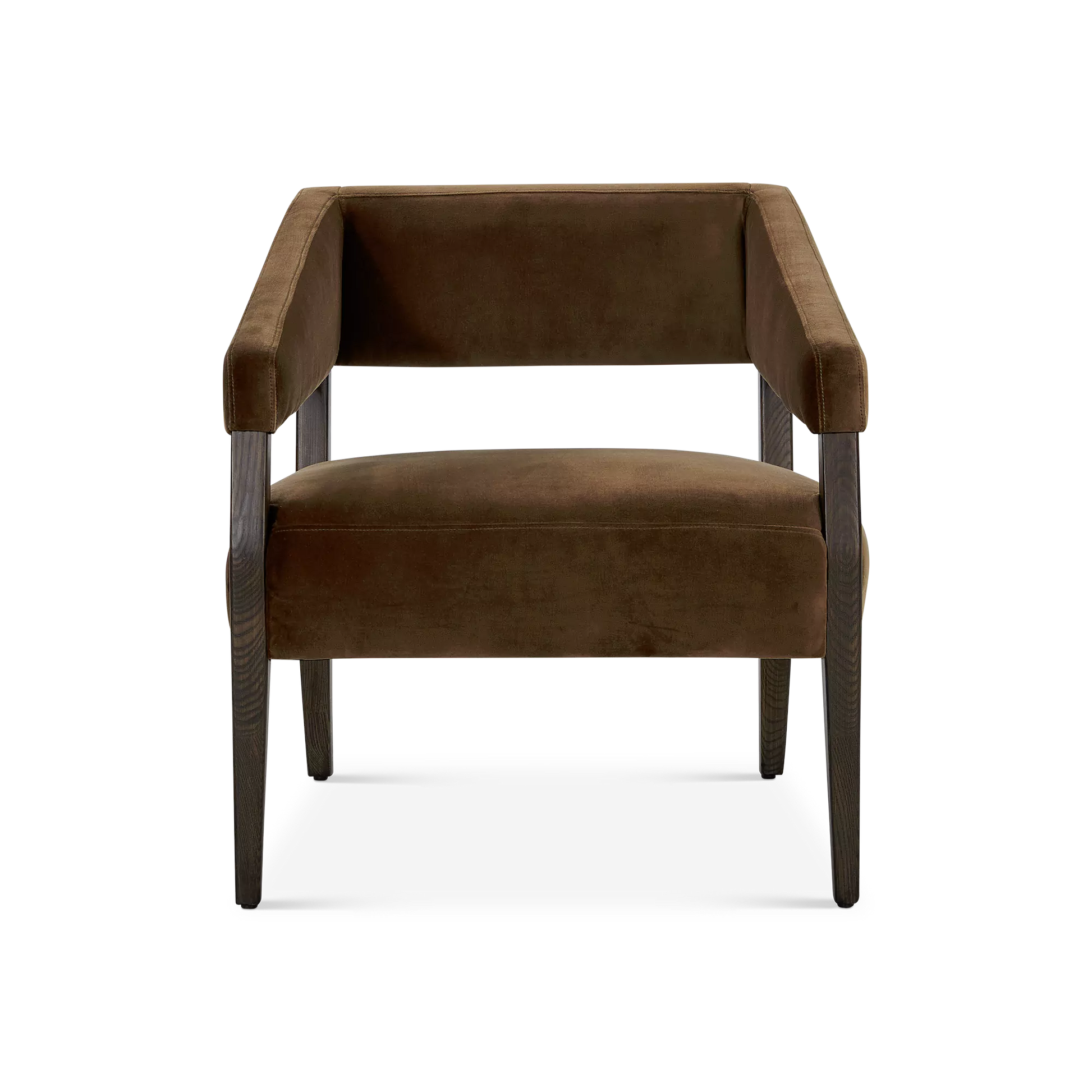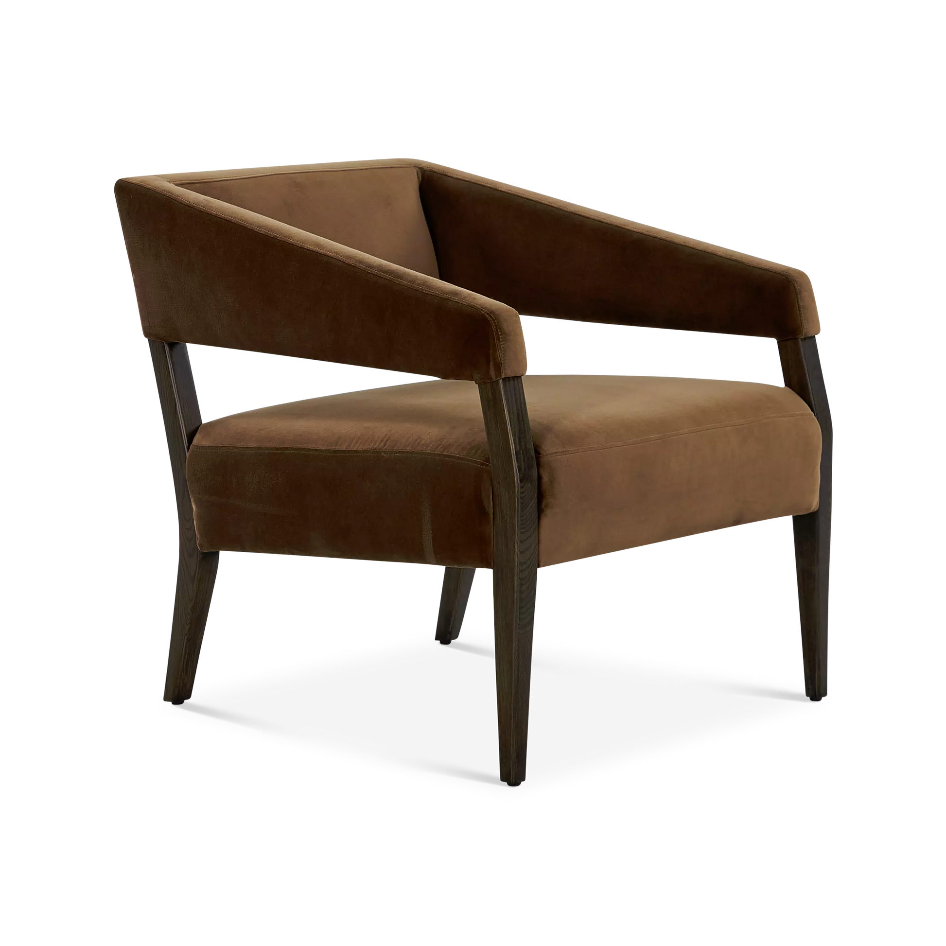Aux lignes franches et aux angles marqués, le fauteuil Gary accorde une structure en chêne à un siège rembourré, revêtu de velours. Son dossier aéré, qui se prolonge pour former ses accoudoirs, crée une impression de légèreté.