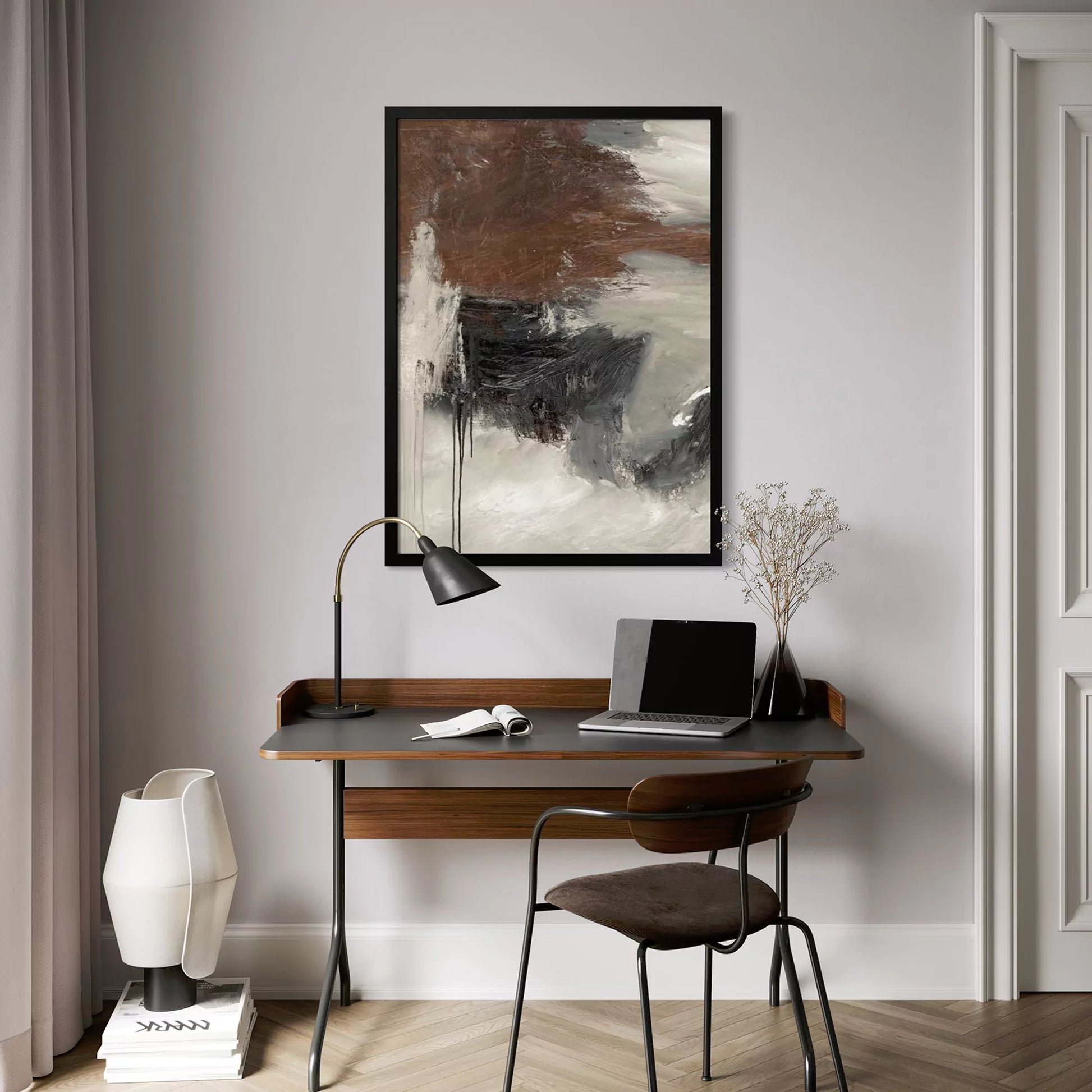 Glow mélange chaleur et mouvement dans un jeu de textures qui accroche le regard. Ses tons bruns, gris et ivoire donnent de la profondeur à l’espace sans l’alourdir. À la fois brut et feutré, ce tableau abstrait apporte du caractère.