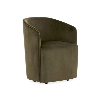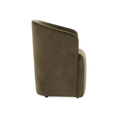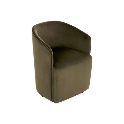 La chaise Judith, habillée d’un velours vert et dotée d’un dossier ajouré, combine élégance et légèreté. Sa silhouette délicate rappelle un petit fauteuil tout en conservant une allure moderne. Elle s'agence facilement avec des tables en bois, en marbre ou au style contemporain.