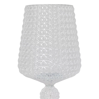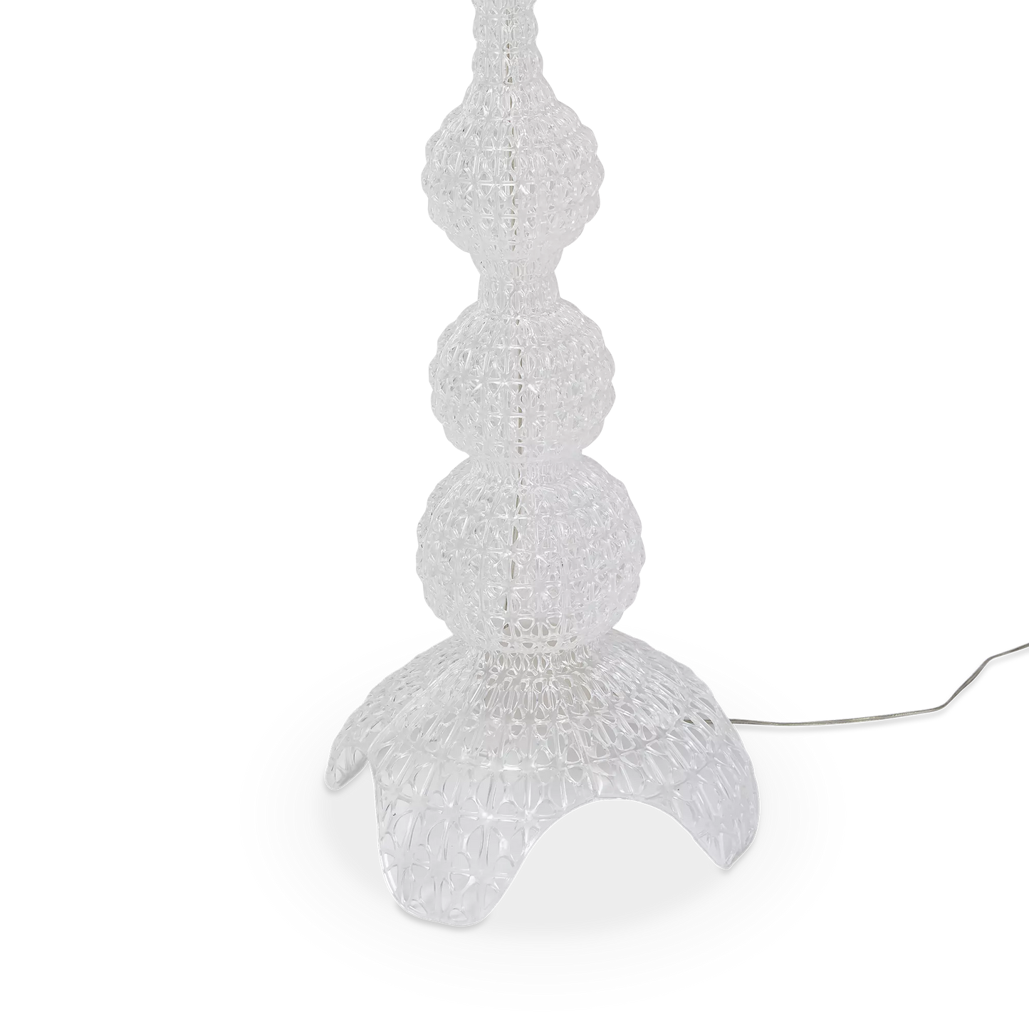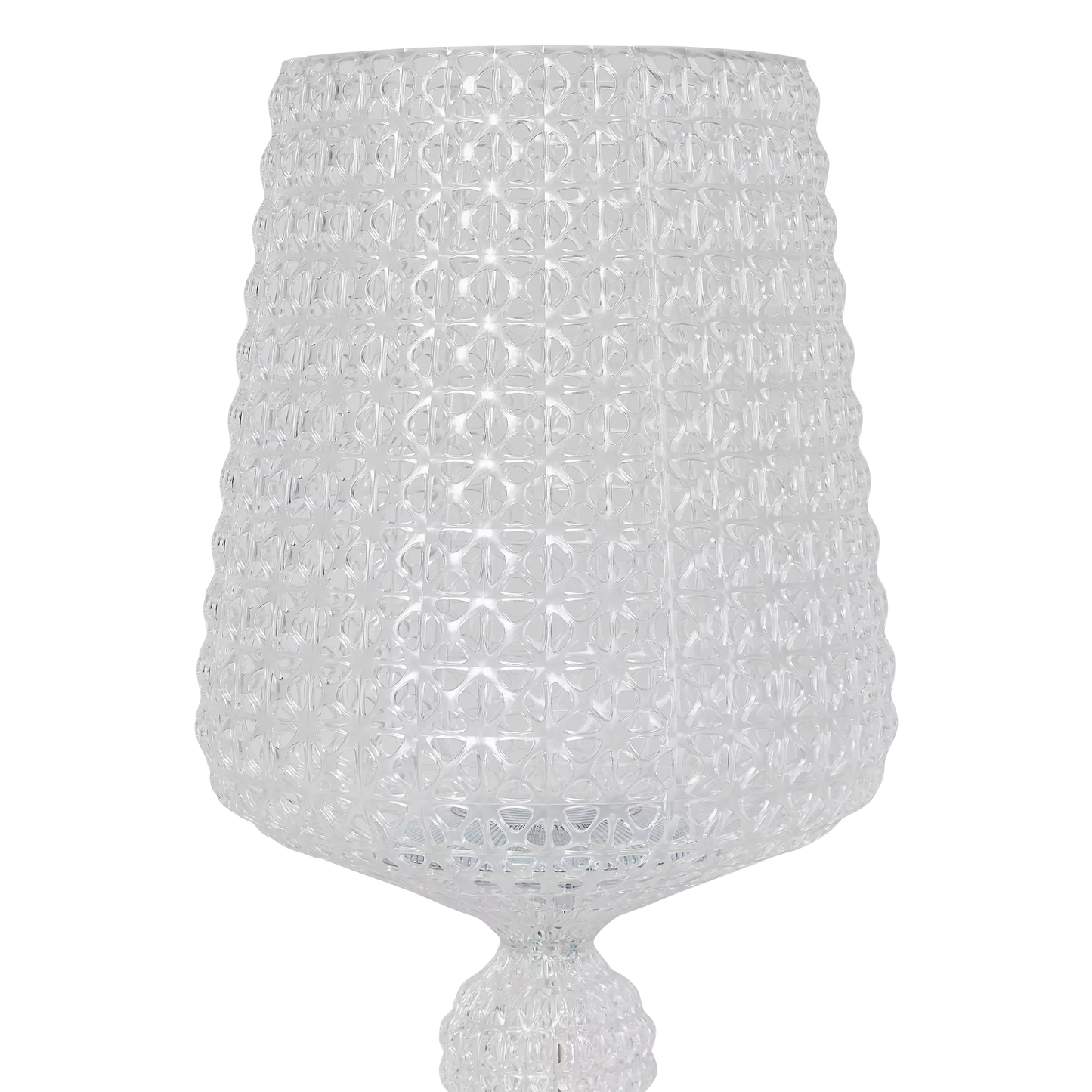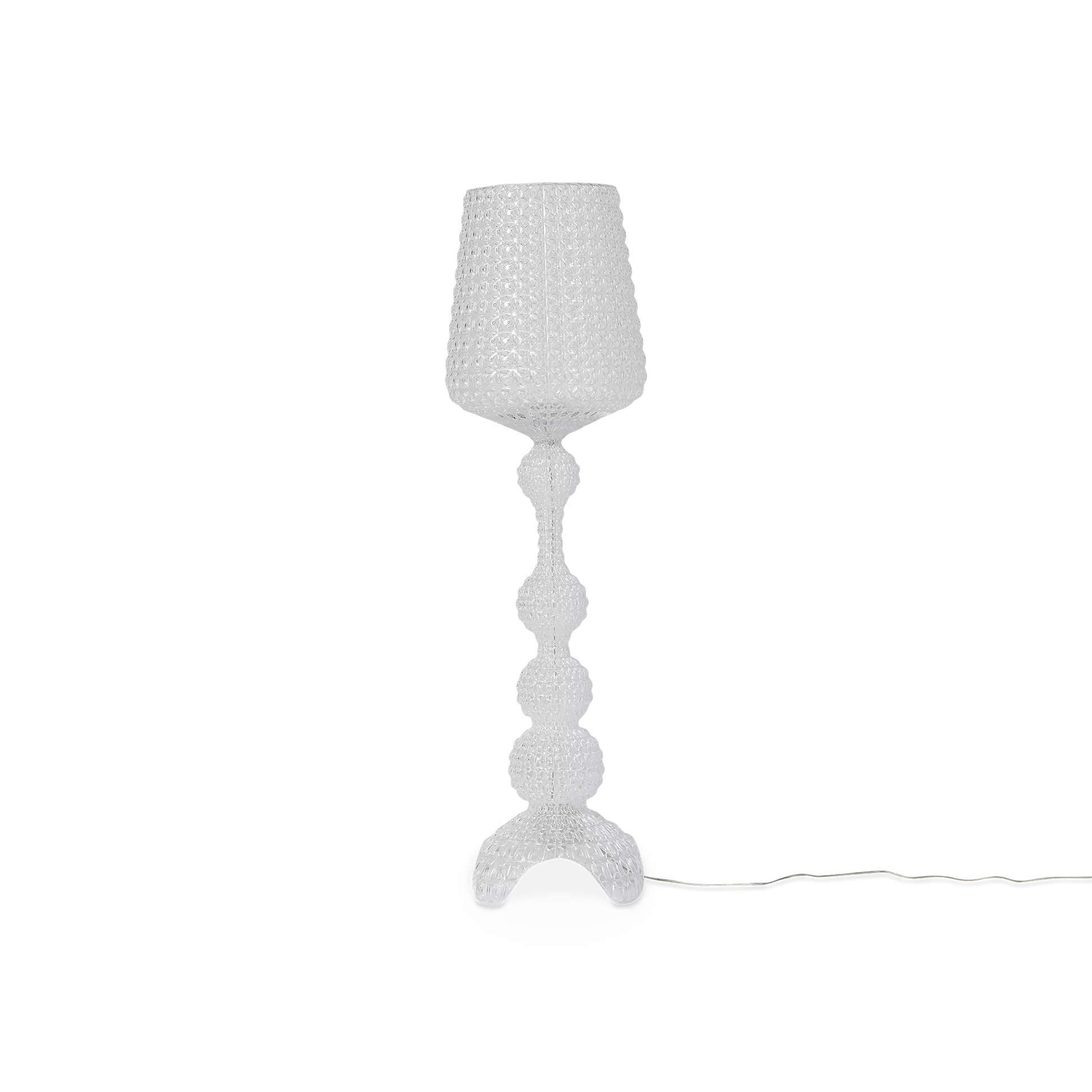 La lampe sur pied Kabuki de Kartell est réalisée par injection pour créer une structure tramée reproduisant la dentelle. Légère et sophistiquée, la lumière se diffuse à travers sa surface ajourée.