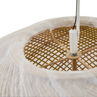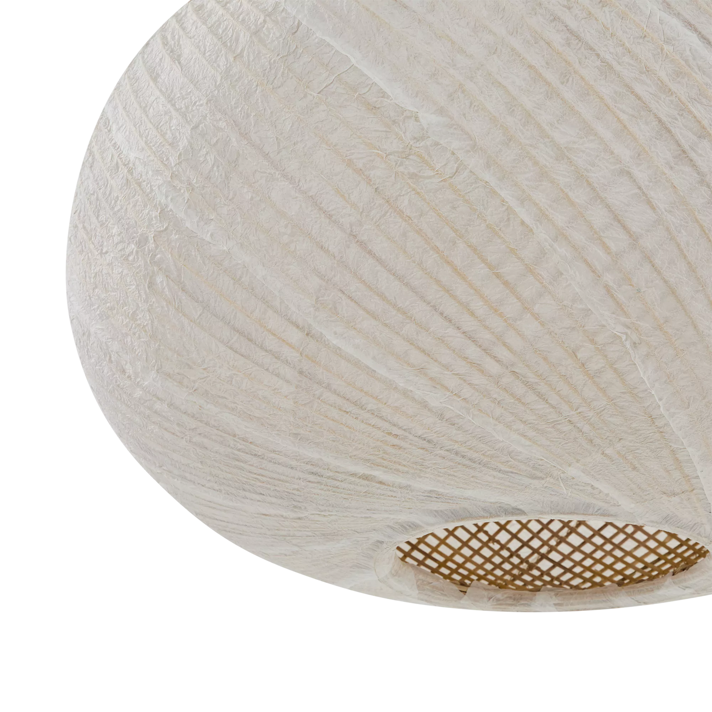 La lampe suspendue Kobi s’inspire des lanternes japonaises avec sa silhouette en forme de poire et son tressage en bambou naturel. Doublée de papier de riz, elle diffuse une lumière douce et apaisante. Suspendue au-dessus d’une table ou dans une entrée, elle apporte une touche organique et poétique au décor.