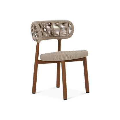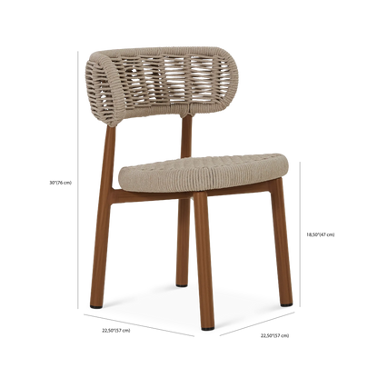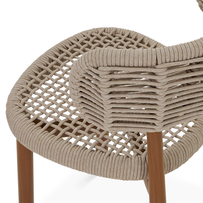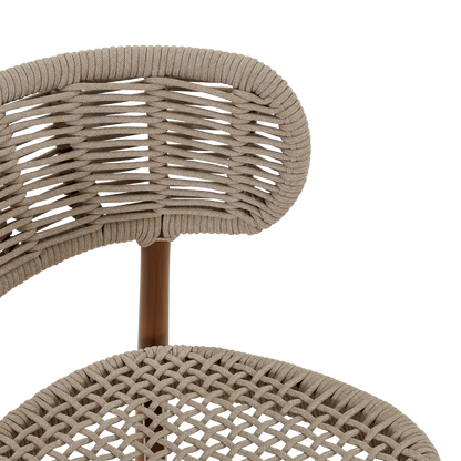 Avec son dossier courbé et son piètement élégant, la chaise à dîner Lady arbore un design à l'inspiration scandinave au charme remarquable. Profitez du confort de son siège en corde tressée, un matériau dont la texture et la couleur beige s'accordent à merveille avec la nature. Le cadre en aluminium peint imite l’apparence du bois tout en supprimant les contraintes d’entretien, faisant de cette chaise une pièce à la fois esthétique et pratique pour vos repas en extérieur.