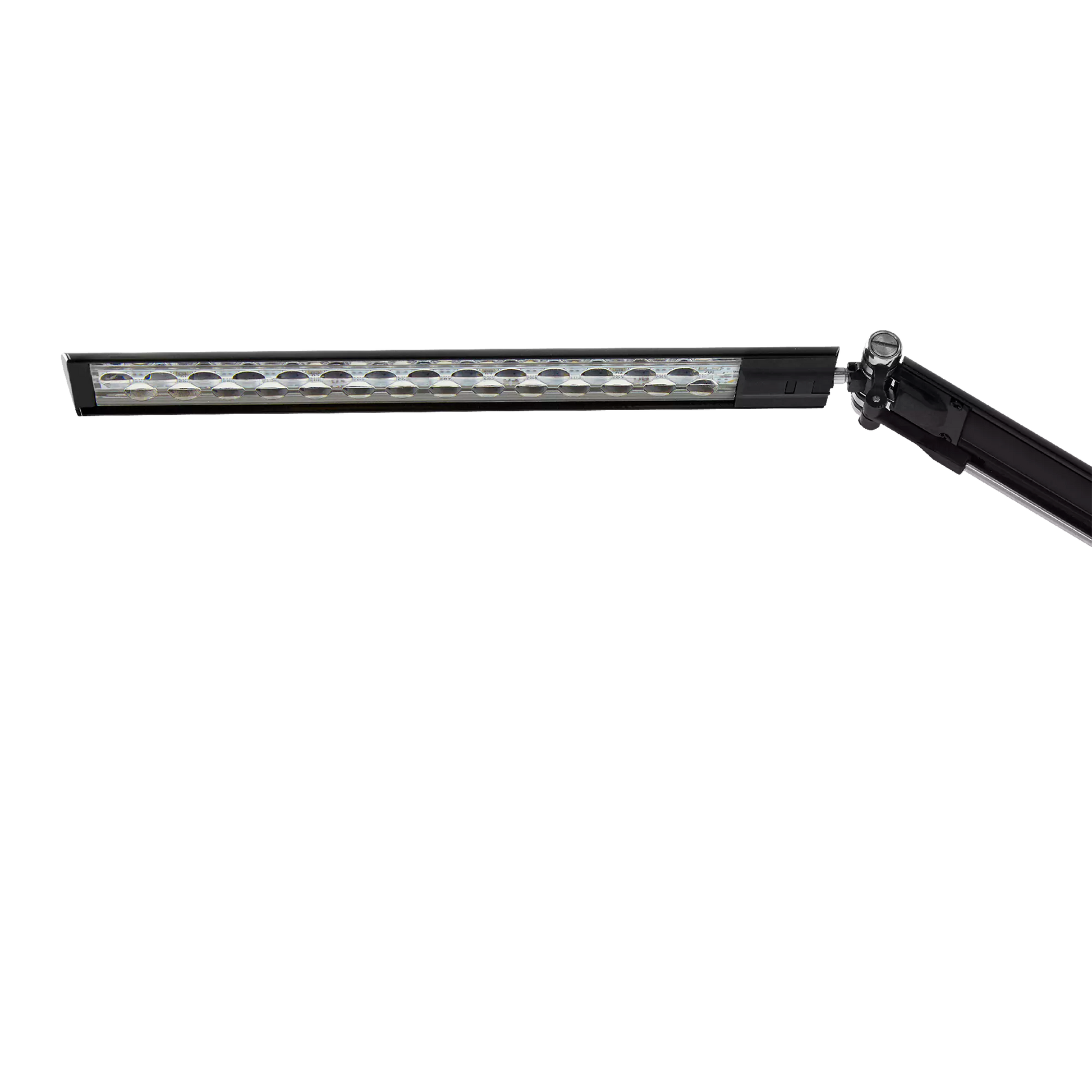 Inclinable et pivotante, la lampe de bureau DEL Equo se manie aisément pour s'adapter aux besoins de l'utilisateur et son espace de travail. Sa structure noire élancée et mince ira de pair dans une pièce à l'ambiance contemporaine.