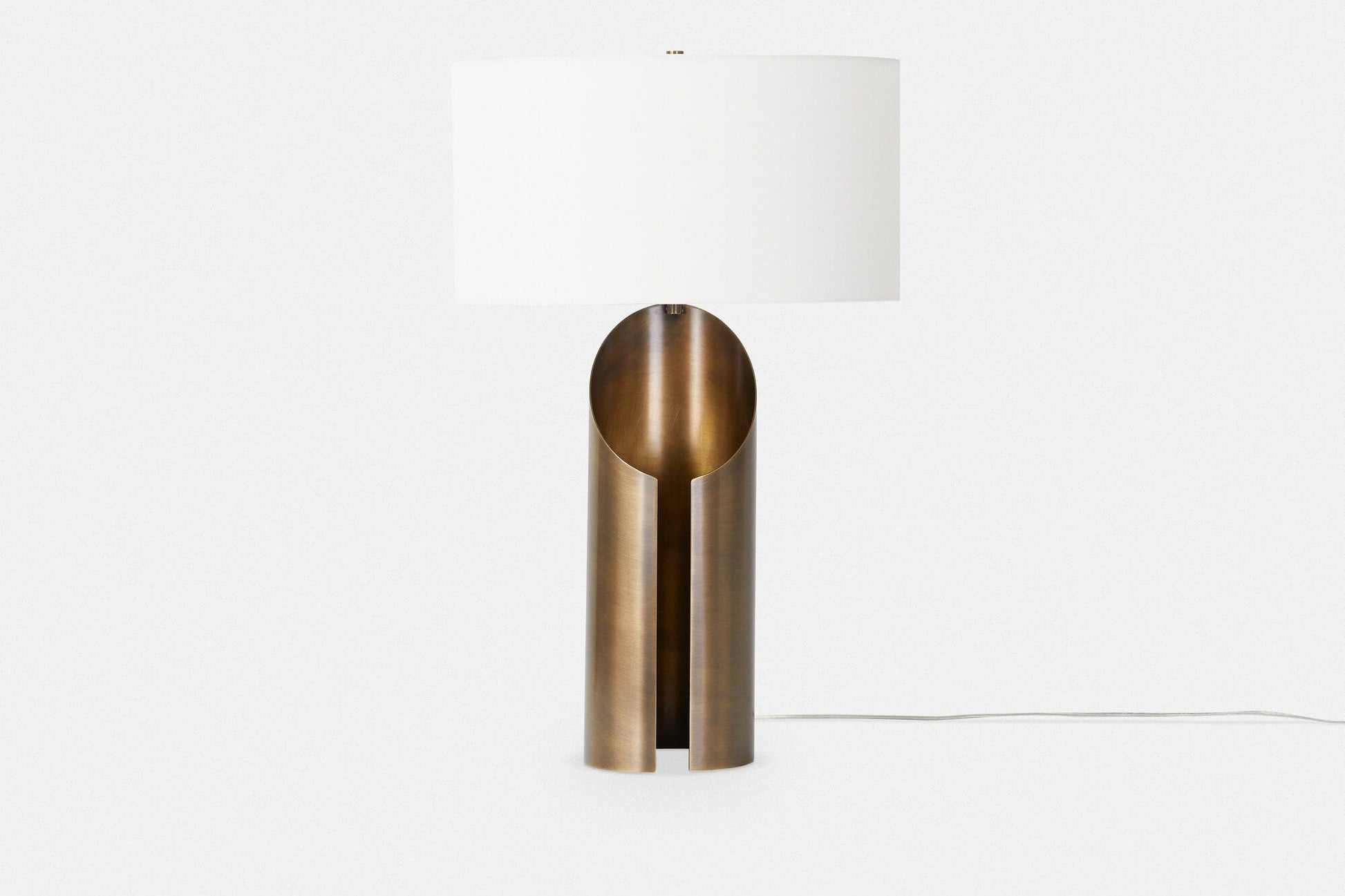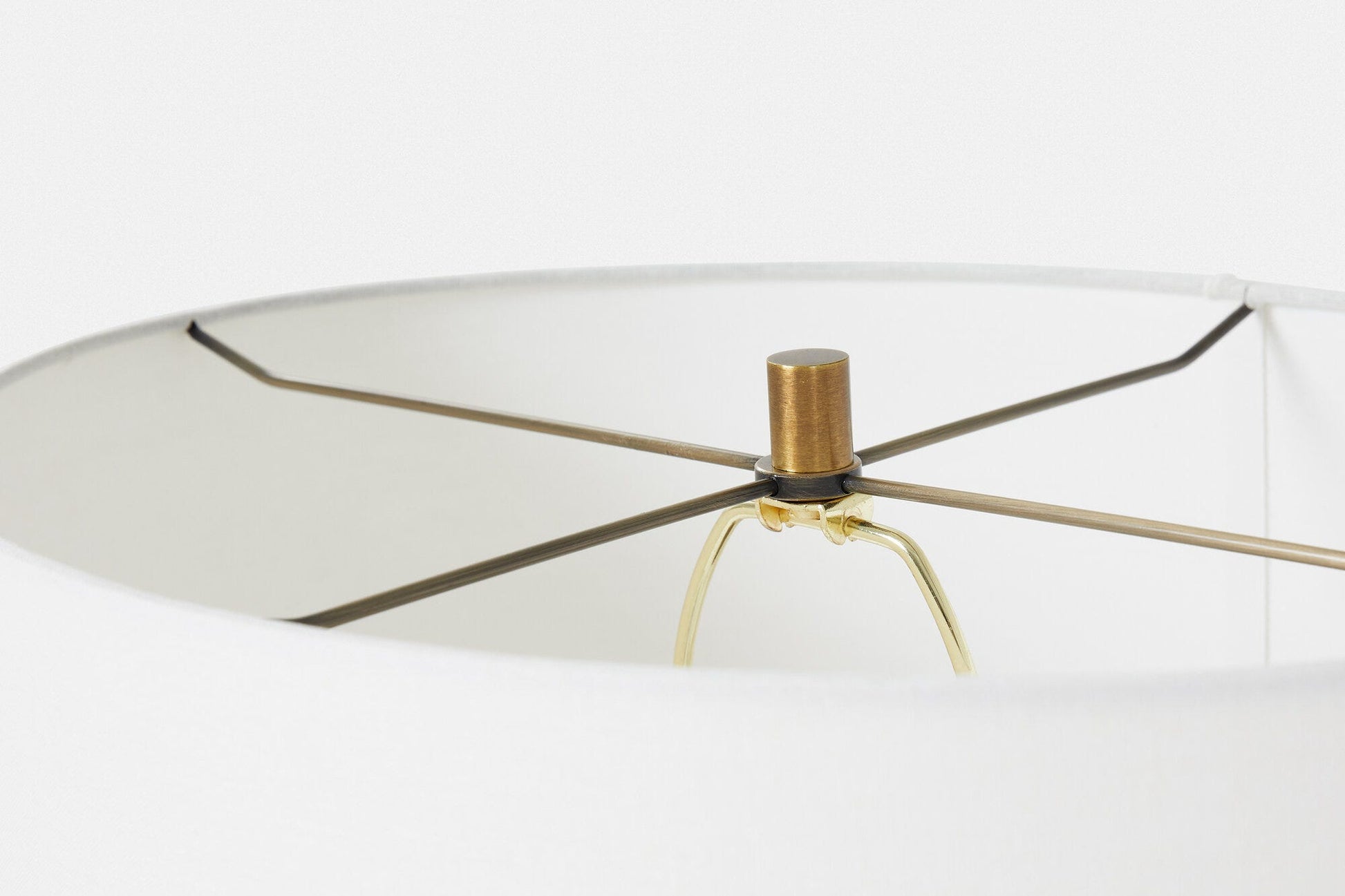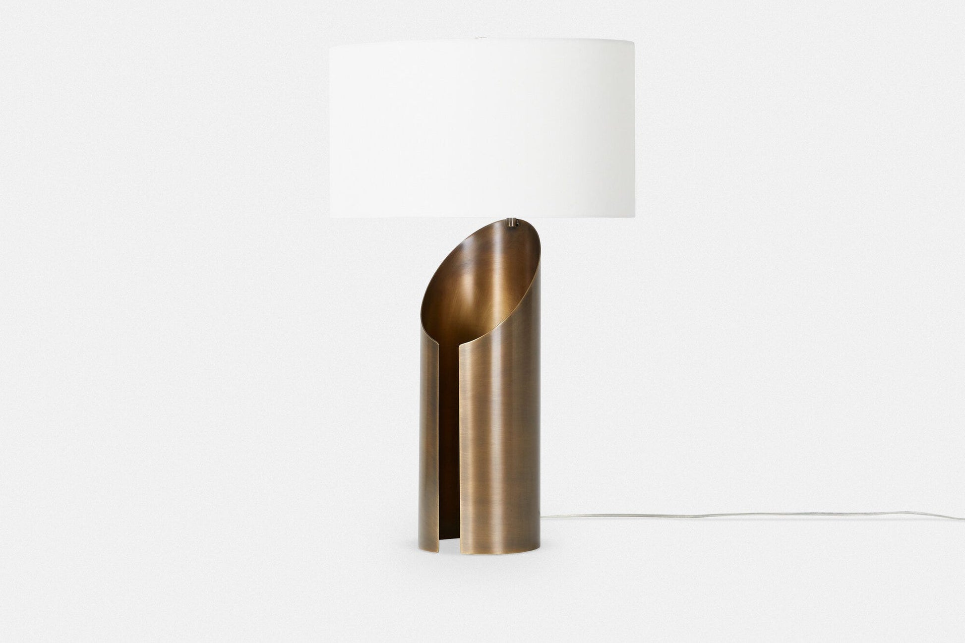 Sculpturale et aérienne, Weaver confirme sa prestance grâce à son design ouvert et ses matières nobles: le laiton antique et le lin.