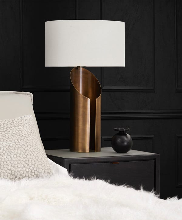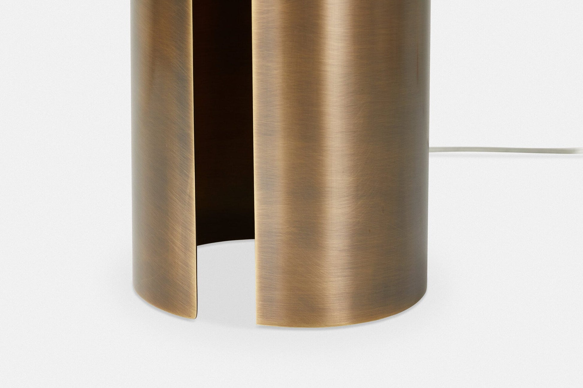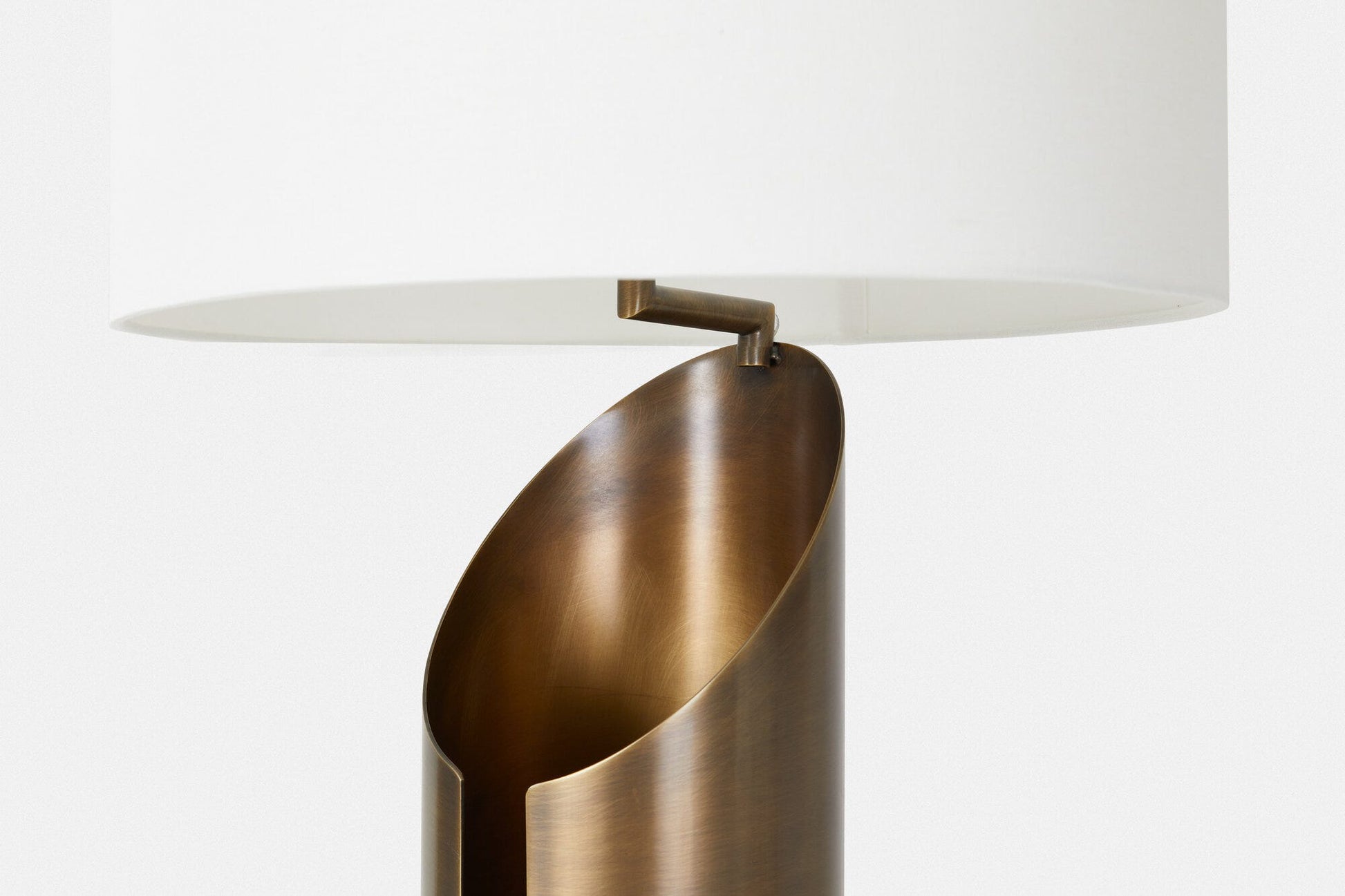 Sculpturale et aérienne, Weaver confirme sa prestance grâce à son design ouvert et ses matières nobles: le laiton antique et le lin.