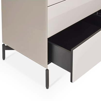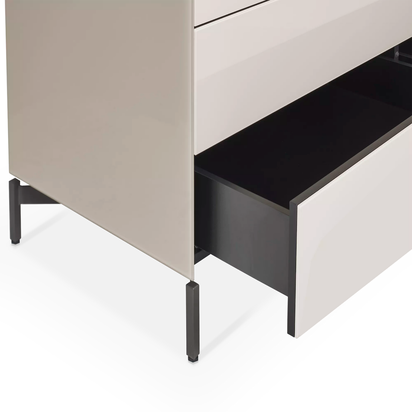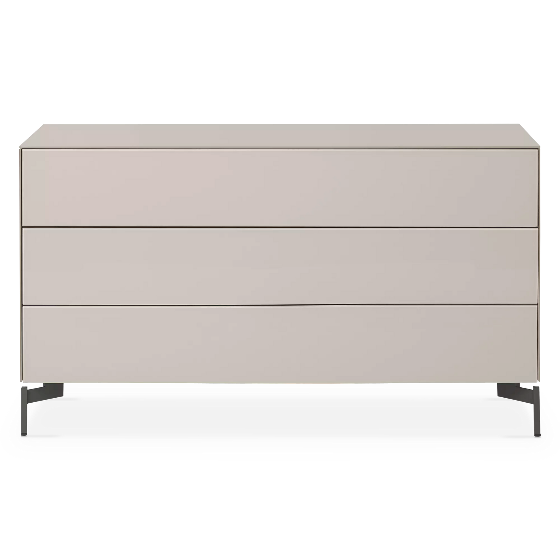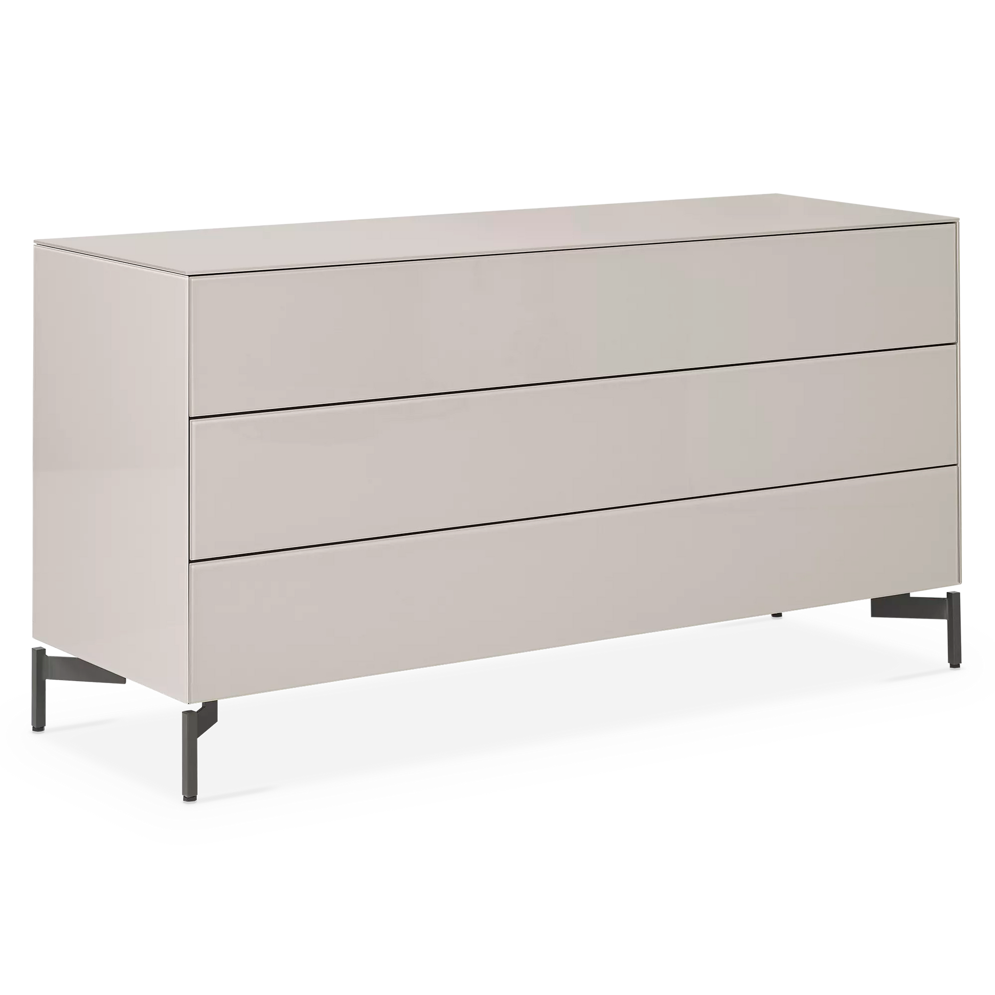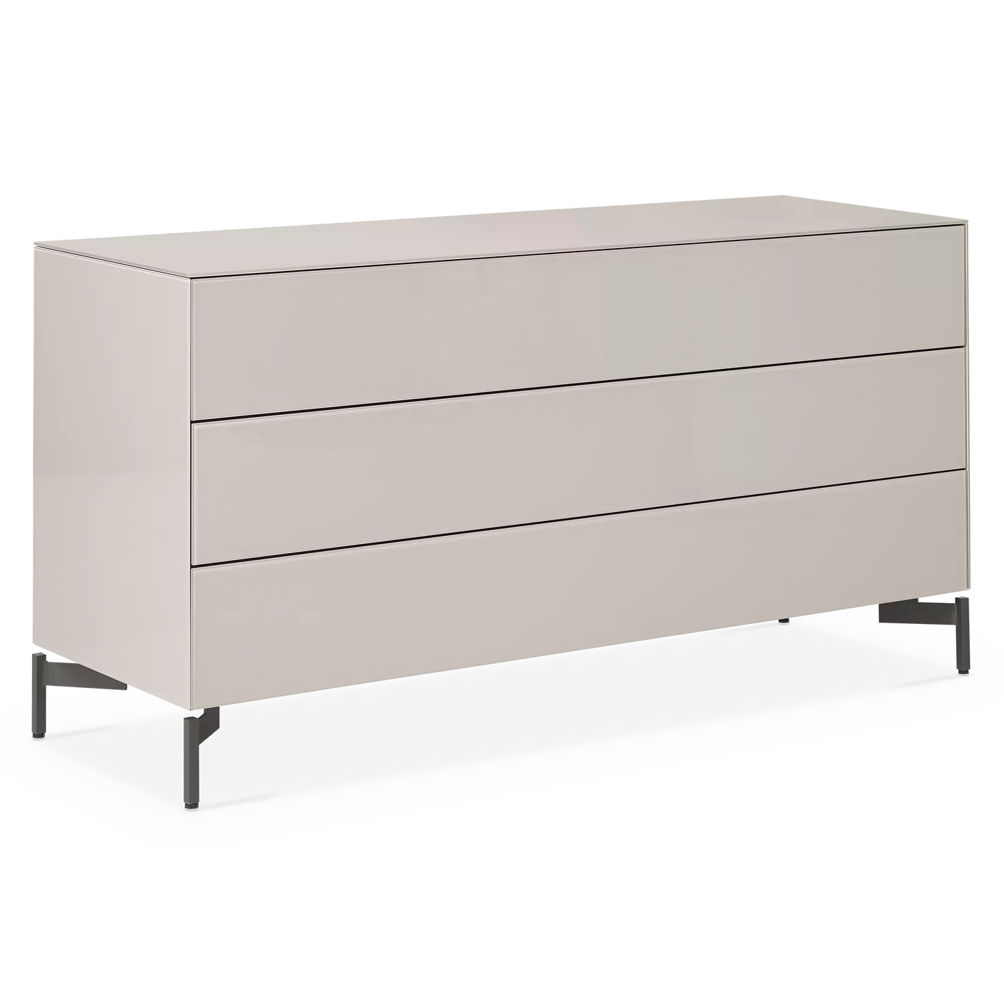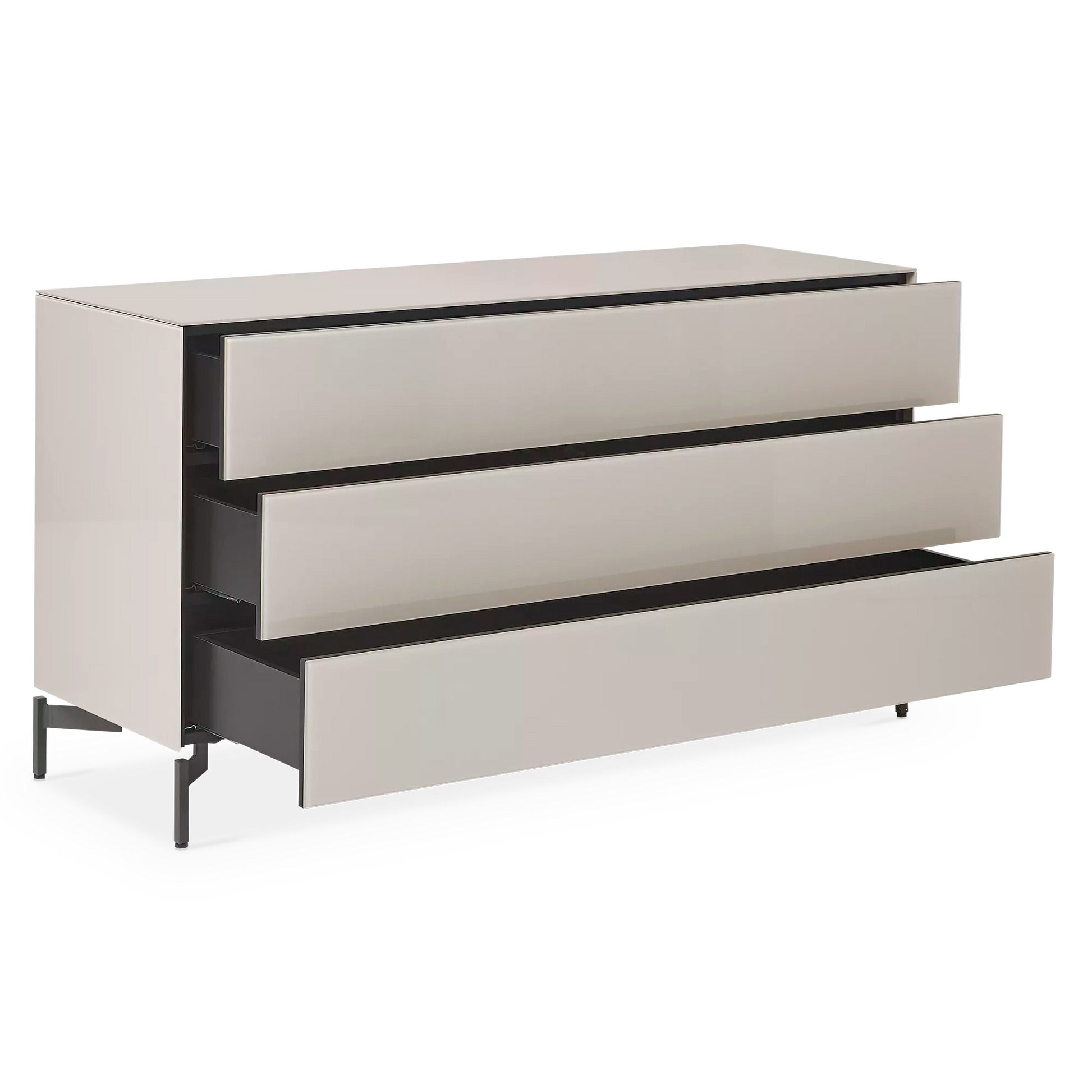 Munie d’un caisson en verre dépoli et d’un fin piètement noir, la commode Laura offre un vaste espace de rangement grâce à ses trois tiroirs. Ses lignes franches et son design épuré révèlent une allure contemporaine.