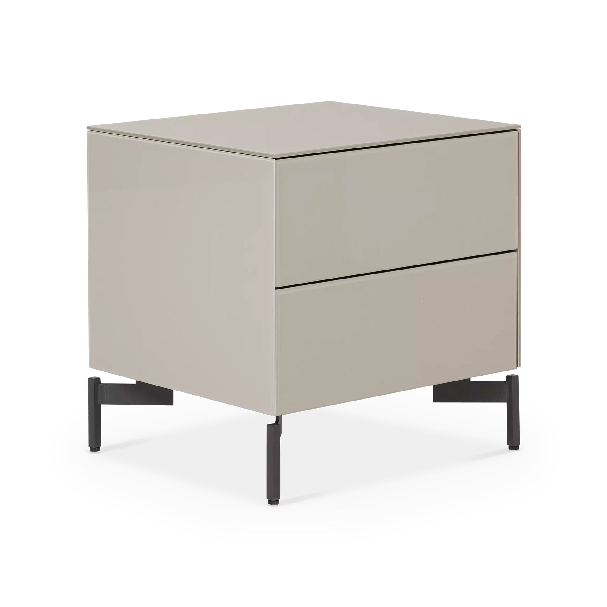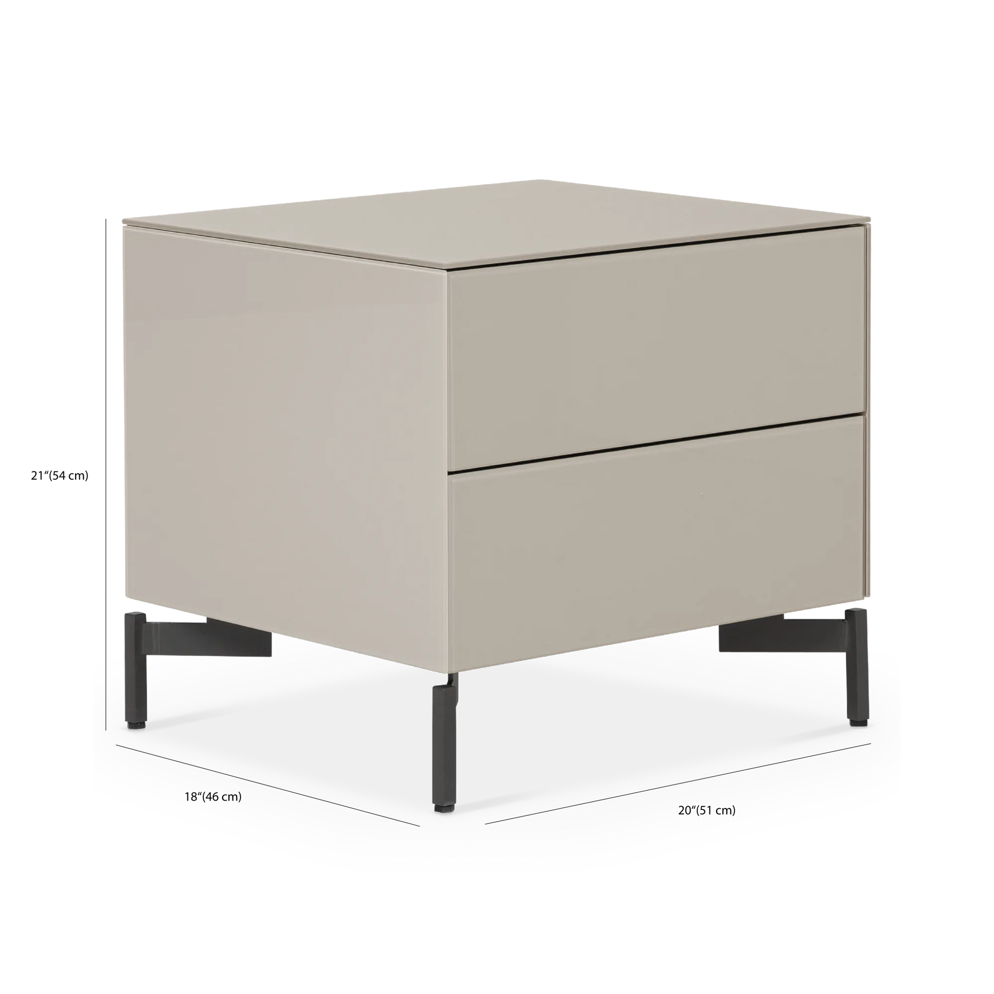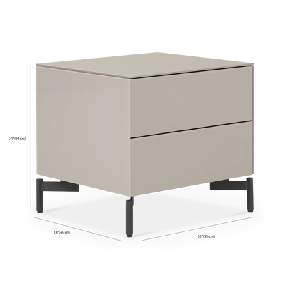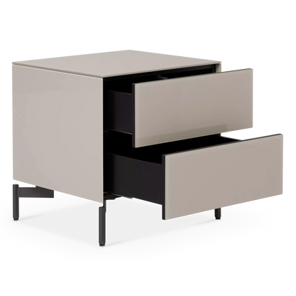 Munie d’un caisson en verre dépoli et d’un fin piètement noir, la table de chevet Laura offre un espace de rangement pratique grâce à ses deux tiroirs. Ses lignes franches et son design épuré révèlent une allure contemporaine.