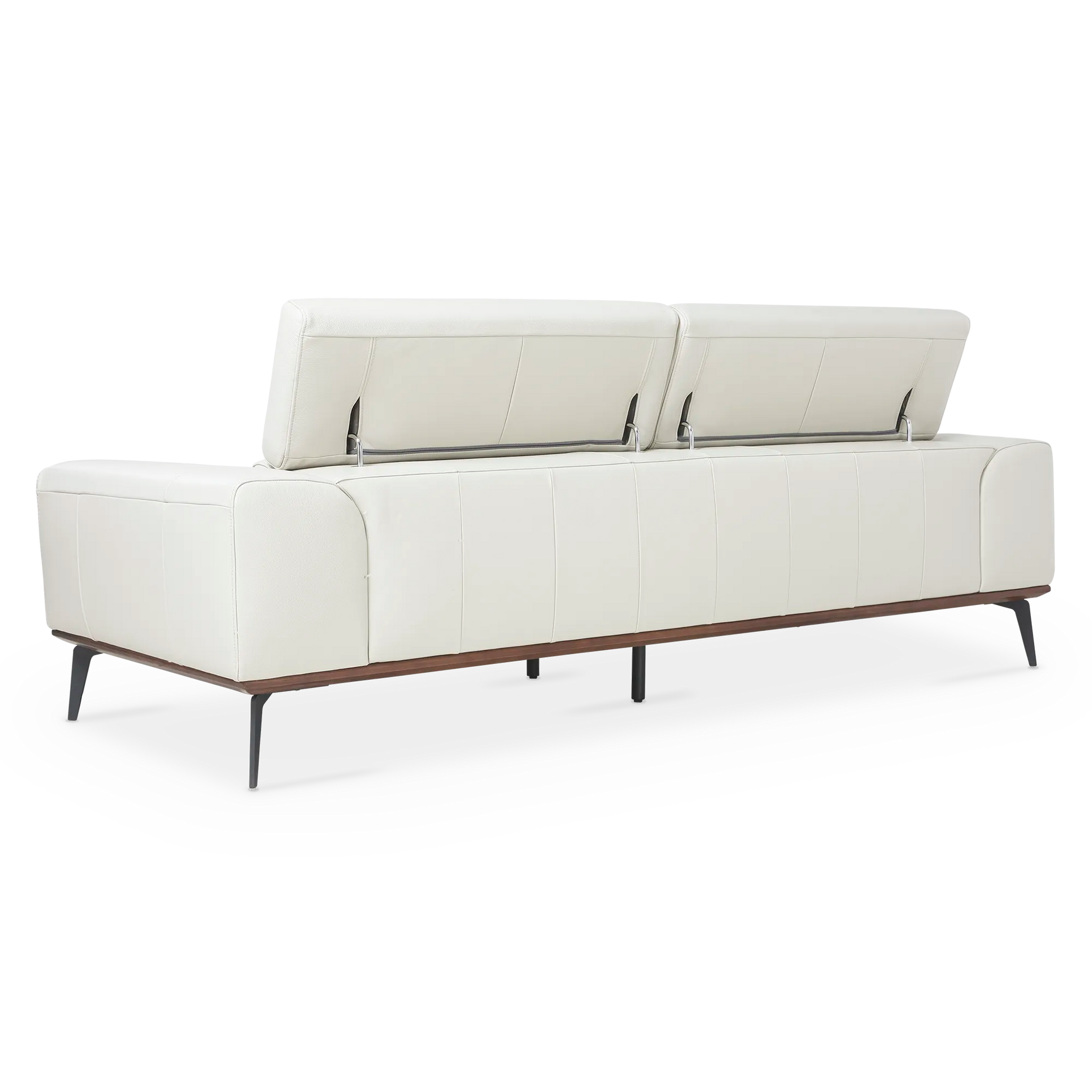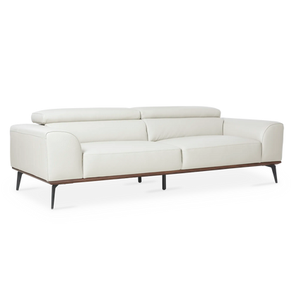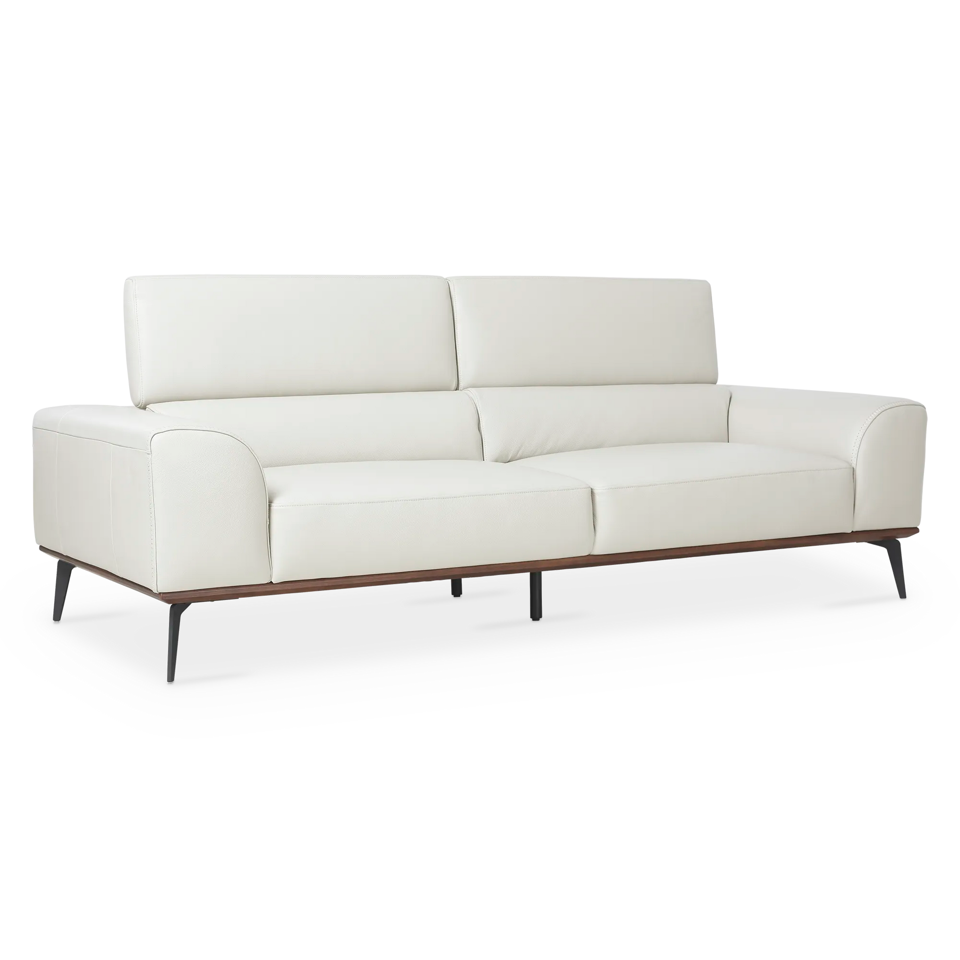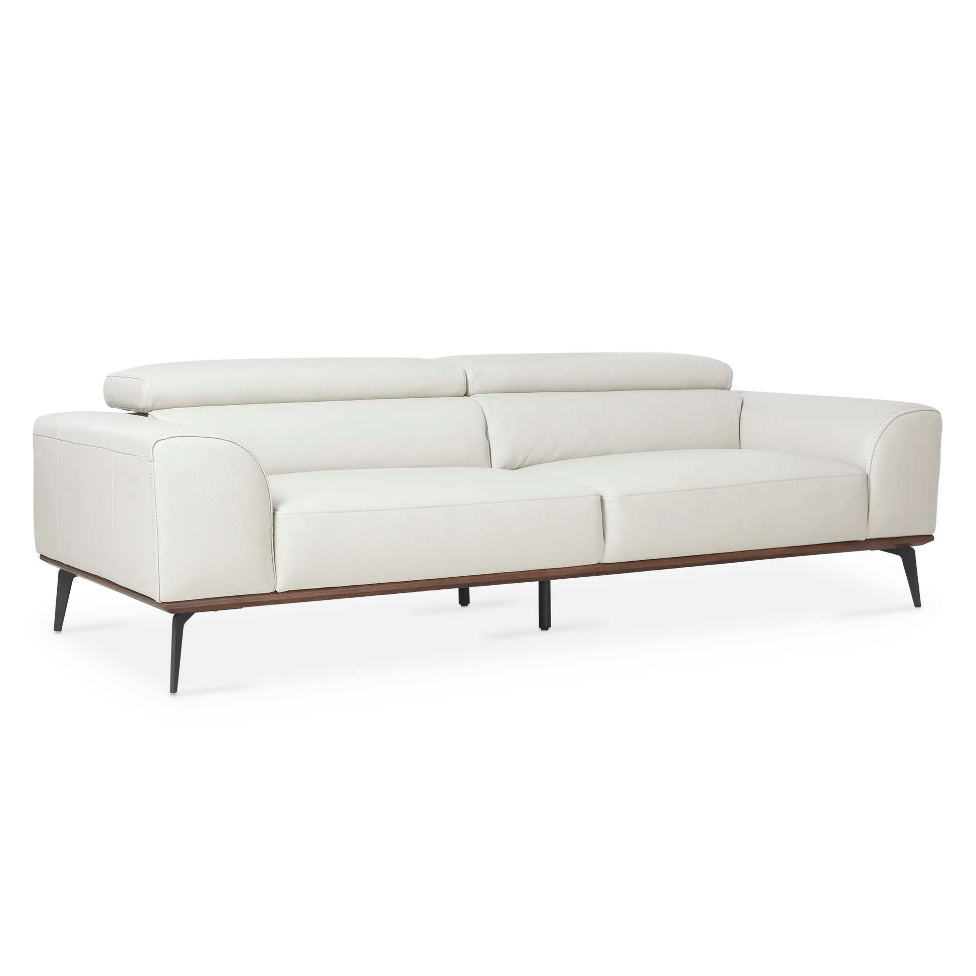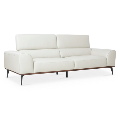 Piètement incliné en métal, bordure en bois marron et revêtement de cuir luxueux – le canapé Lublin s’affiche sous une allure irrévocablement moderne. Son confort est rehaussé par des accoudoirs amples et des appuis-tête ajustables.