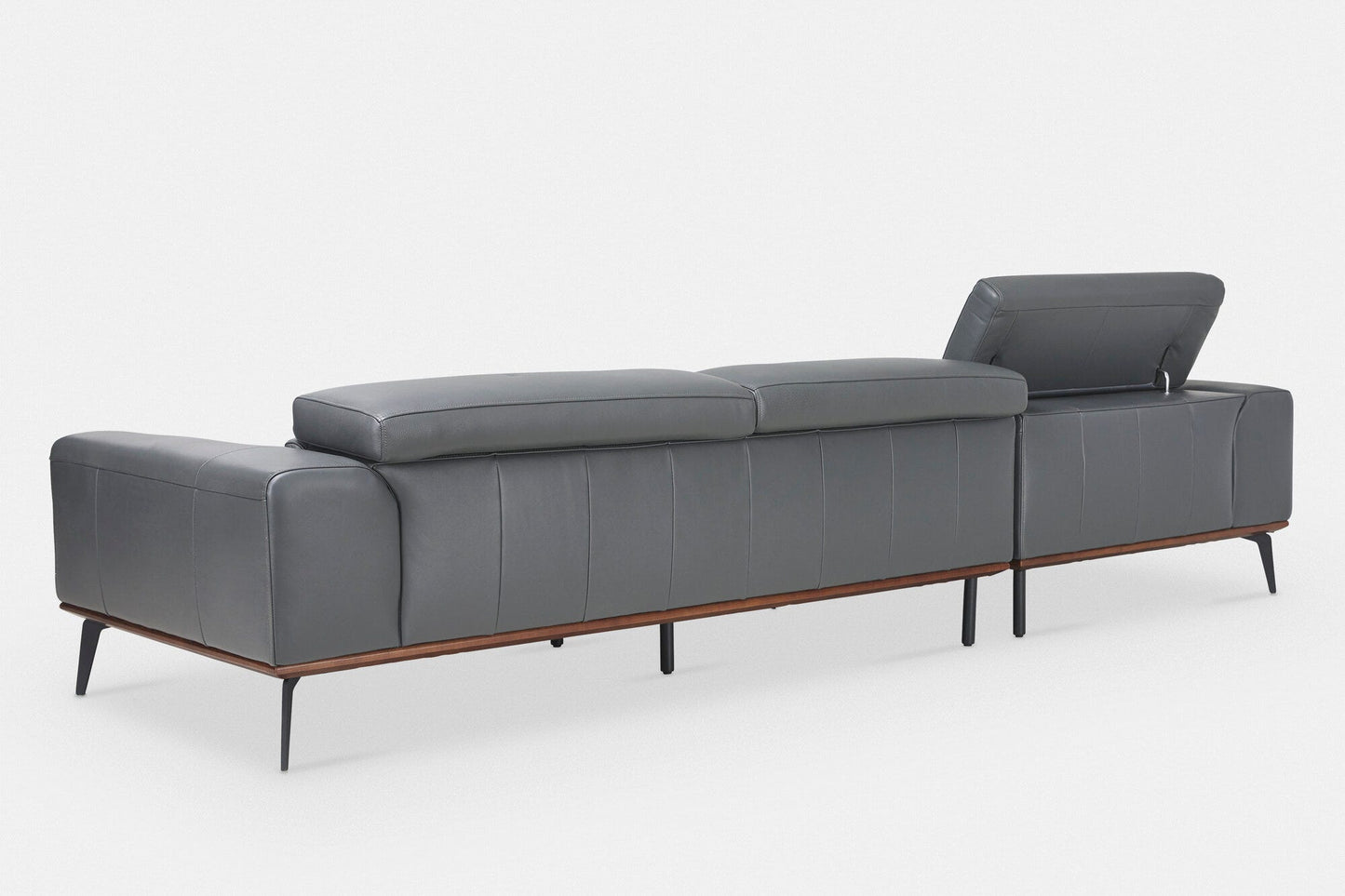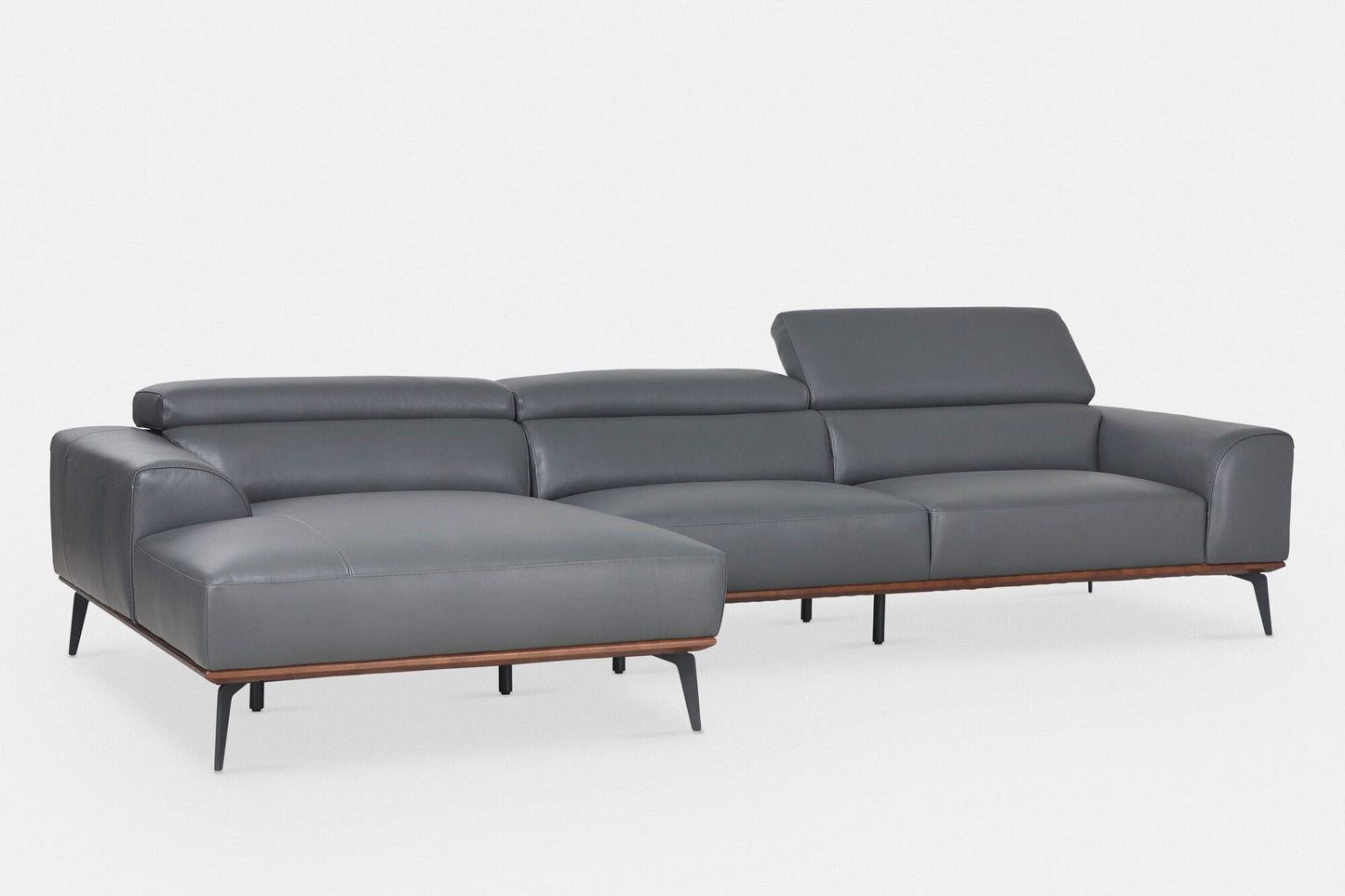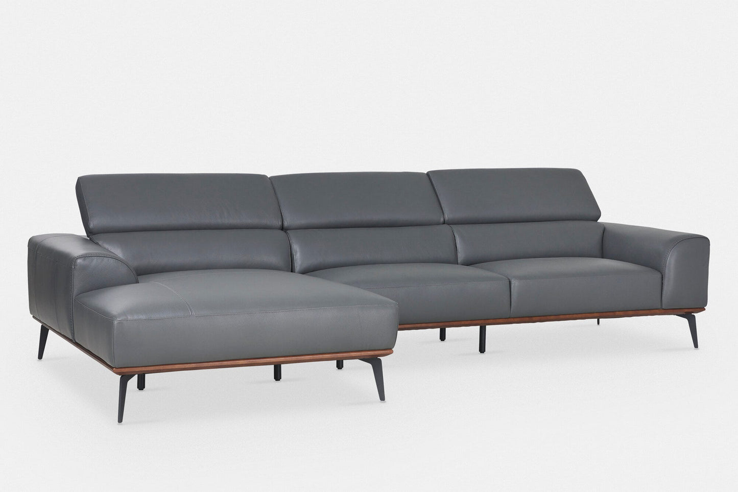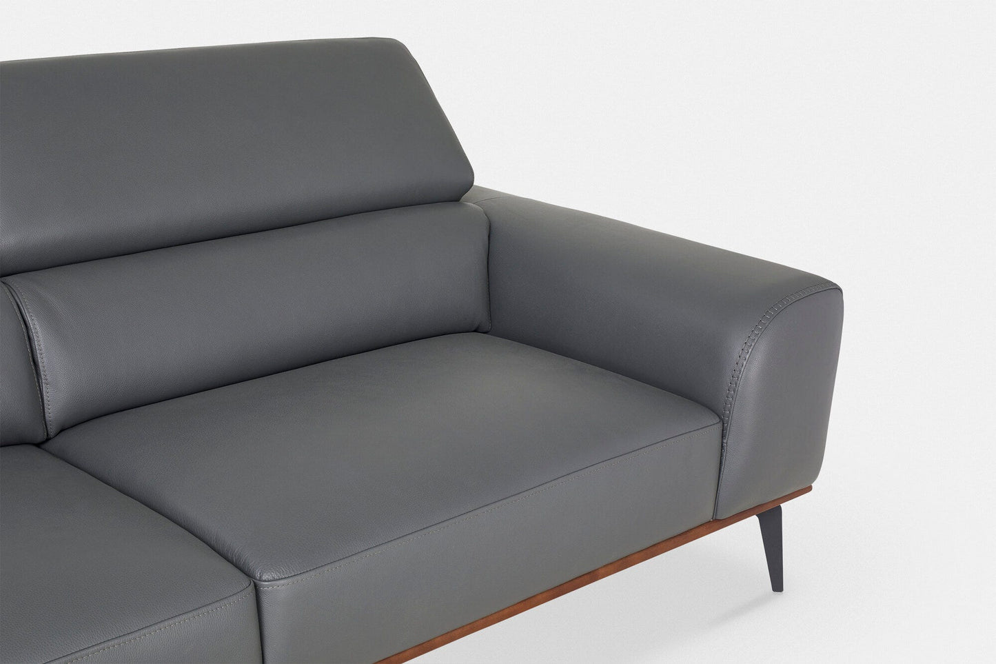 Piètement incliné en métal, bordure en bois marron et revêtement de cuir luxueux – le canapé Lublin s’affiche sous une allure irrévocablement moderne. Son confort est rehaussé par des accoudoirs amples et des appuis-tête ajustables.