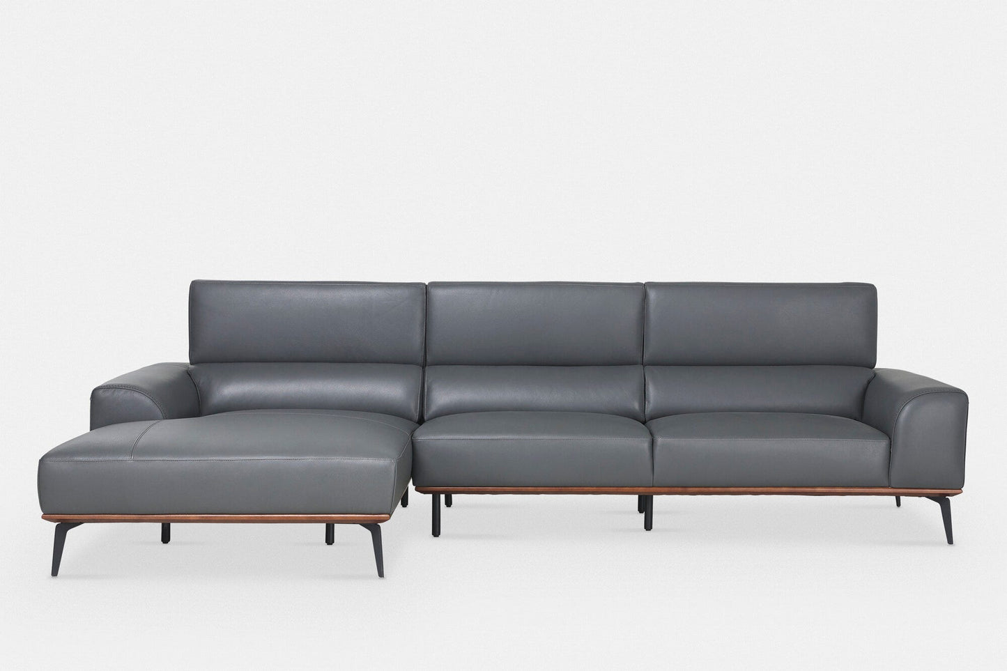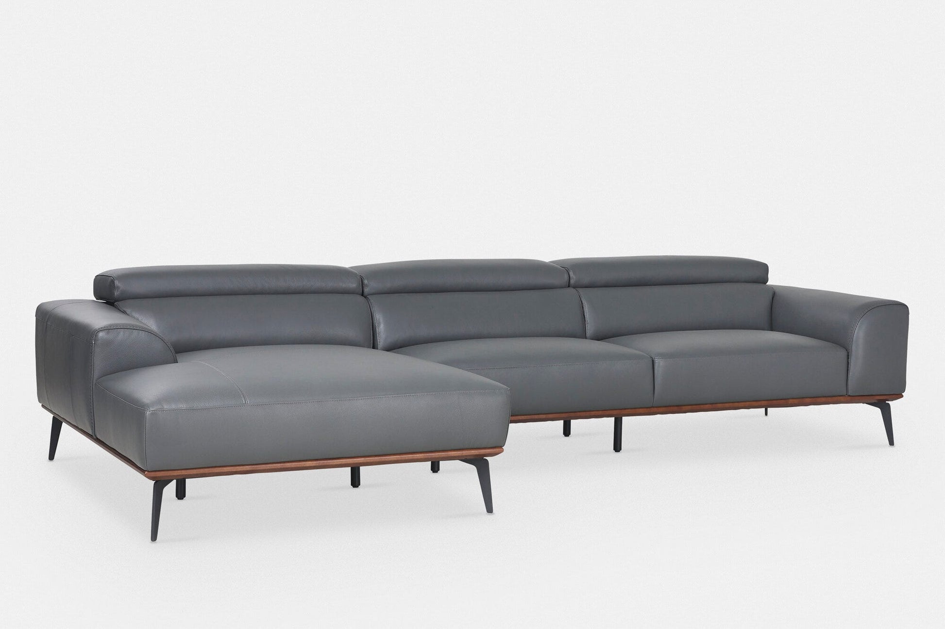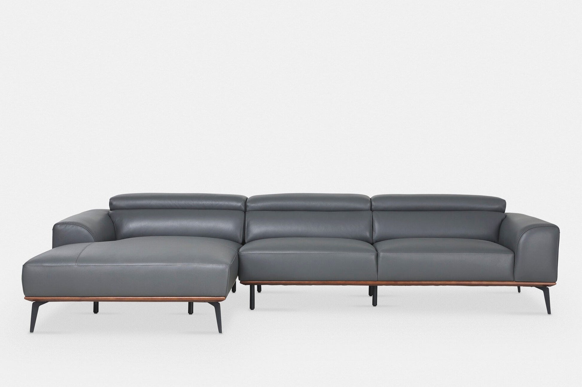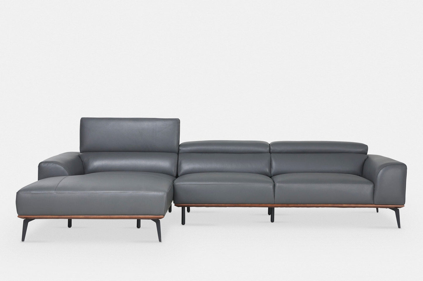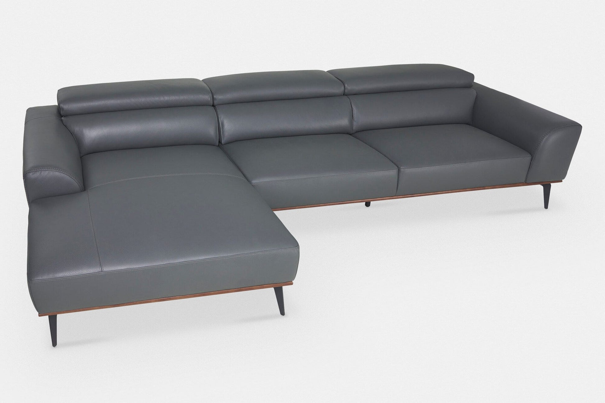 Piètement incliné en métal, bordure en bois marron et revêtement de cuir luxueux – le canapé Lublin s’affiche sous une allure irrévocablement moderne. Son confort est rehaussé par des accoudoirs amples et des appuis-tête ajustables.