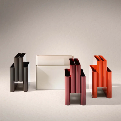 Le porte-revues signé Kartell conjugue fonctionnalité intemporelle et esthétique moderne. Doté de quatre compartiments spacieux et d’une poignée centrale pour un transport facile, il séduit par ses lignes nettes et sa finition bordeaux brillante. Un futur classique du design.