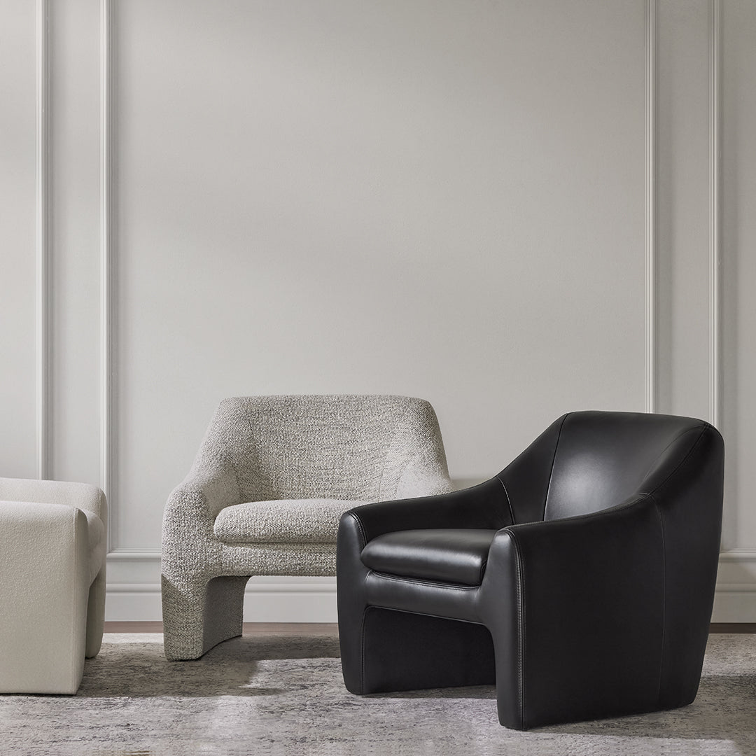 Avec sa silhouette arrondie sous tous ses angles, le fauteuil Marseille offre une expérience invitante. En cuir ou dans tissu à la légère texture bouclée, choisissez une couleur parmi nos classiques.