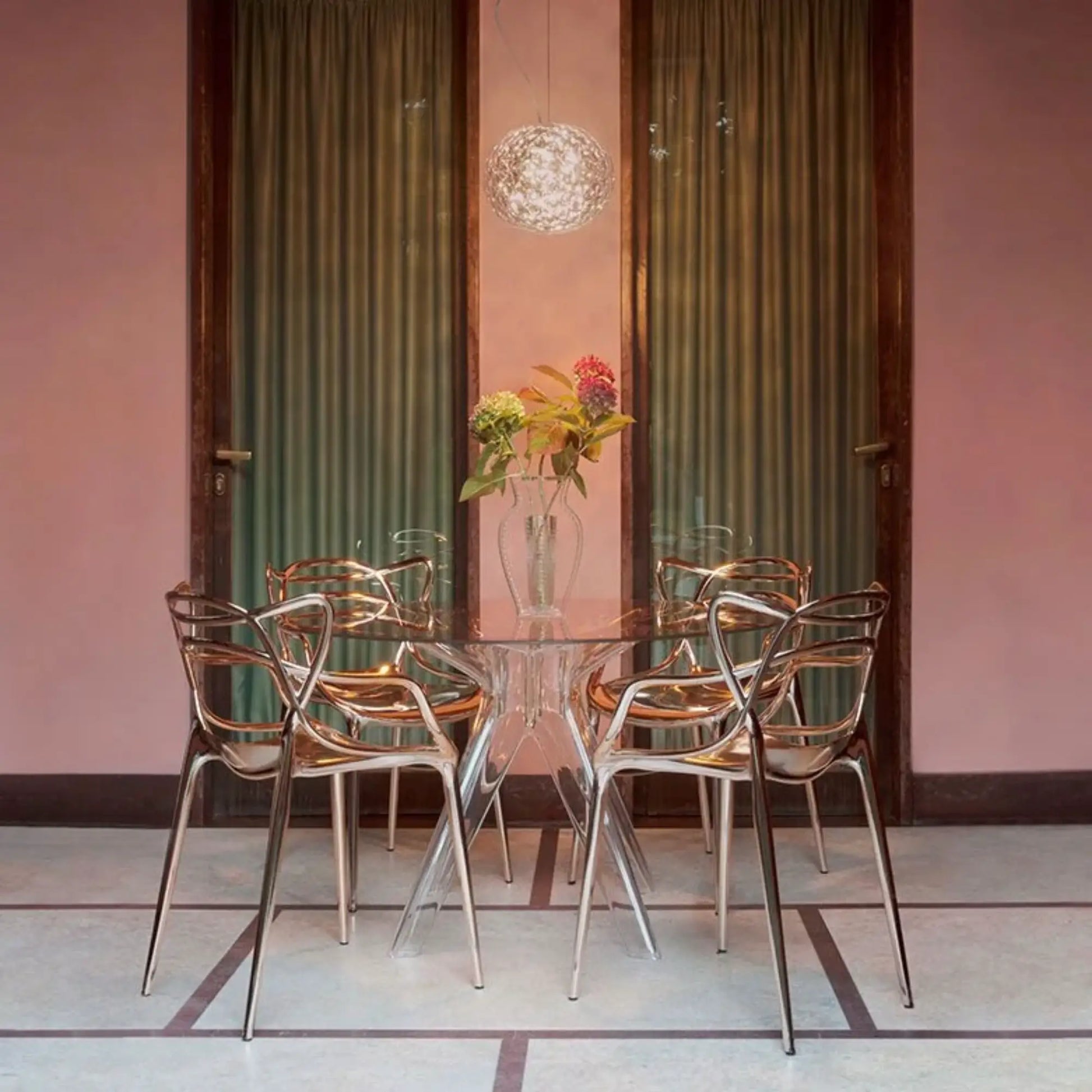 L’originalité réside sans l’ombre d’un doute dans la conception de la chaise Masters Metal aux courbes uniques de la marque italienne Kartell. Symbole d’une fusion de styles esthétiques, cette chaise faite de matériaux recyclés rehausse votre mobilier de salle à manger ou de terrasse extérieure.