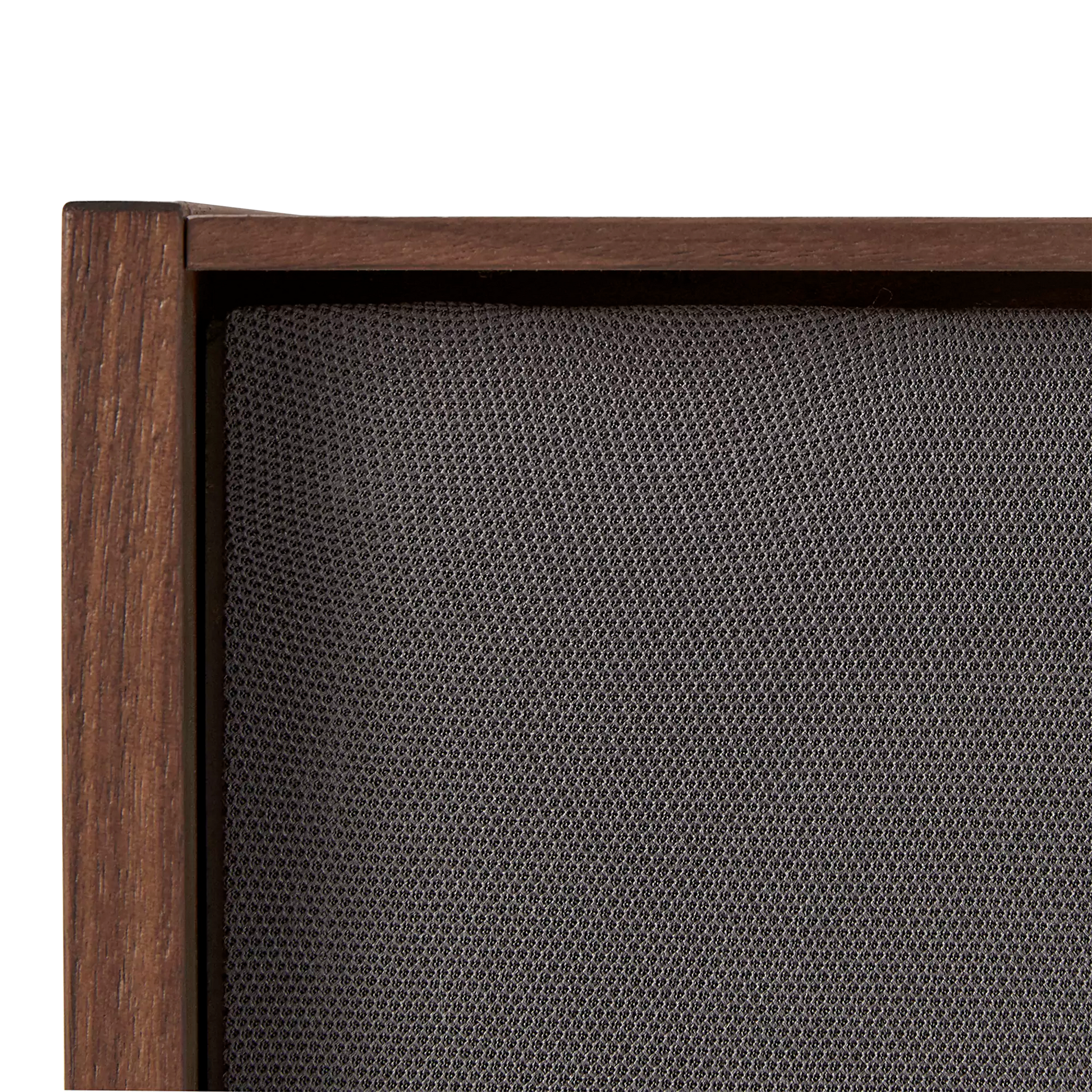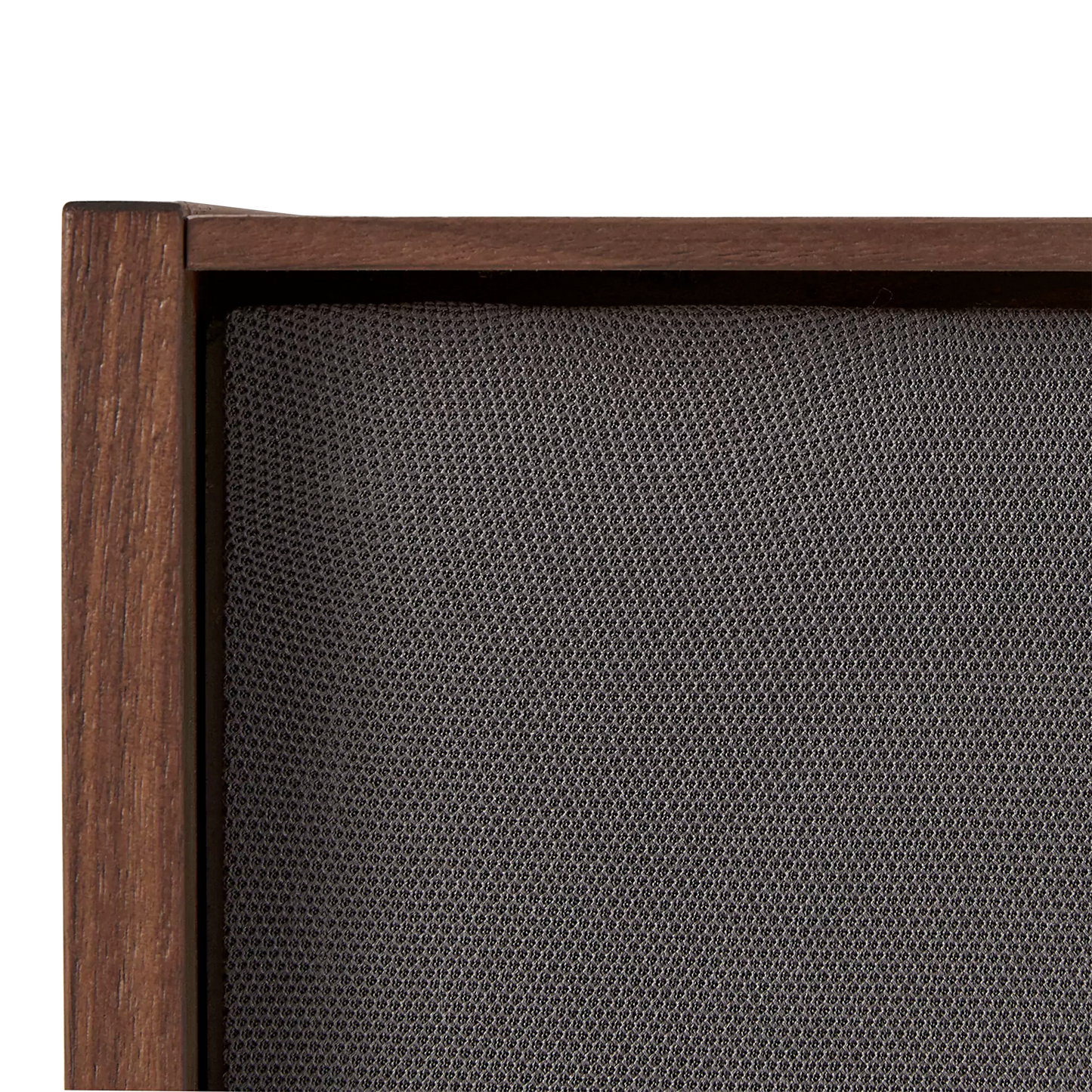 Camouflant une variété d’espaces de rangement utiles, le meuble TV Enzo s’ouvre sur trois sections, révélant une porte et deux tiroirs. On peut y dissimuler les systèmes audio et vidéo, mais aussi des films, des jeux et des livres. Sa section abattante est constituée de tissu acoustique et infrarouge, pour laisser passer le son et faciliter le pilotage des périphériques. Enfin, ce meuble se distingue par la commodité de ses systèmes d’ouverture à pression. En effet, la porte et les tiroirs s’ouvrent et se ferment d’une simple pression du doigt.