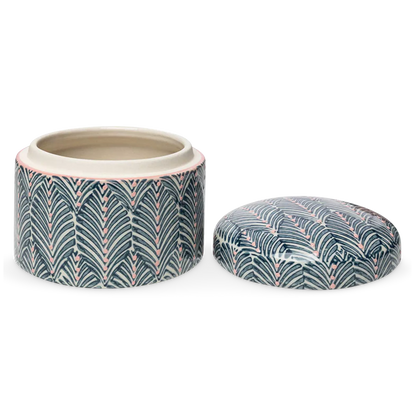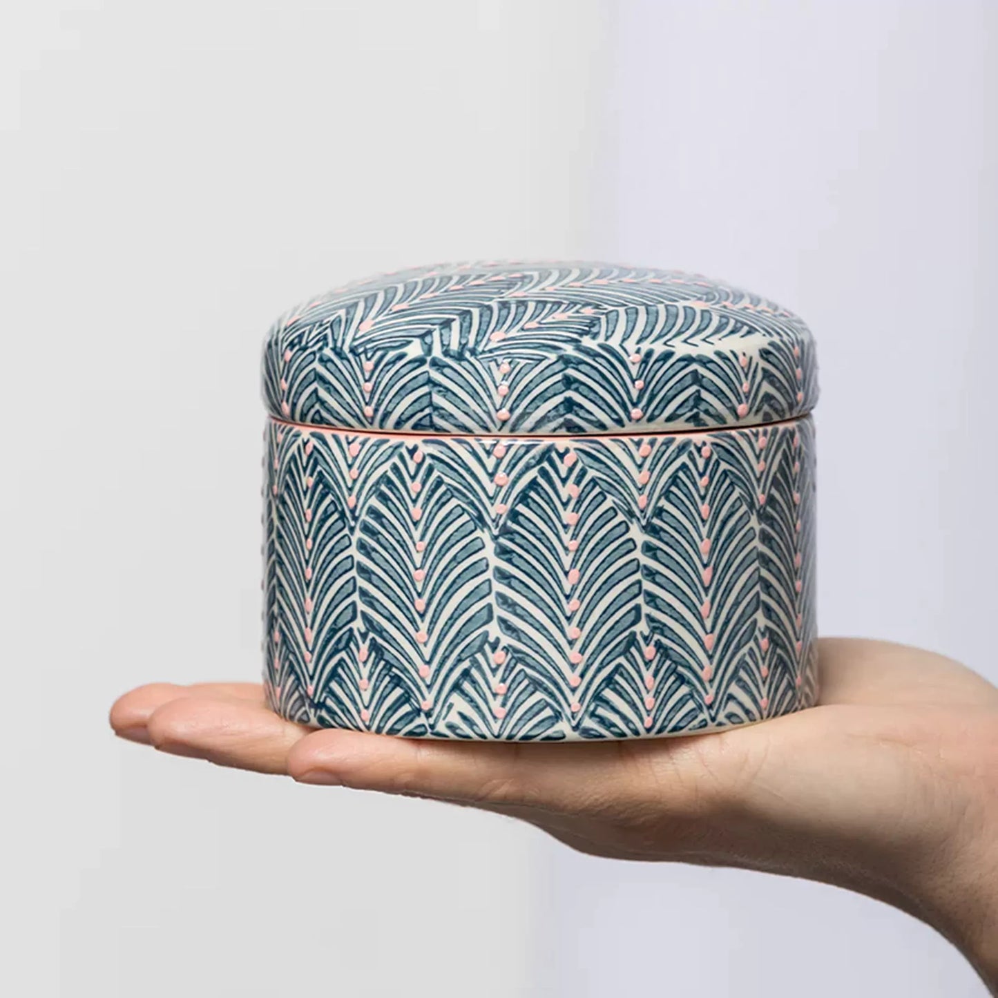 La boîte Mix séduit par son design raffiné et ses motifs appliqués à la main. Pratique et esthétique, elle protège vos objets de la poussière et trouve sa place aussi bien dans la cuisine, la salle de bain ou le salon. Disponible en plusieurs formats et motifs, elle allie style et utilité.