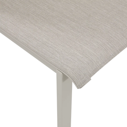 Prendre place dans la chaise New Waves, c’est profiter d’une assise plus que confortable grâce à son dossier et ses accoudoirs offrant beaucoup de support. Simple, élégante et empilable, elle associe une structure en aluminium à un siège en textilène souple, laissant l’eau s’écouler afin de sécher rapidement. Sa conception robuste et son poids lourd de 10 kg en font un choix idéal pour les endroits venteux.