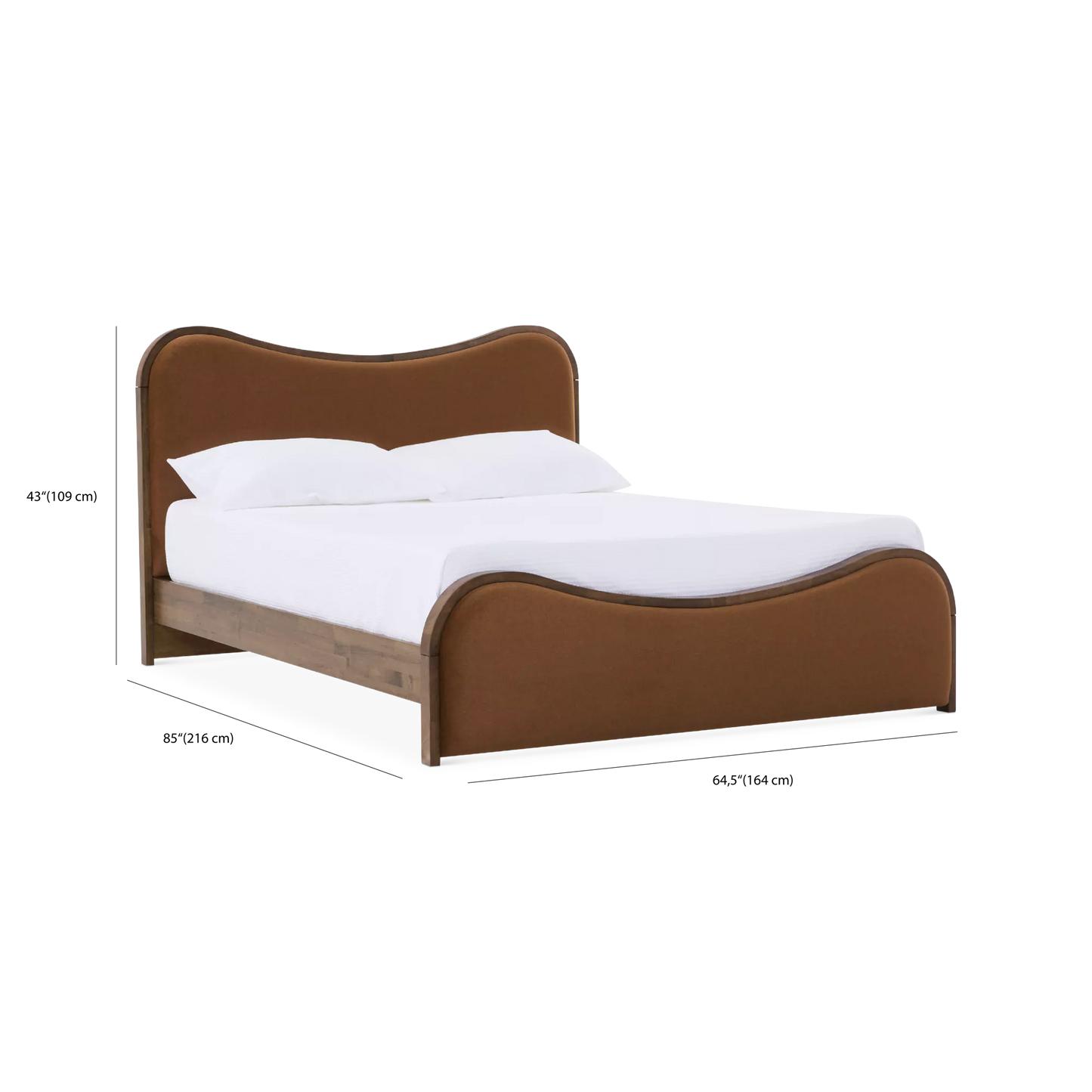 Avec sa silhouette courbée qui lui confère un charme original, légèrement rétro, le lit Oda transforme instantanément la chambre en y apportant confort et caractère. Son design distinctif réunit un cadre en bois chaleureux et une tête rembourrée offerte en tissu ivoire ou brun caramel