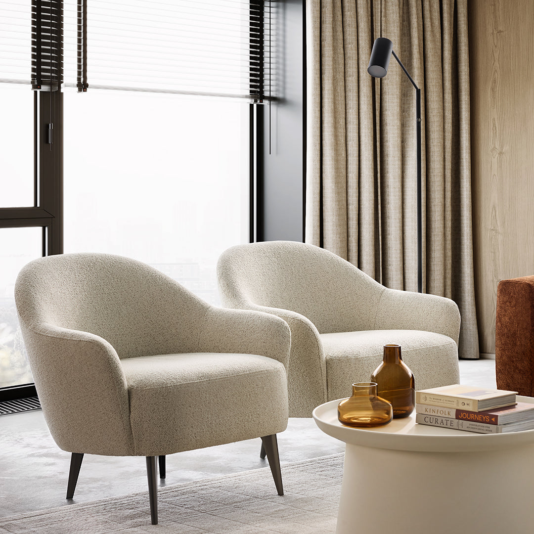 Fabriqué en Europe, le fauteuil Paloma est gage de durabilité. Monté sur un piètement incliné en métal, il affiche des lignes arrondies à l'inspiration légèrement rétro. Son siège, entièrement rembourré de mousse froide, offre un confort ferme et soutenu. Il s'intègrera aussi bien dans un salon contemporain que dans une chambre raffinée.