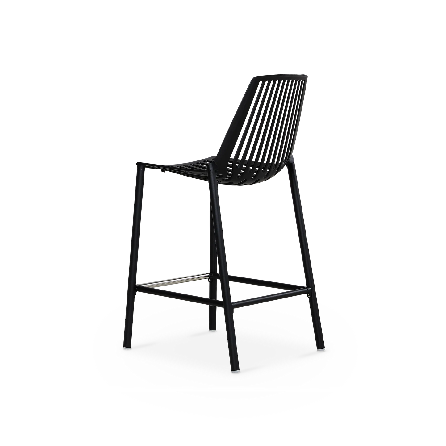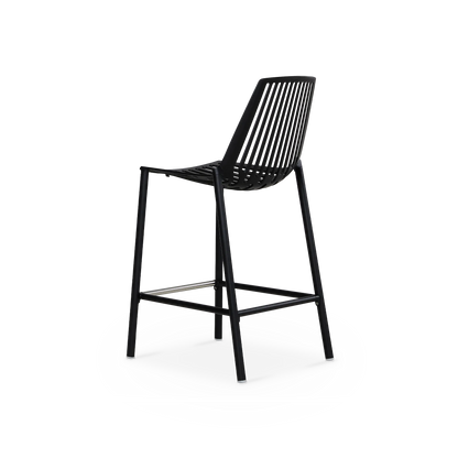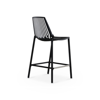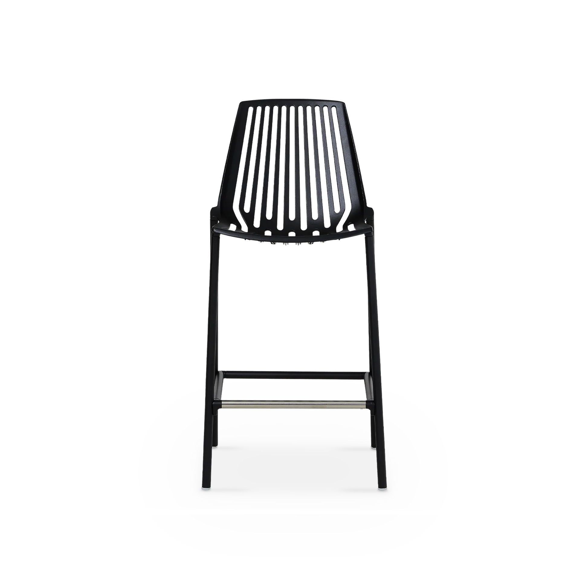 Comptez sur ce tabouret à la silhouette graphique, imaginé par les designers italiens Andrea Radice et Folco Orlandini. Sa coque en aluminium moulé est confortable sans coussin — ce serait dommage de cacher les lignes ajourées qui créeront de beaux jeux d’ombre sur la terrasse — et son piètement évasé, agrémenté d’un repose-pieds, garantit sa stabilité.