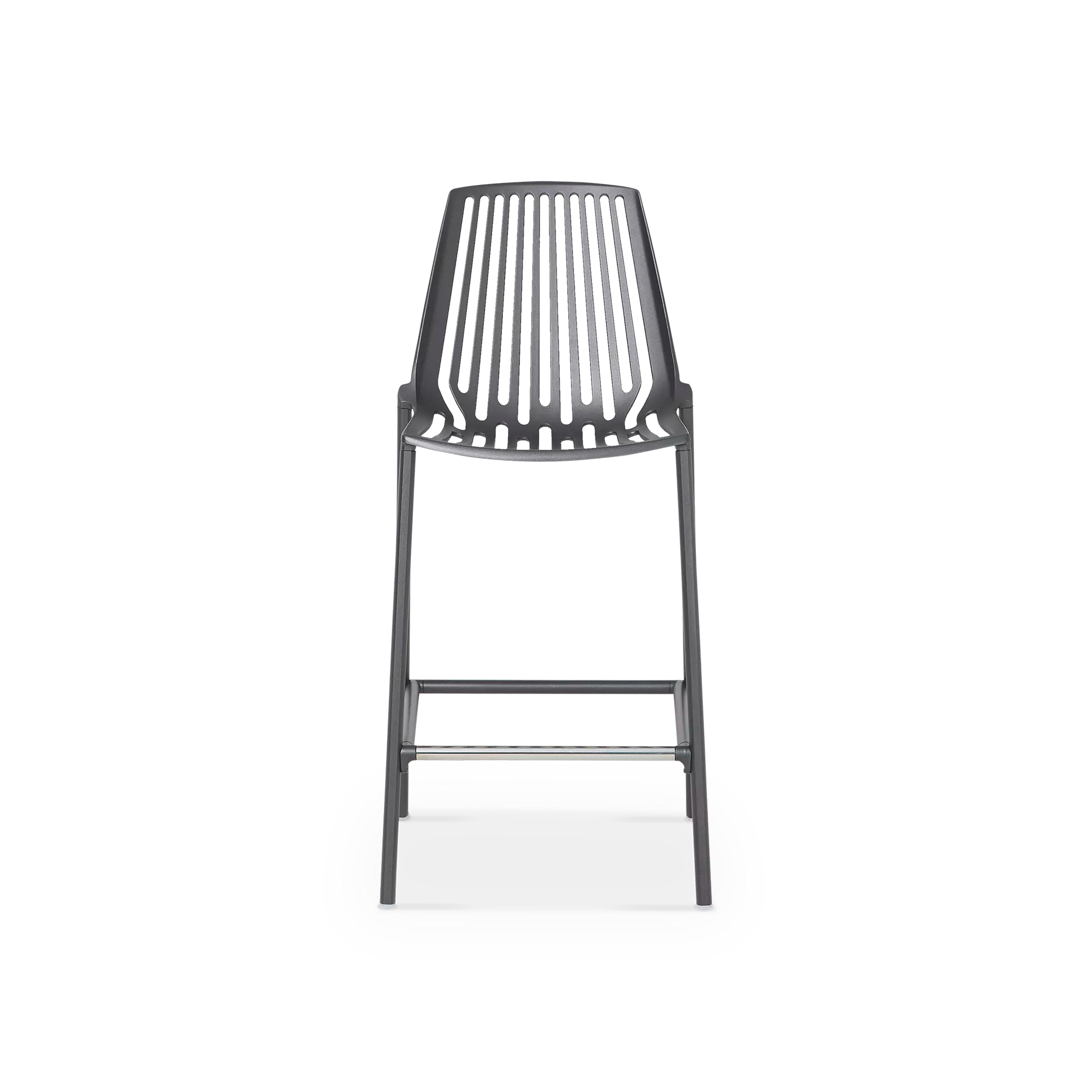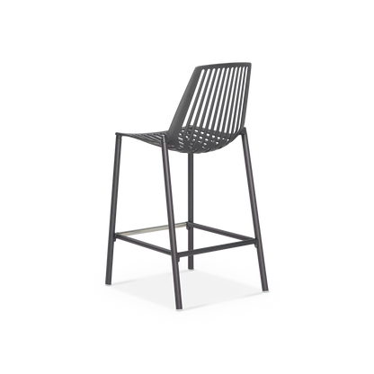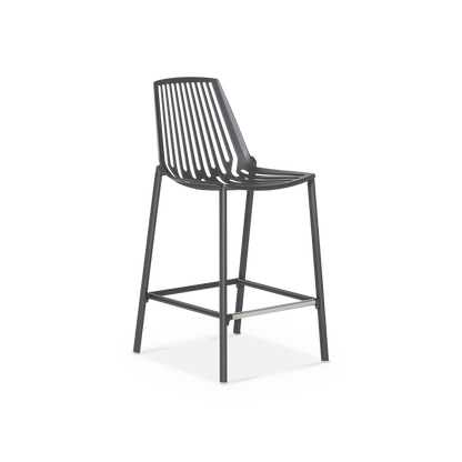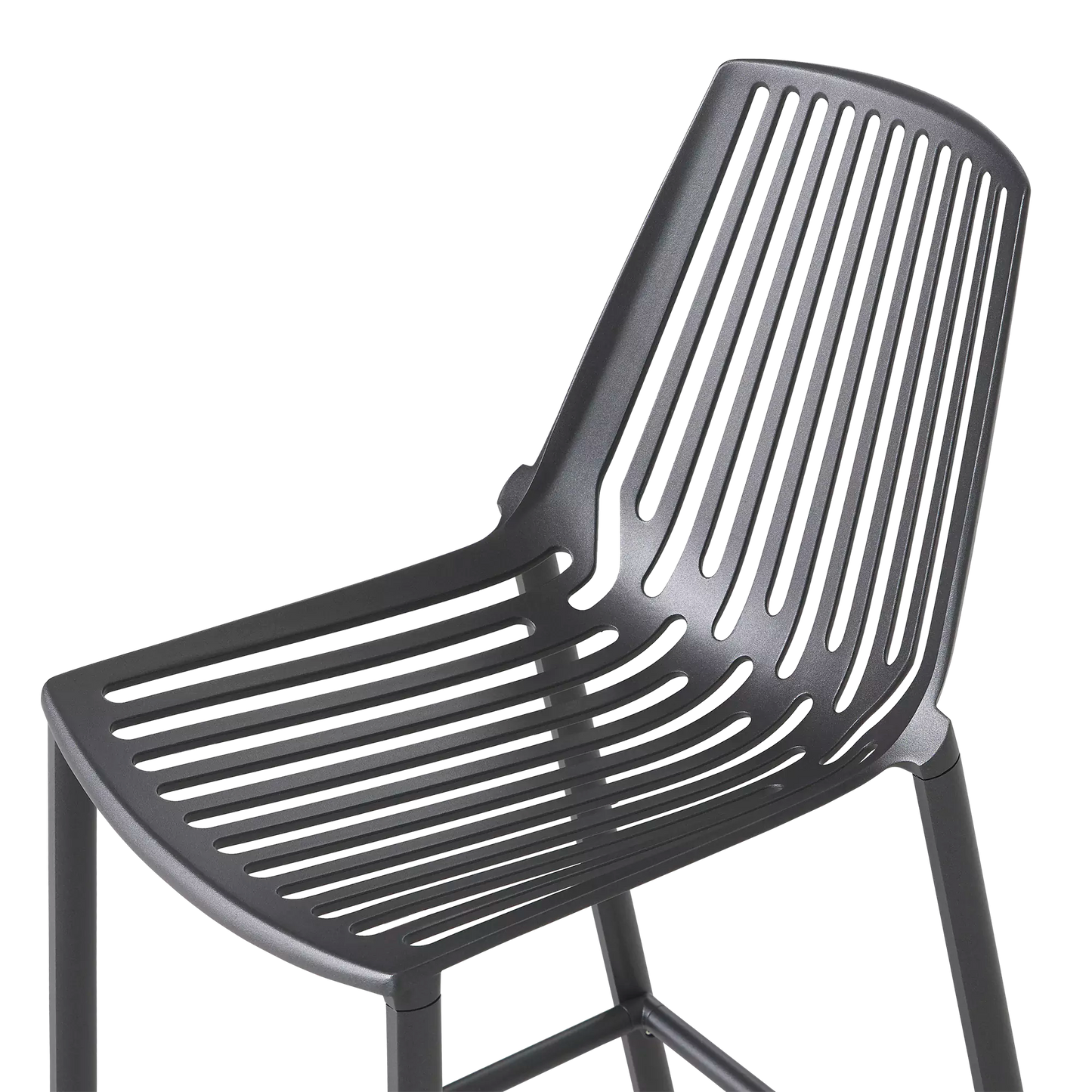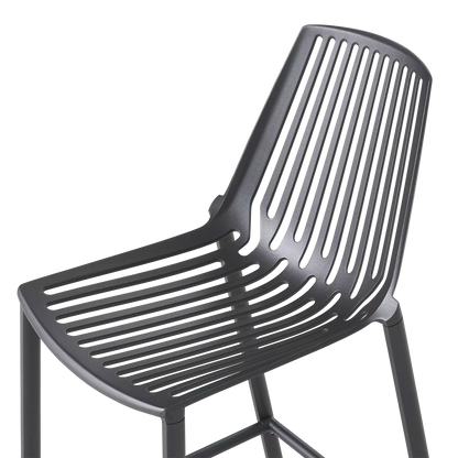Comptez sur ce tabouret à la silhouette graphique, imaginé par les designers italiens Andrea Radice et Folco Orlandini. Sa coque en aluminium moulé est confortable sans coussin — ce serait dommage de cacher les lignes ajourées qui créeront de beaux jeux d’ombre sur la terrasse — et son piètement évasé, agrémenté d’un repose-pieds, garantit sa stabilité.