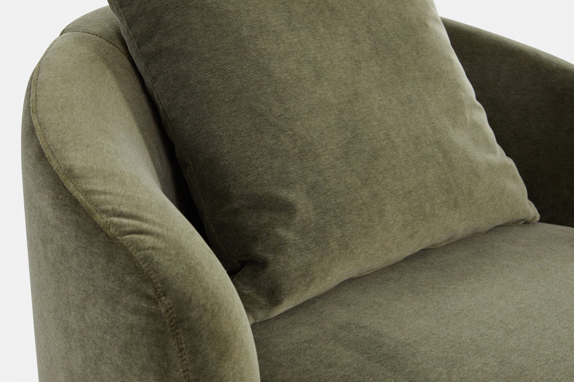 assise en mousse froide recouverte de plumes, dossier rempli d'un mélange de plumes et de fibres.
